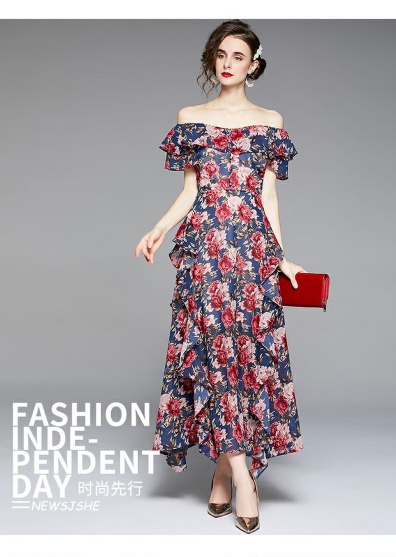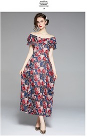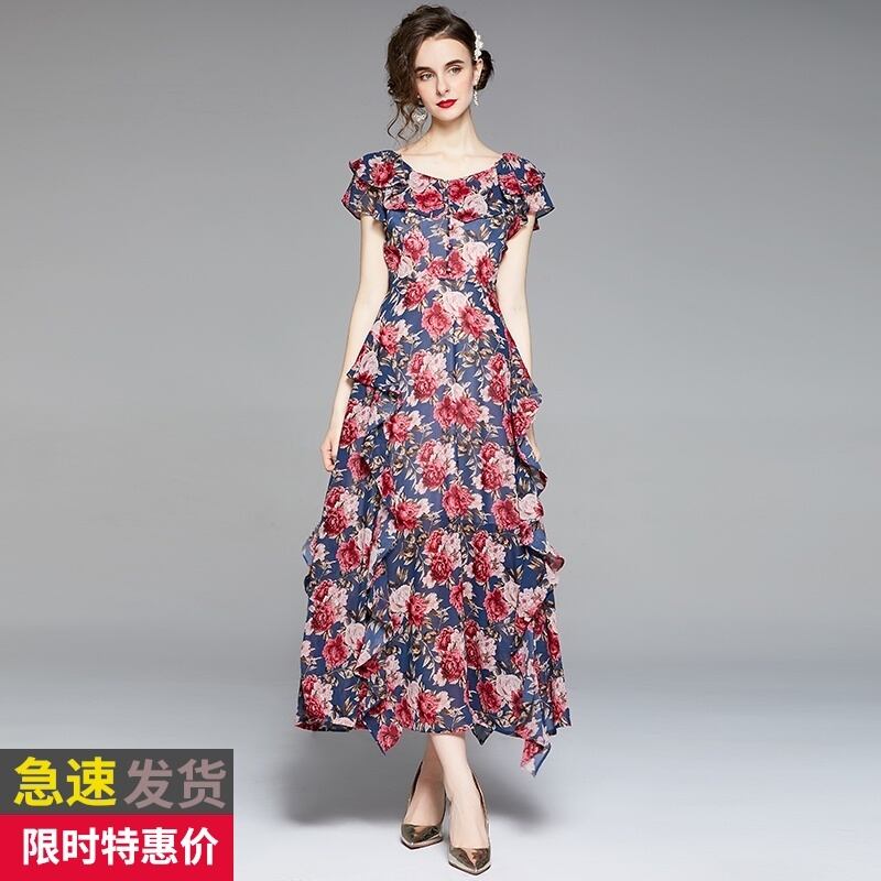 ディスカウントストアモールカウンター引き出しカウンターレディーステールストッククリアランス、ウエスト、エレガントなビッグスイングプリントロングドレスドレス missry90089656546 | guttiy