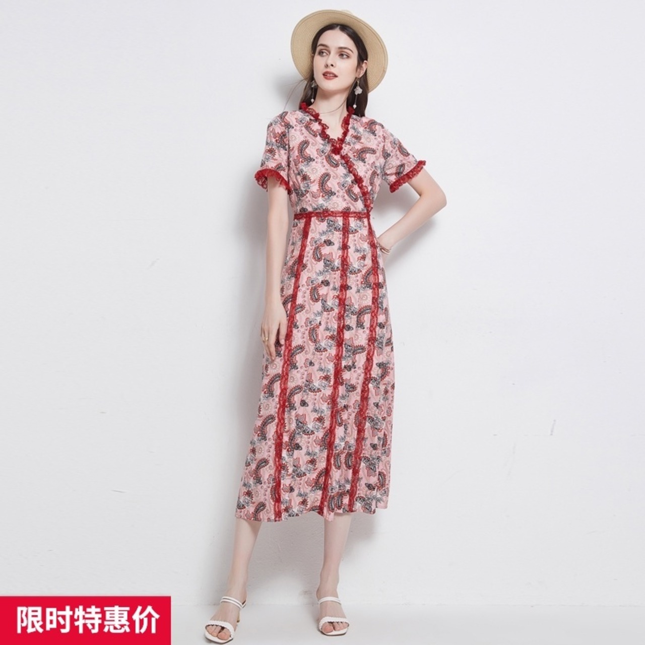 ディスカウントストアモールカウンター引き出しカウンターレディーステールストッククリアランスレースサイドファイトレシーブウエストビッグヘムプリントワンピース missry23809730786 | guttiy