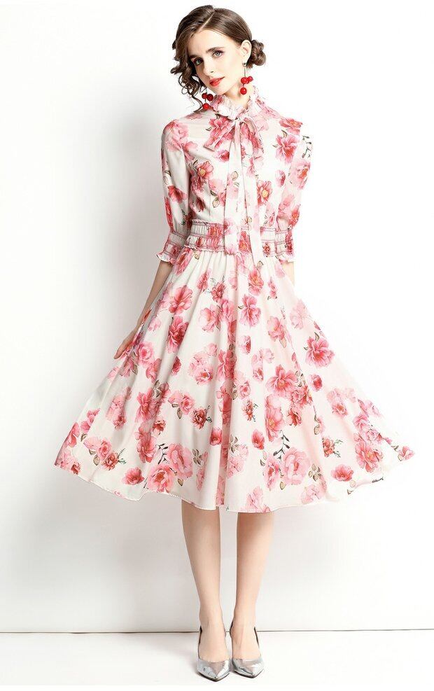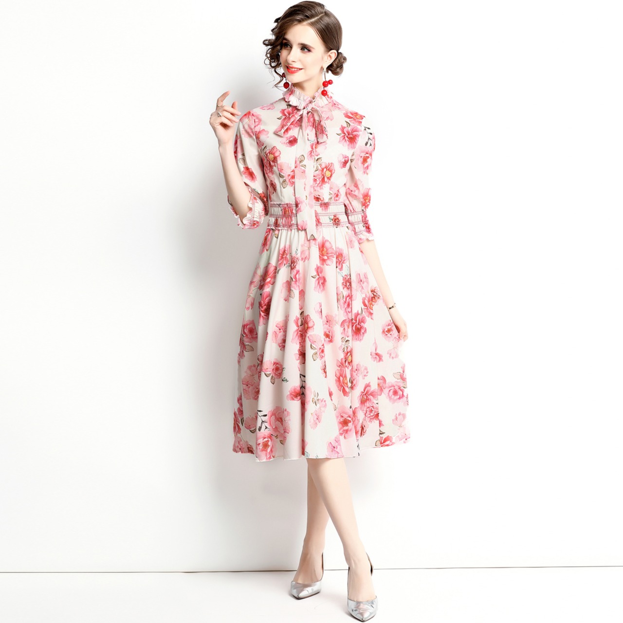 ディスカウントストアモールカウンター撤退レディーステールグッズクリアランスレディースフィットミドル丈プリントドレス missry9801509106