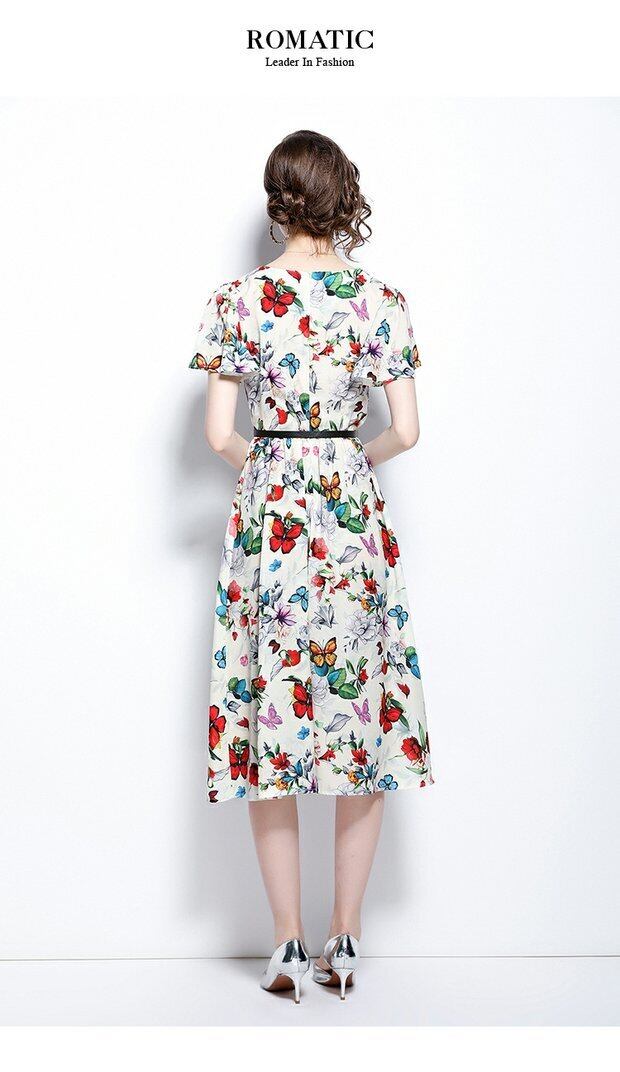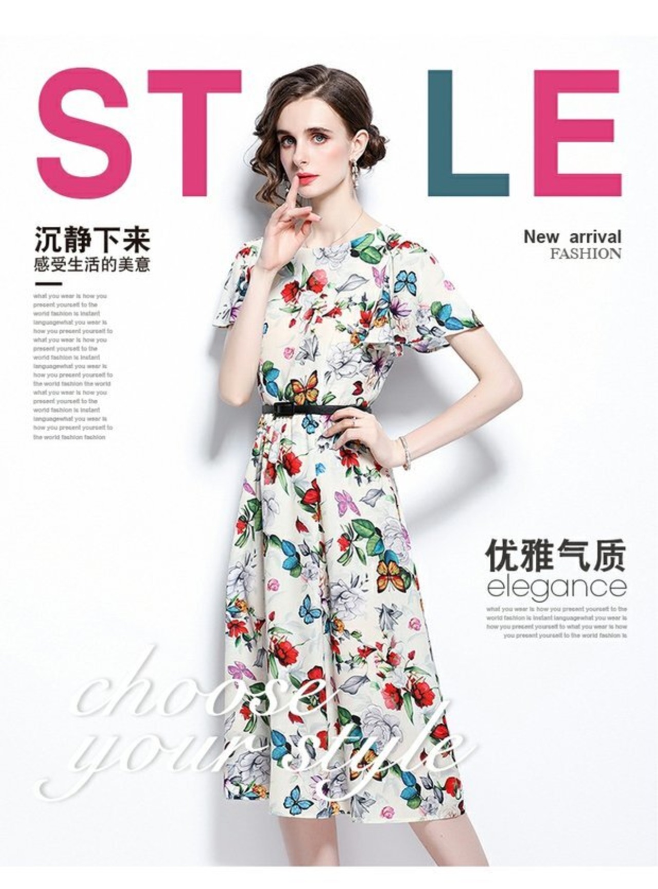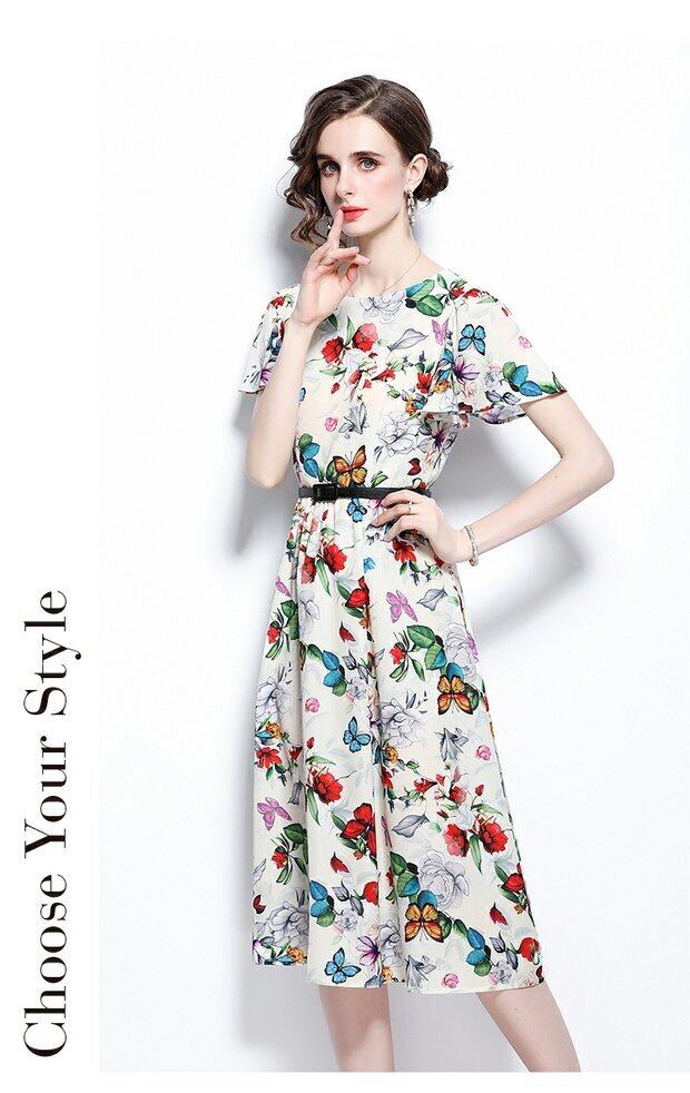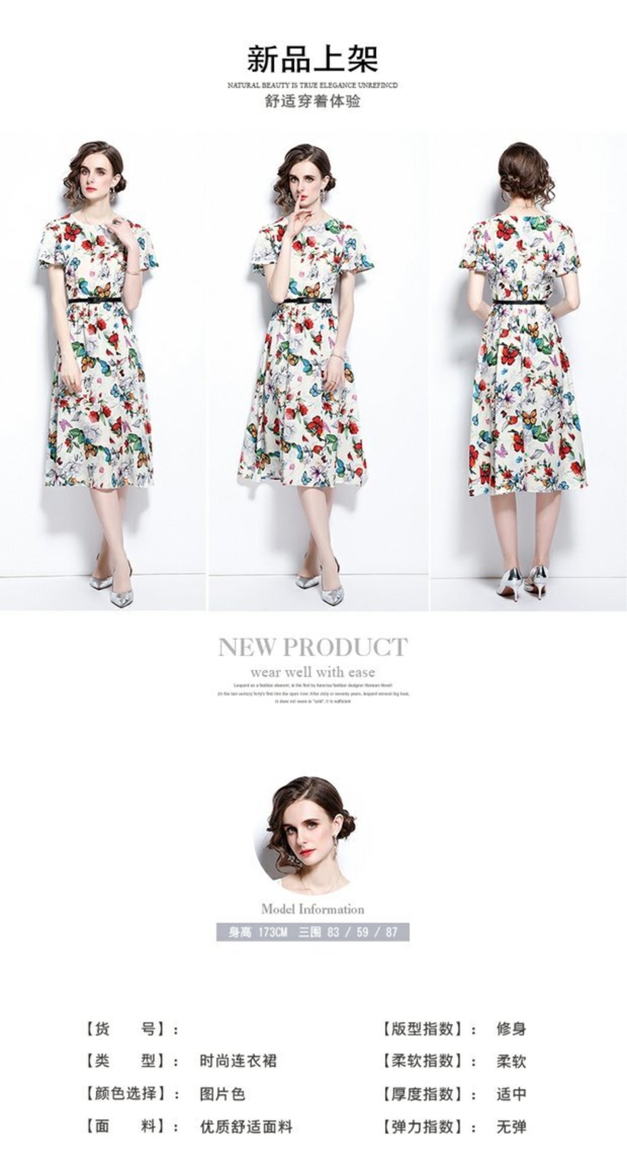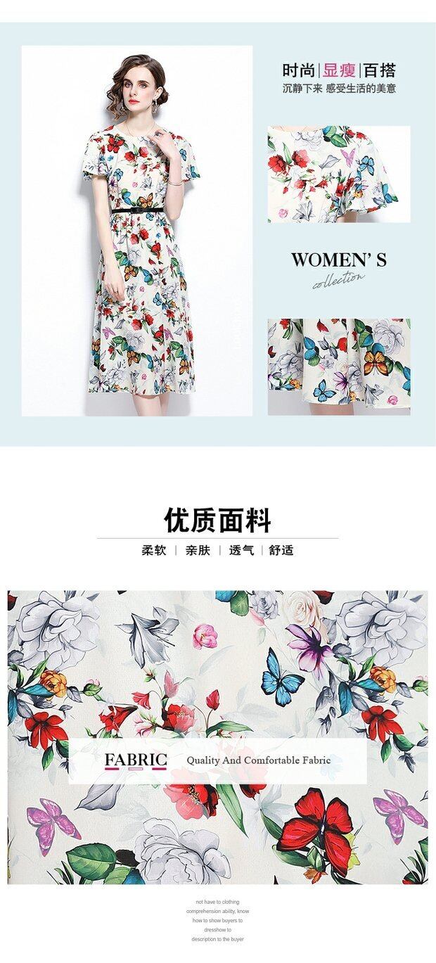 ディスカウントストアモールカウンター引き出しカウンターレディーステールストッククリアランスプリントラウンドネックスリムスリミングウエスト気質ドレス missry55463747456 | guttiy
