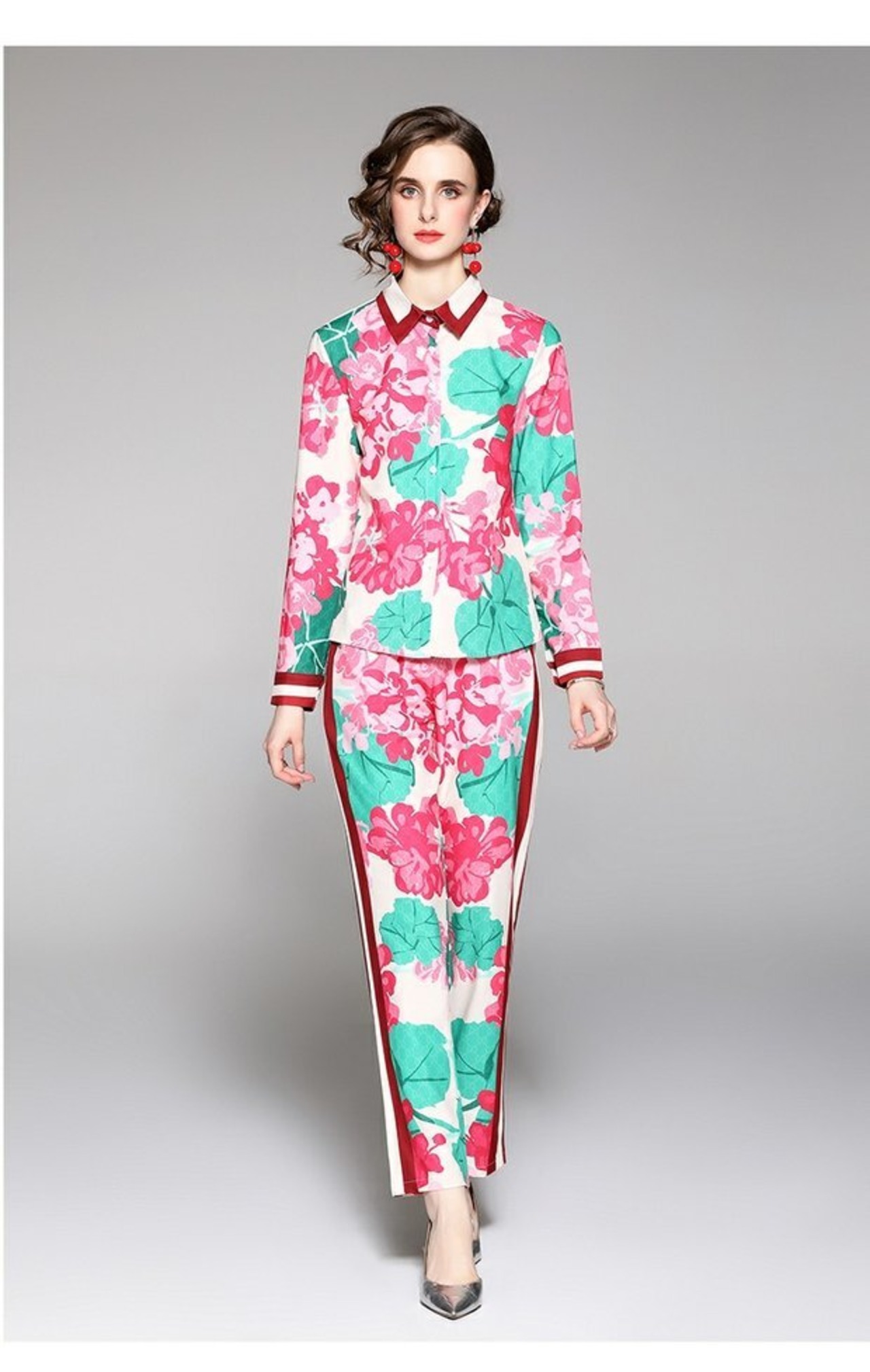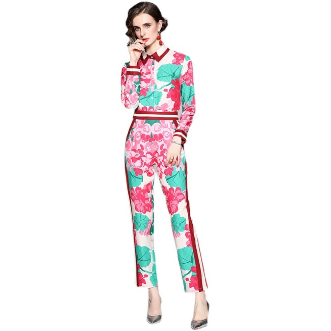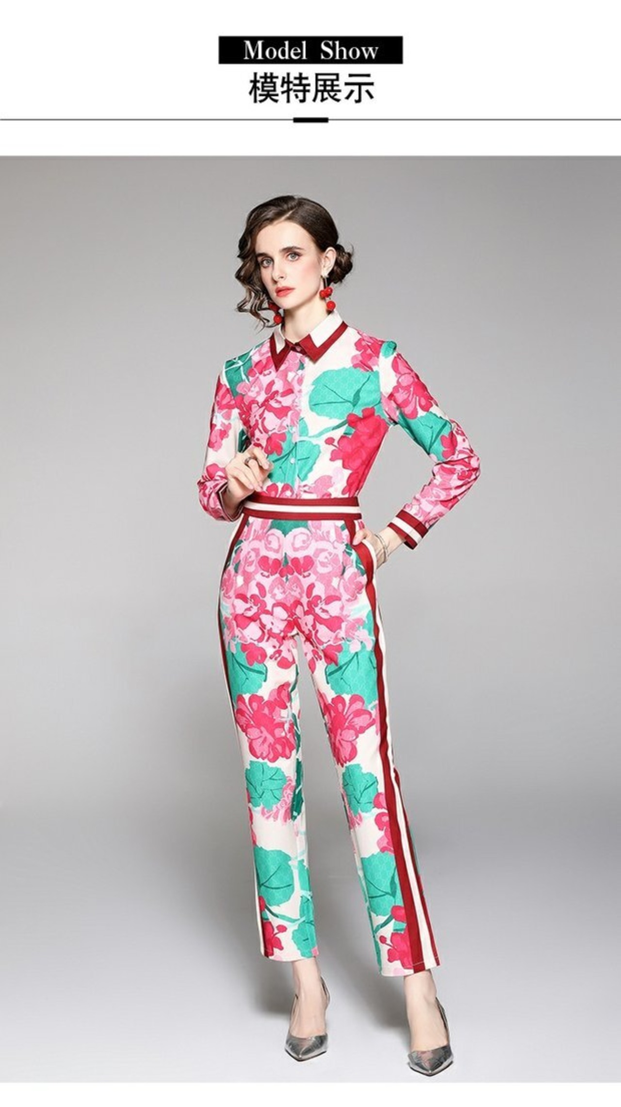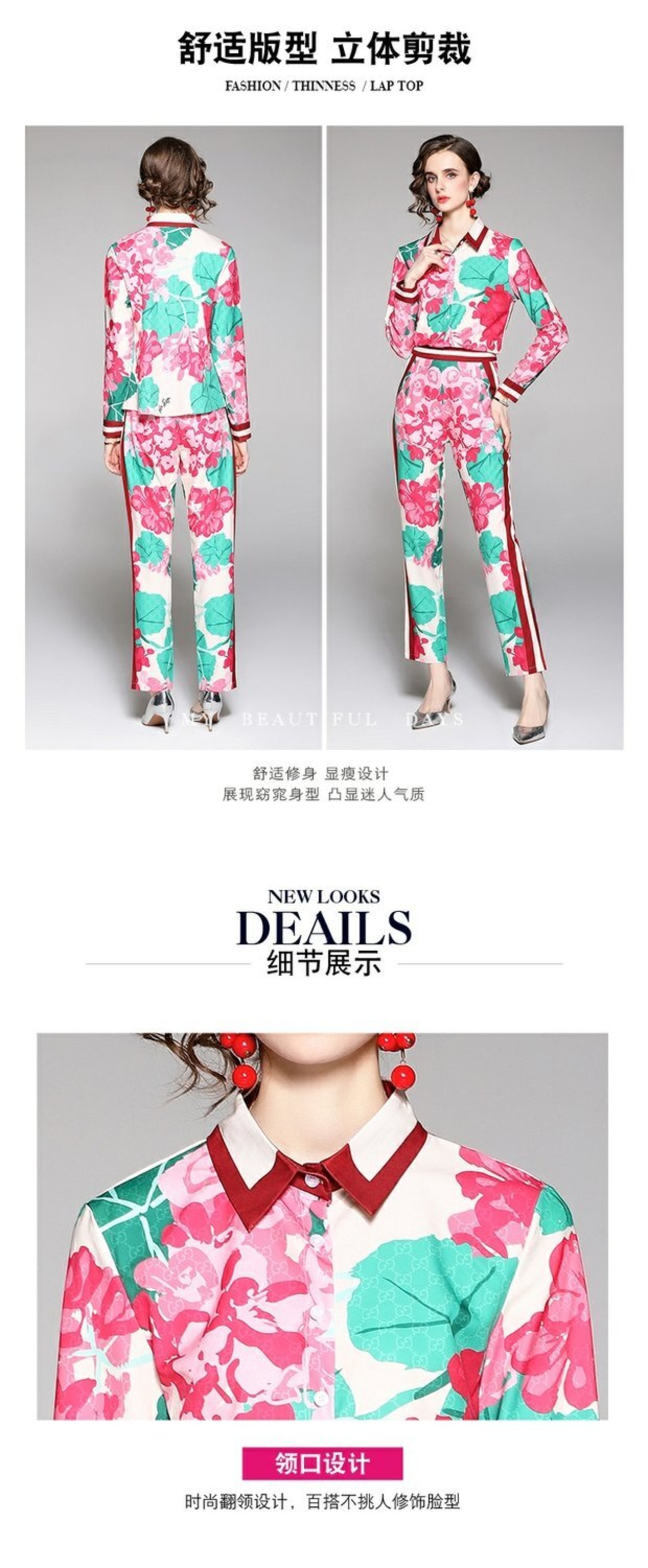 ディスカウントストアモールカウンター引き出しカウンターレディーステールストッククリアランスポジショニングプリントシャツ+ファッションウエストパンツスーツ missry31590215775 | guttiy
