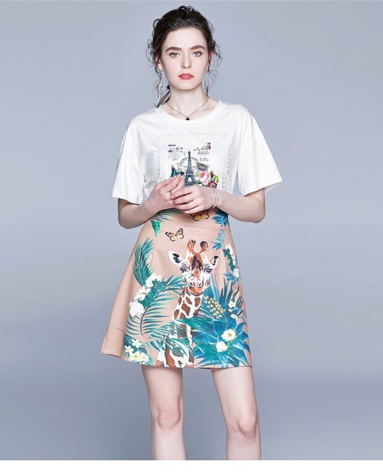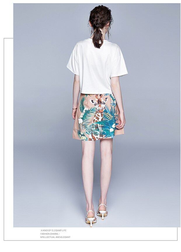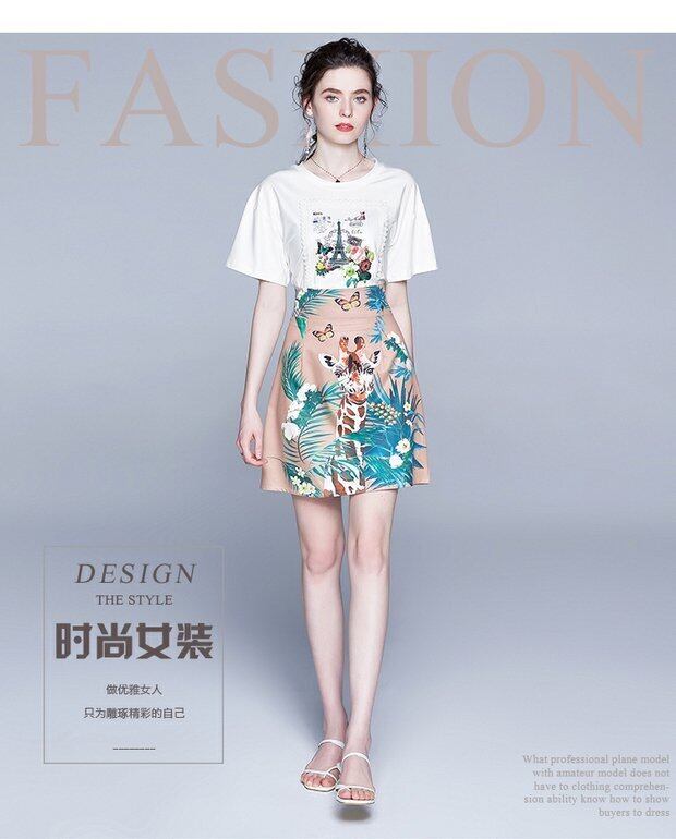 ディスカウントストアモールカウンター撤退レディーステールグッズクリアランスTシャツプリントショートスカートツーピーススーツスモールマンスーツスカート missry11025095955 | guttiy