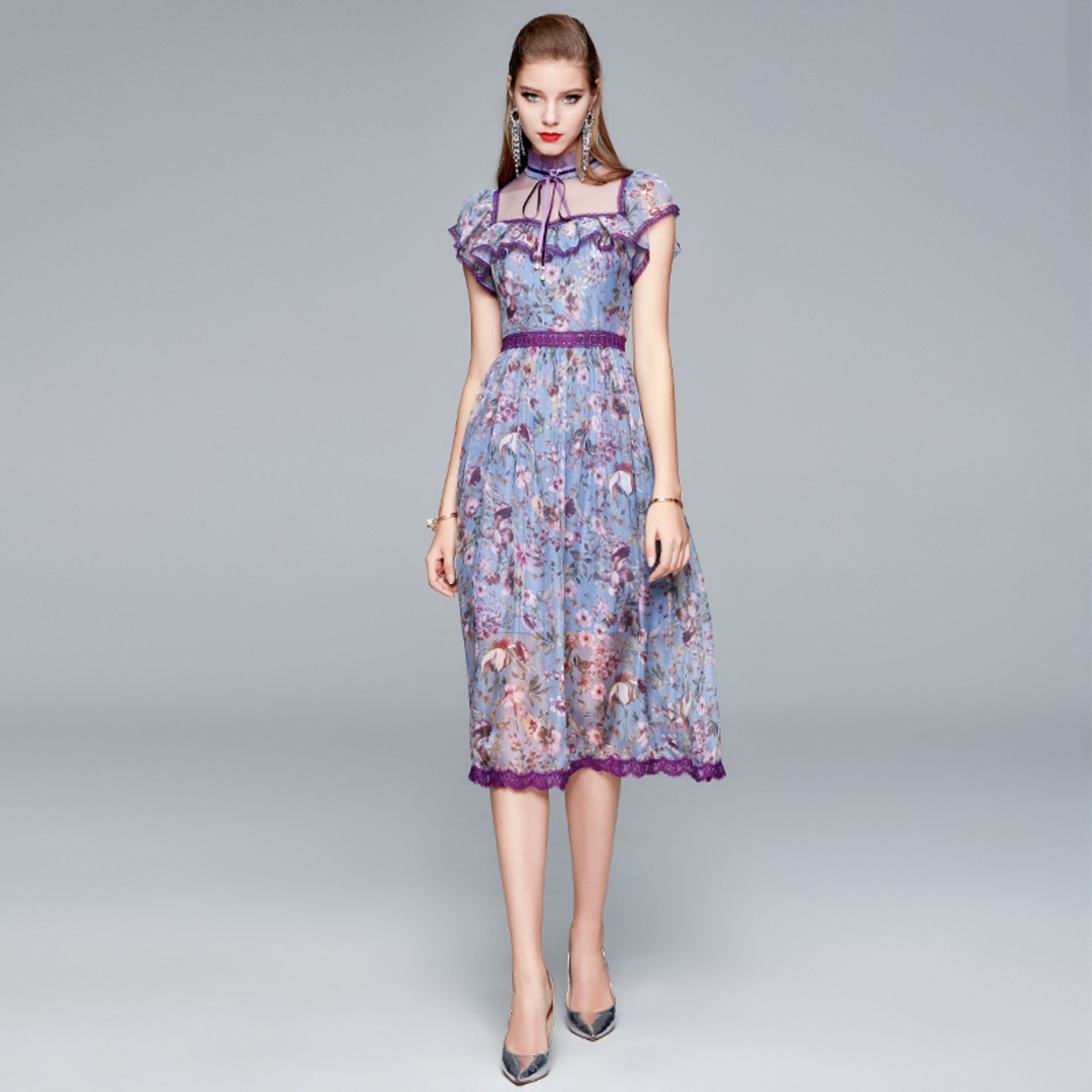 ディスカウントストアモールカウンター撤退カウンターレディーステールストッククリアランスネットヤーンステッチフローラルドレスハイウエストは薄く、年齢を減らしました missry10307576574 | guttiy