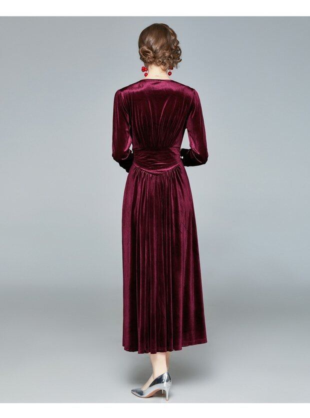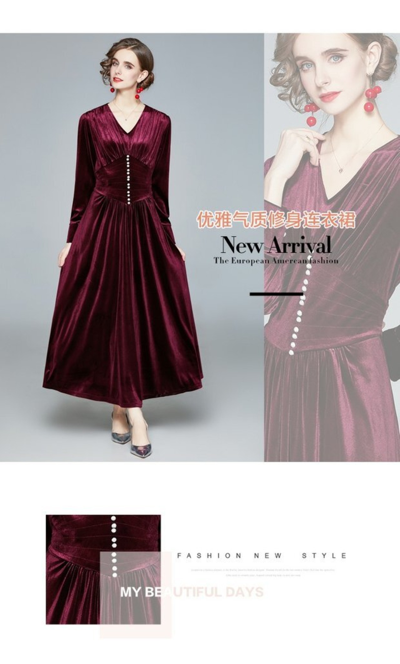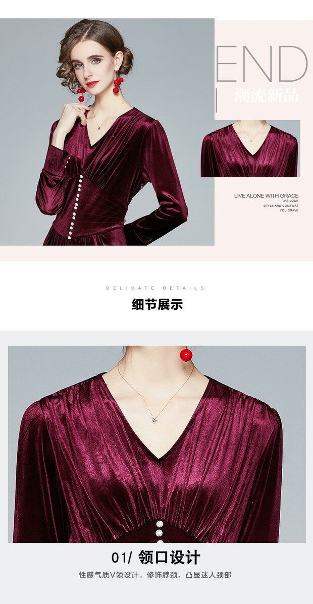 ディスカウントストアのモールカウンターはカウンターを撤回します女性のテールストッククリアランスベルベットドレスは薄い気質の長いドレスを示しています missry40467955288 | guttiy