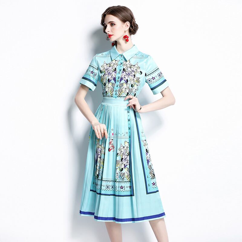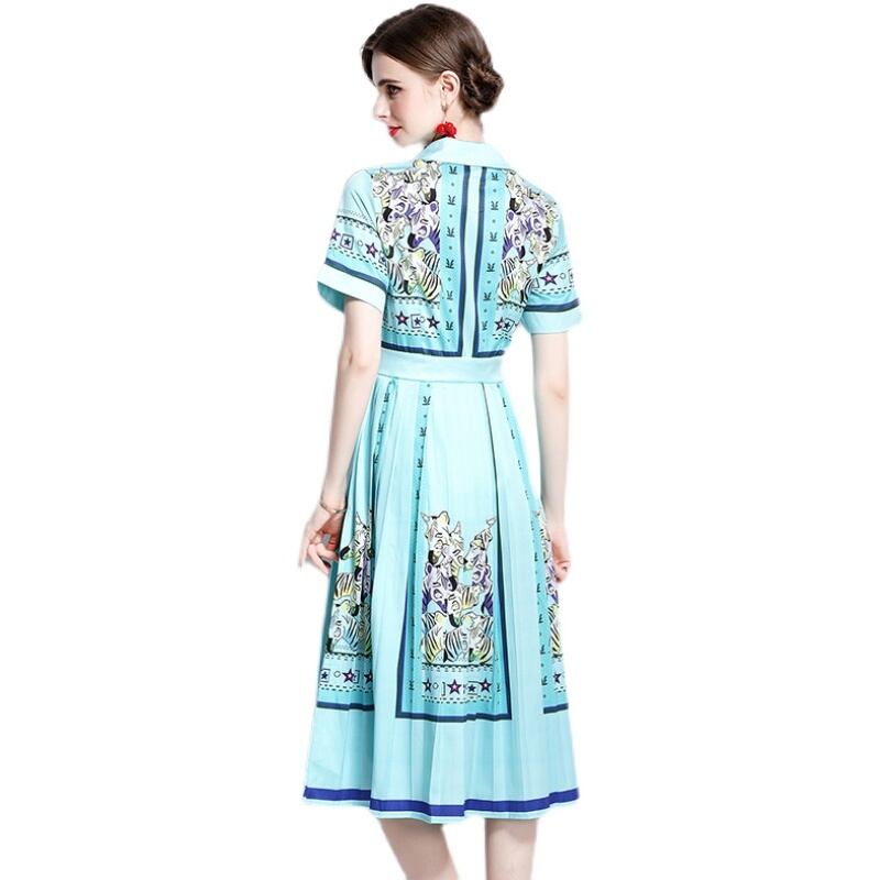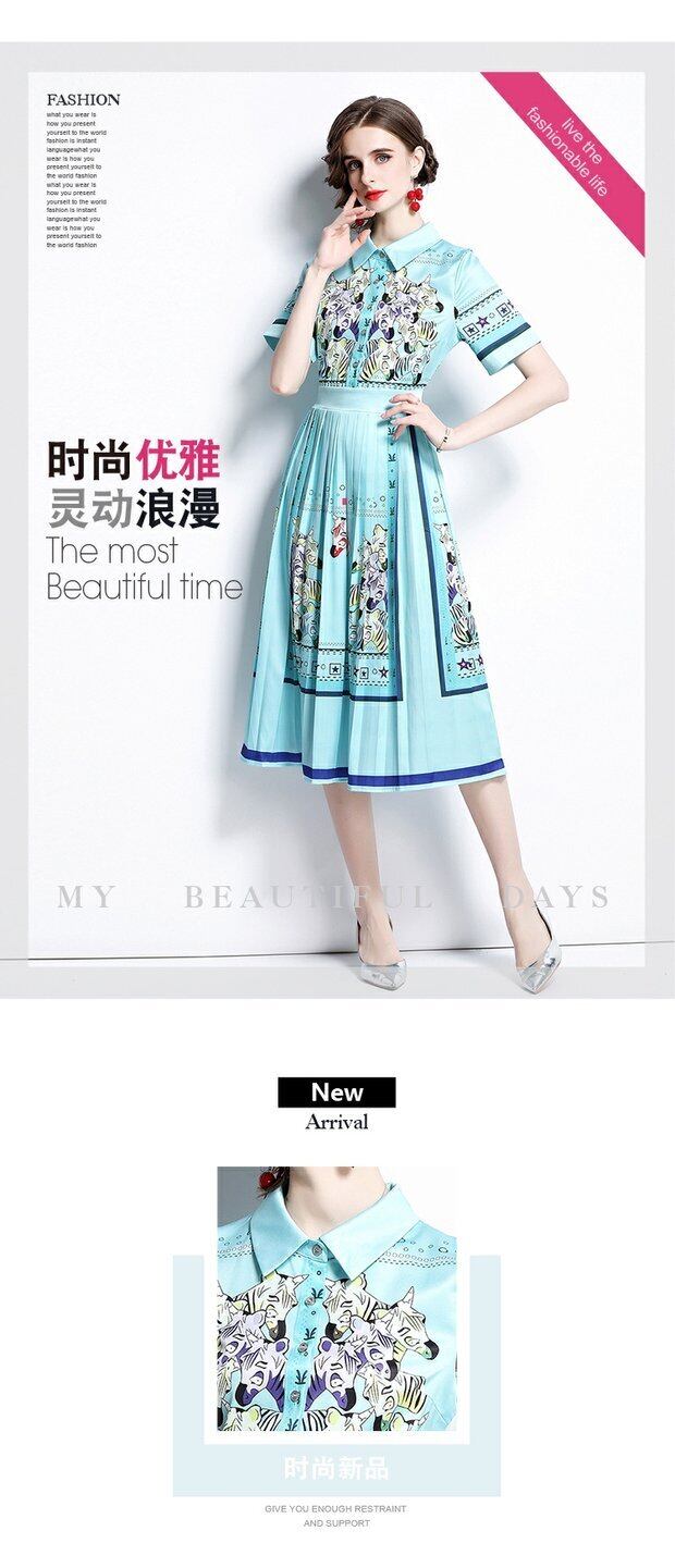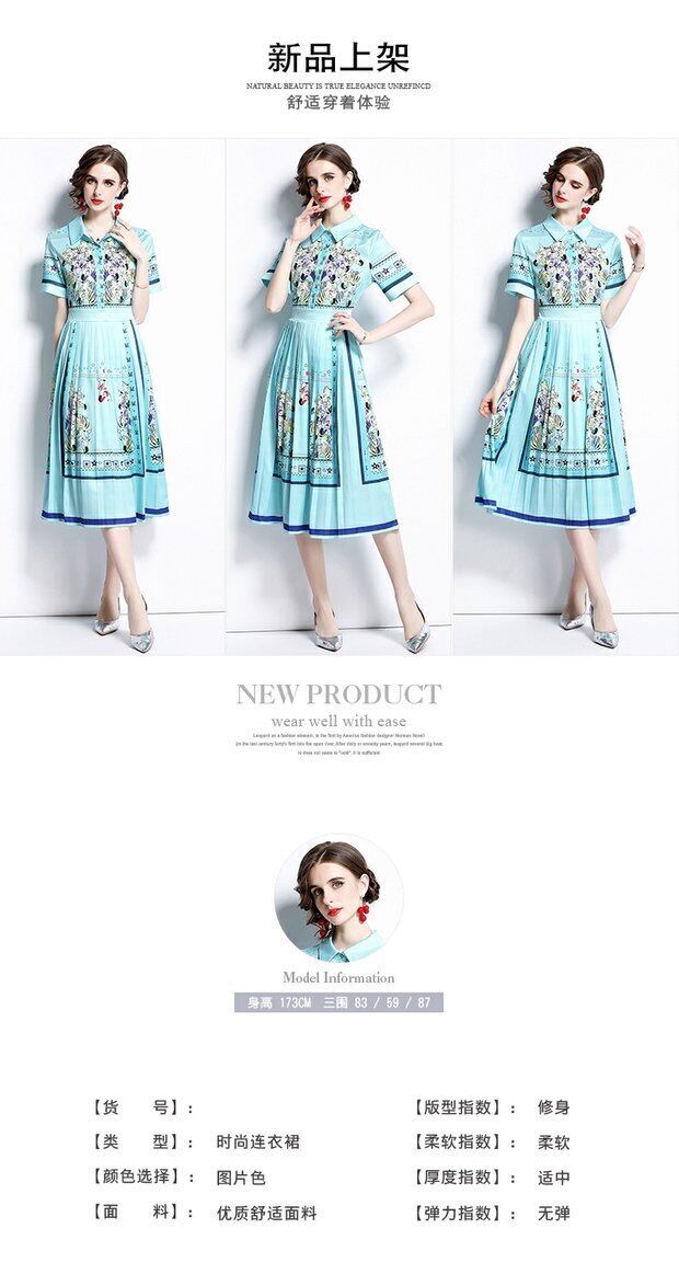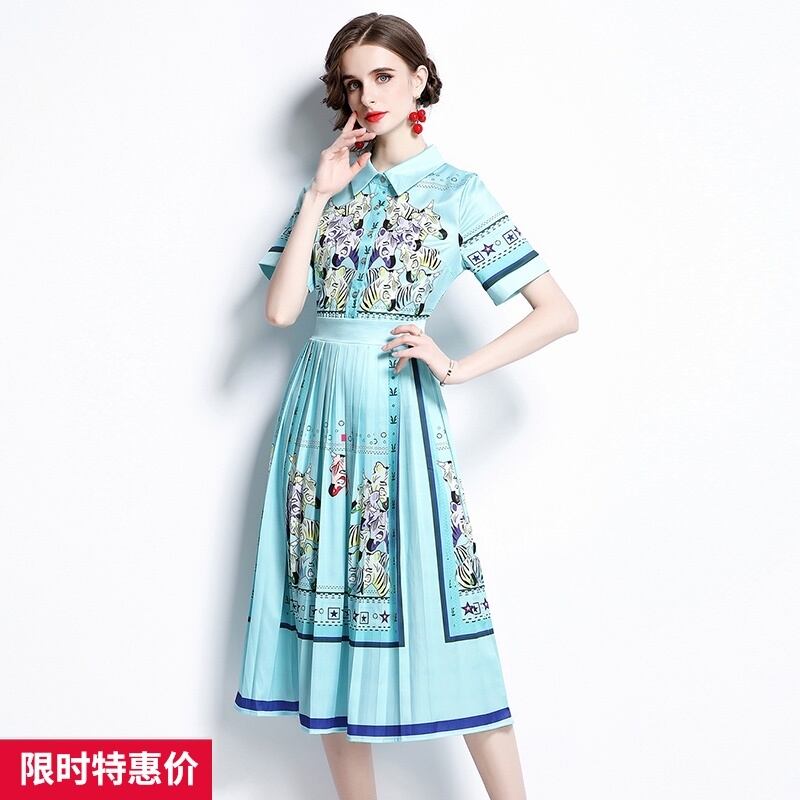 ディスカウントストアモールカウンター引き出しカウンター、女性のテールストッククリアランス、ウエストスリミング、プリーツプリントドレスのポジショニング missry26421497547 | guttiy
