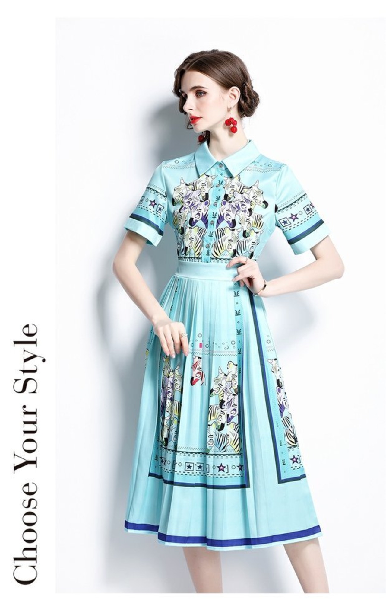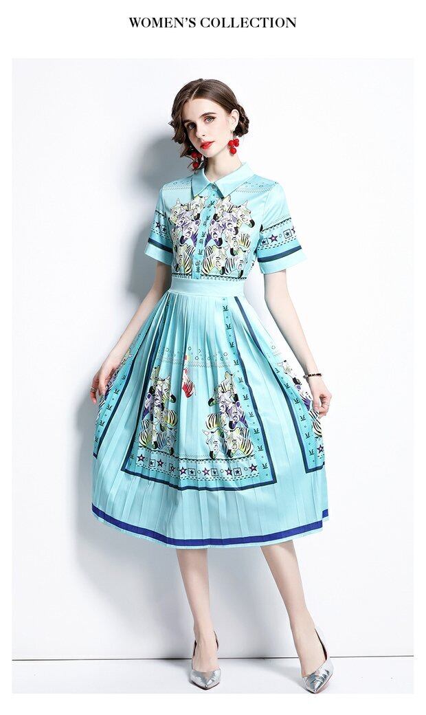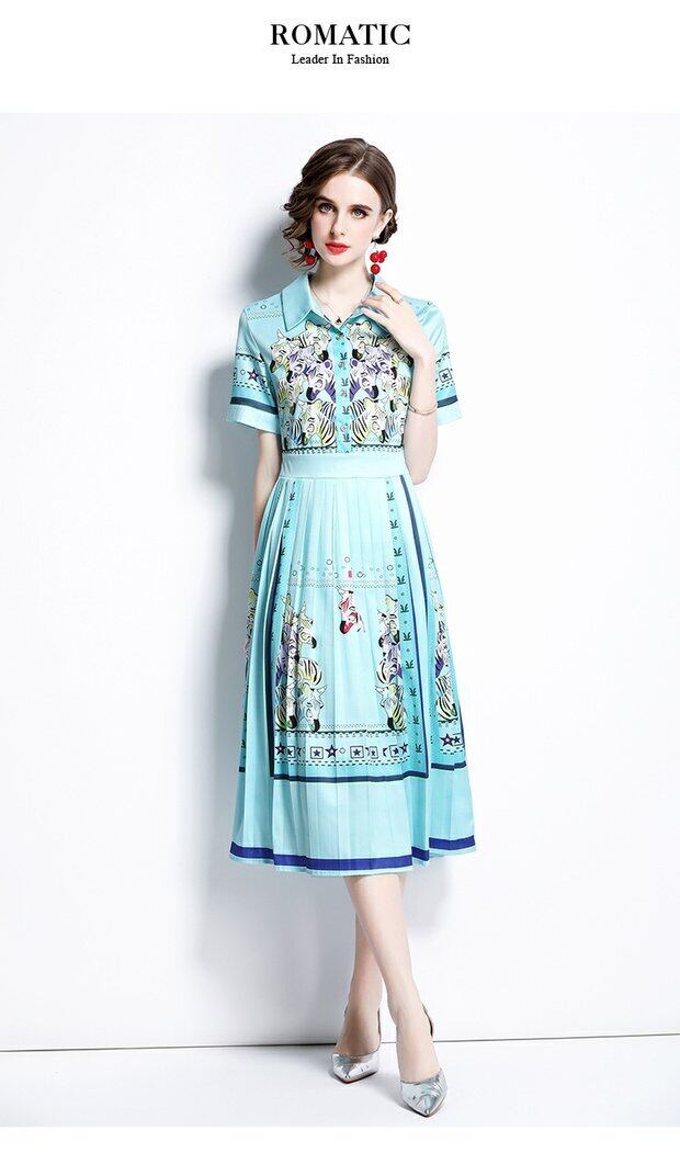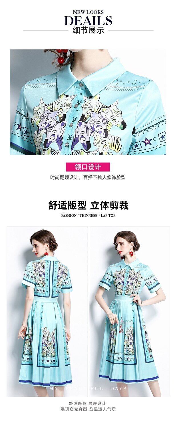 ディスカウントストアモールカウンター引き出しカウンター、女性のテールストッククリアランス、ウエストスリミング、プリーツプリントドレスのポジショニング missry26421497547 | guttiy