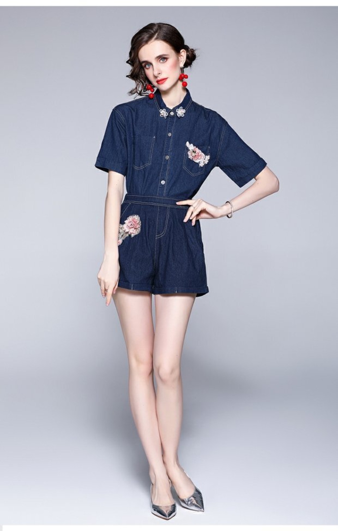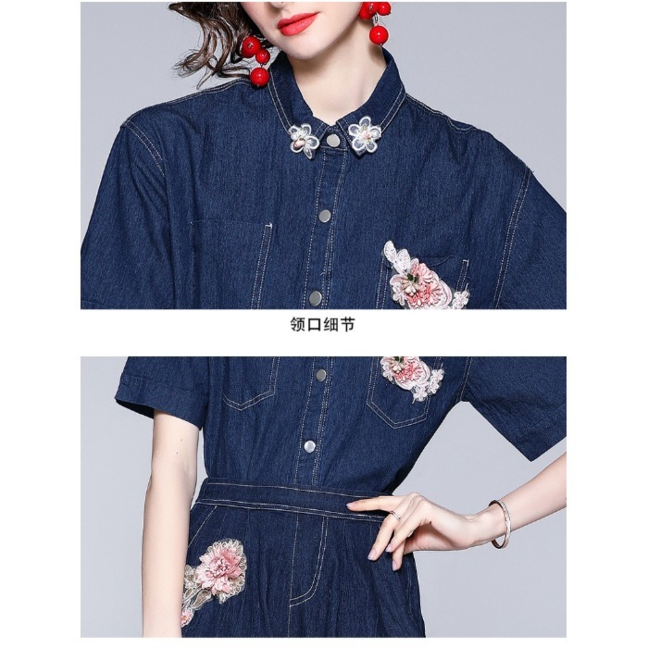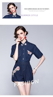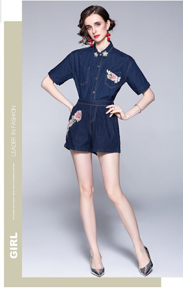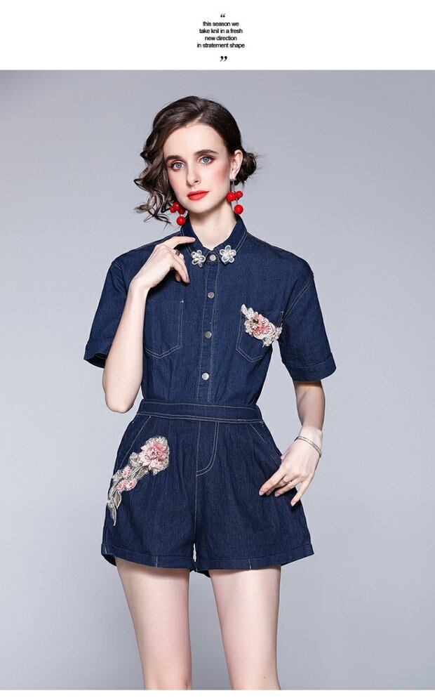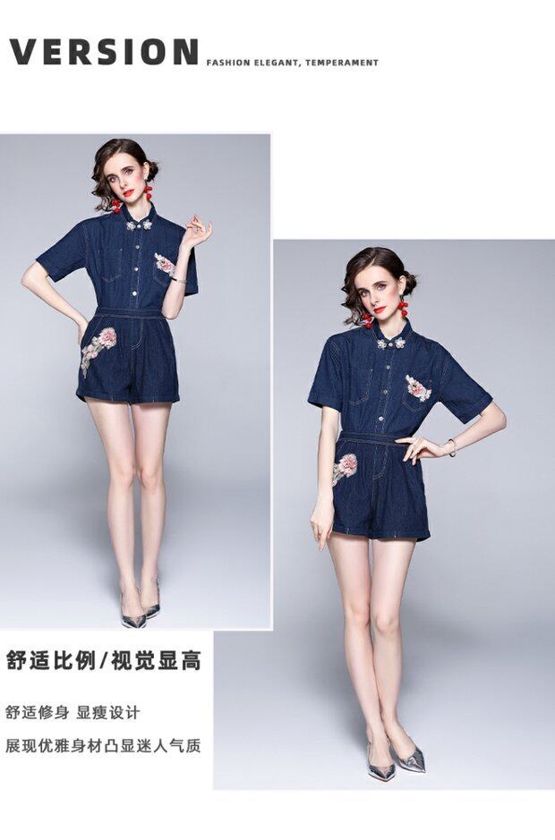 ディスカウントストアモールカウンター引き出しレディーステールグッズクリアランスデニムシャツエラスティックウエストワイドレッグショーツツーピースセット missry86252556212 | guttiy