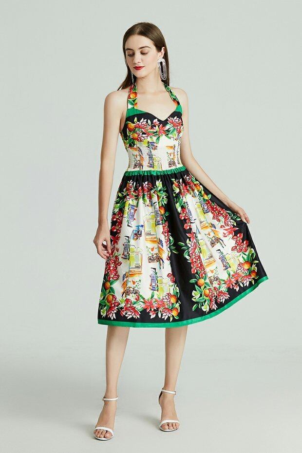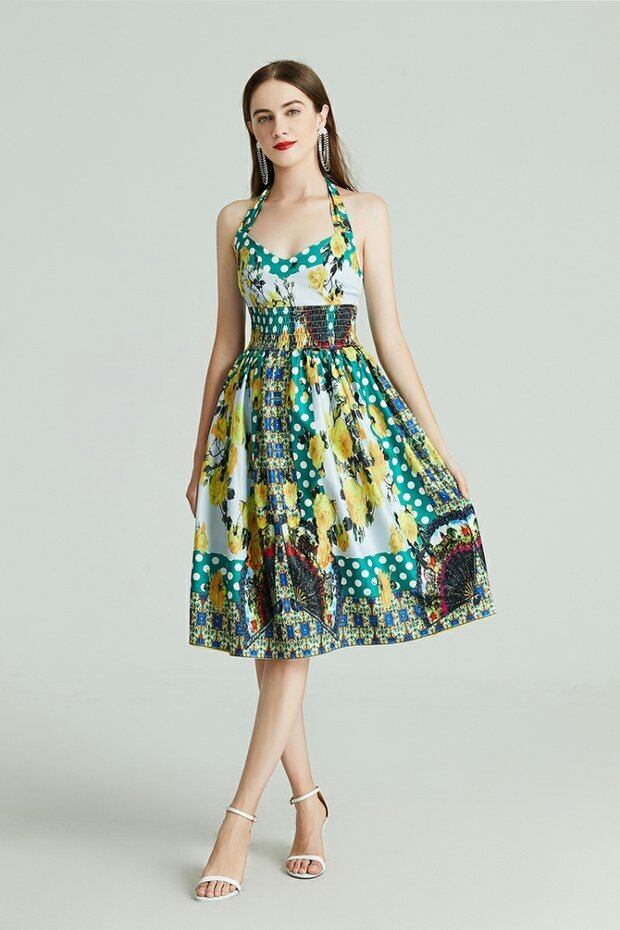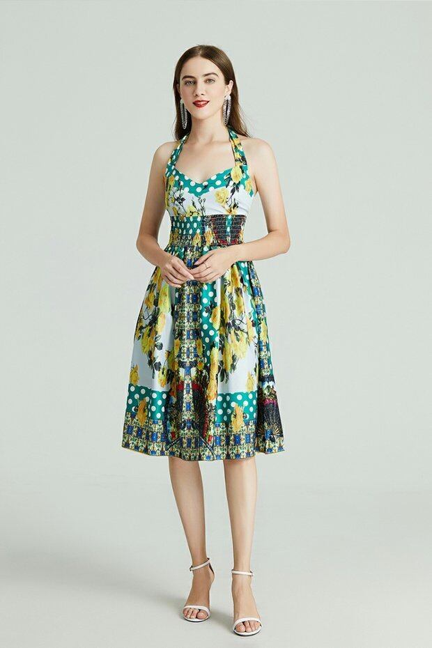 色:黒と緑の花柄のネックスカート,小さな赤い花のサスペンダースカート,グリーンポルカドットネックスカート