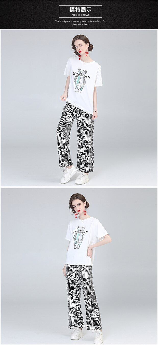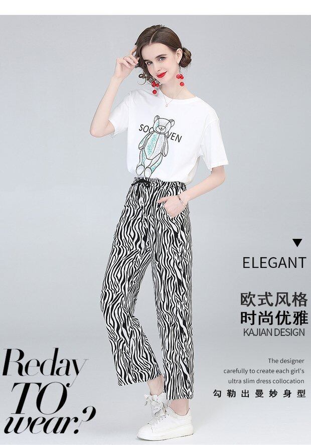 ディスカウントストアモールカウンター引き出しレディーステールグッズクリアランスオールマッチTシャツ+ゼブラ柄ルーズストレートパンツセットレディース missry56493776119 | guttiy