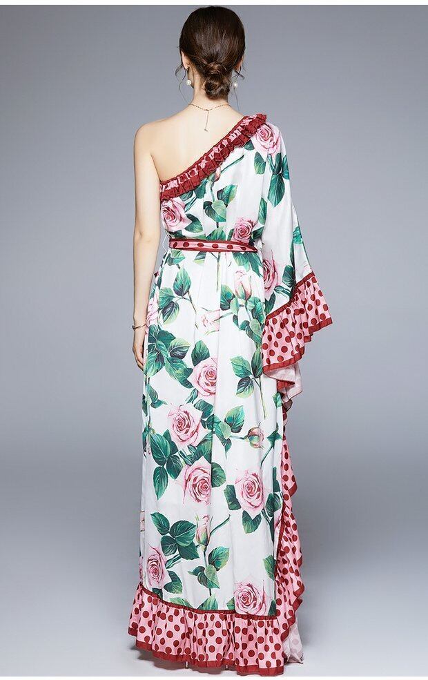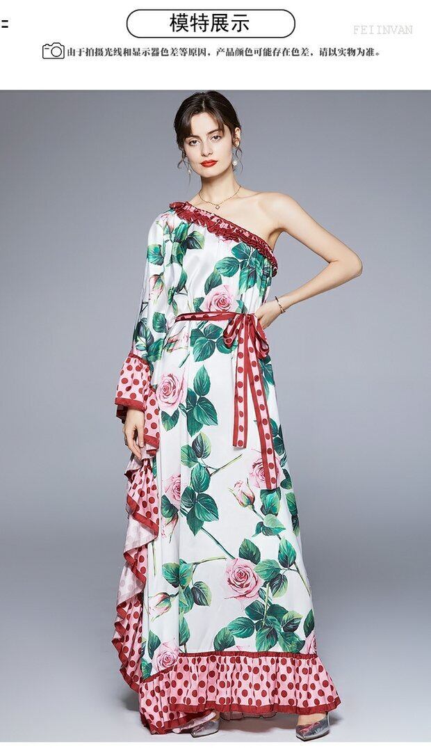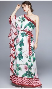 ディスカウントストアモールカウンター撤退婦人服テールグッズクリアランスロータスリーフレースチャーミングなワンショルダーレースアッププリントワンピース missry80962045055 | guttiy