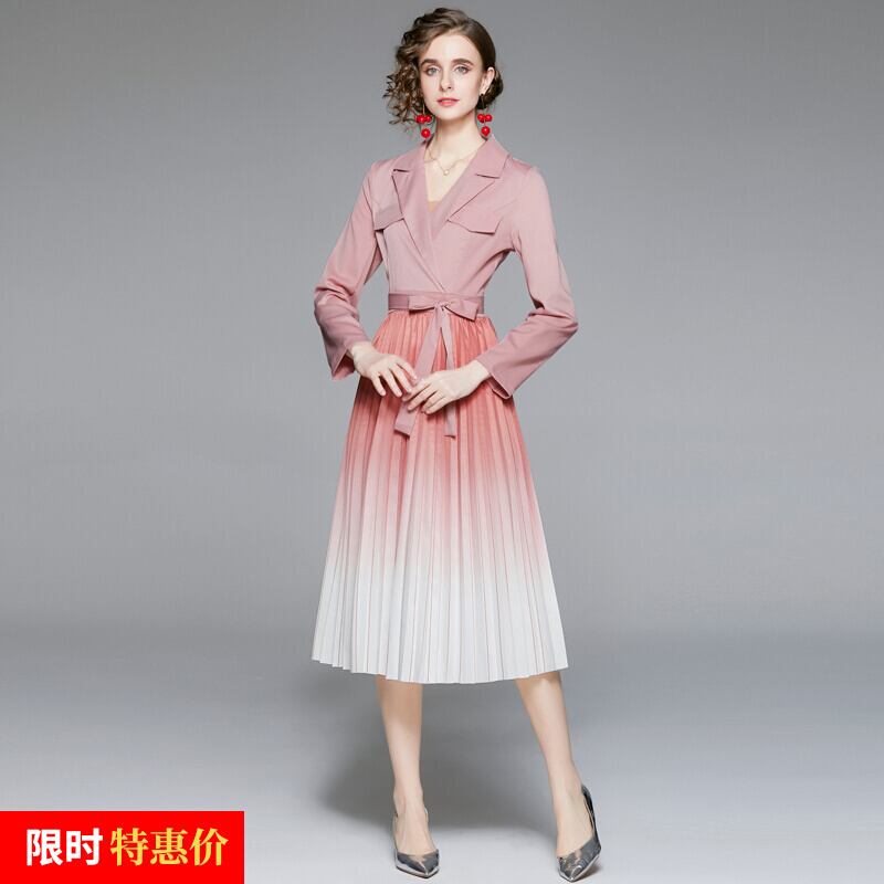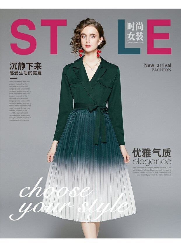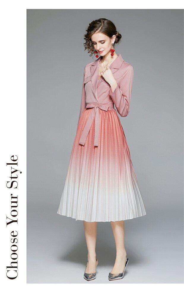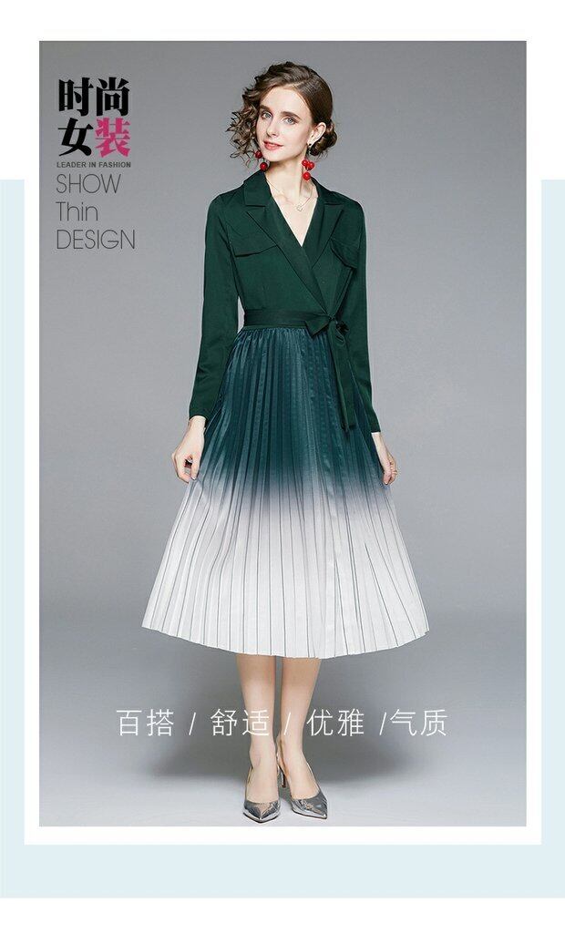 アウトレットモールカウンター撤退婦人服クリアランスウェアハウスウエストグラジエントプリーツミドル丈ドレス missry608561142