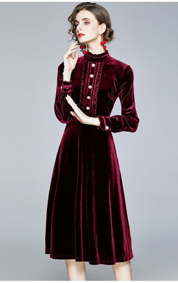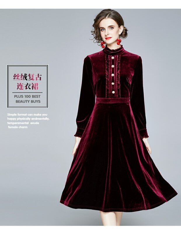 ディスカウントストアモールカウンター撤退婦人服テールグッズクリアランスレディース膝丈ゴールドベルベットドレス missry9698927932
