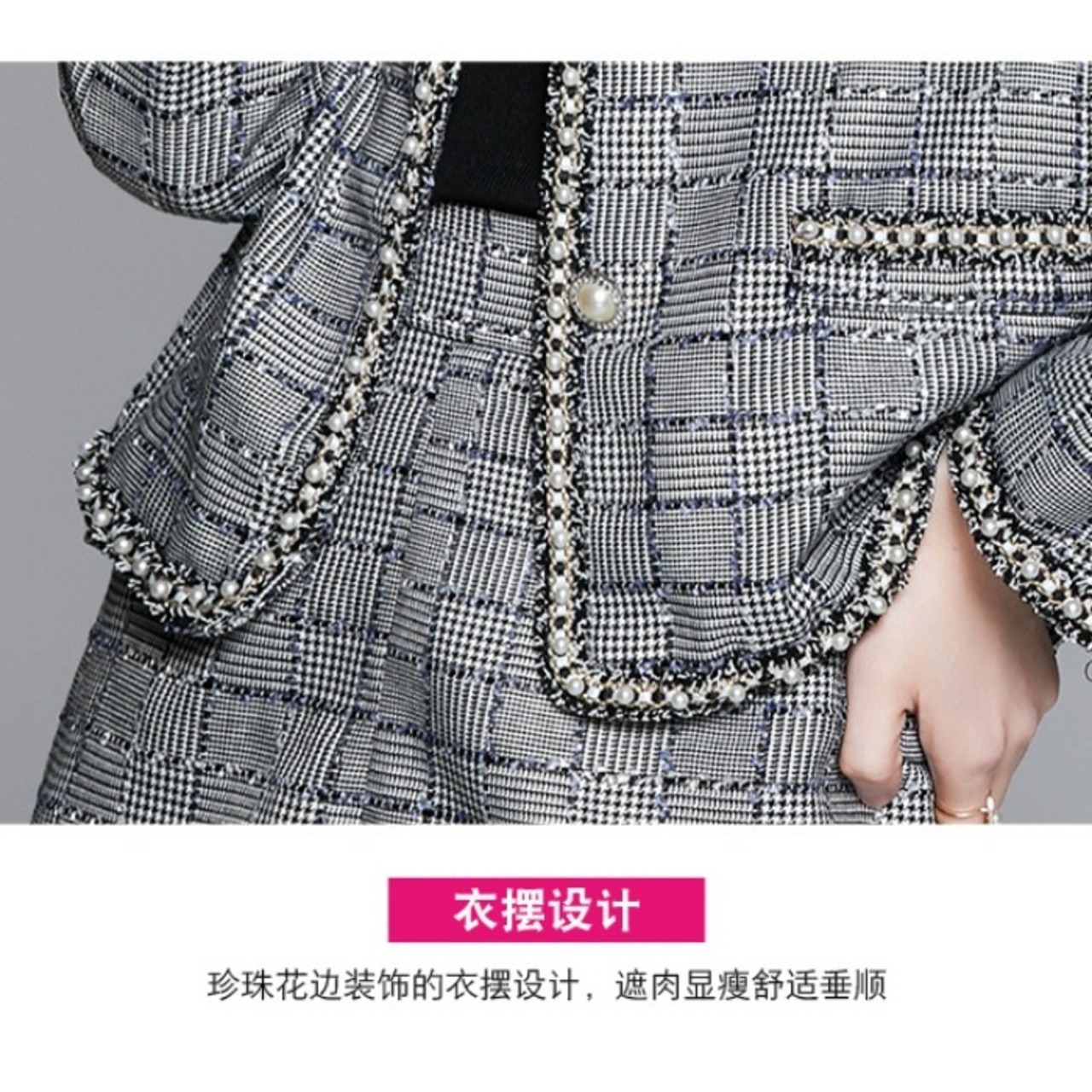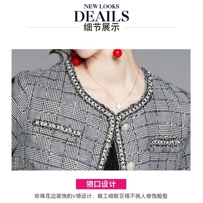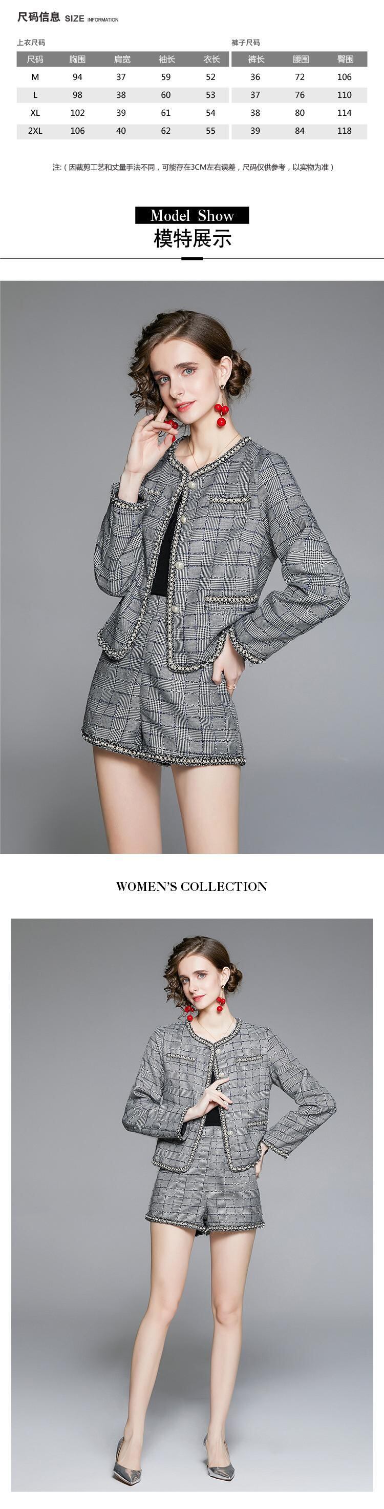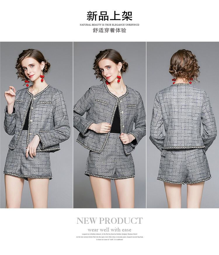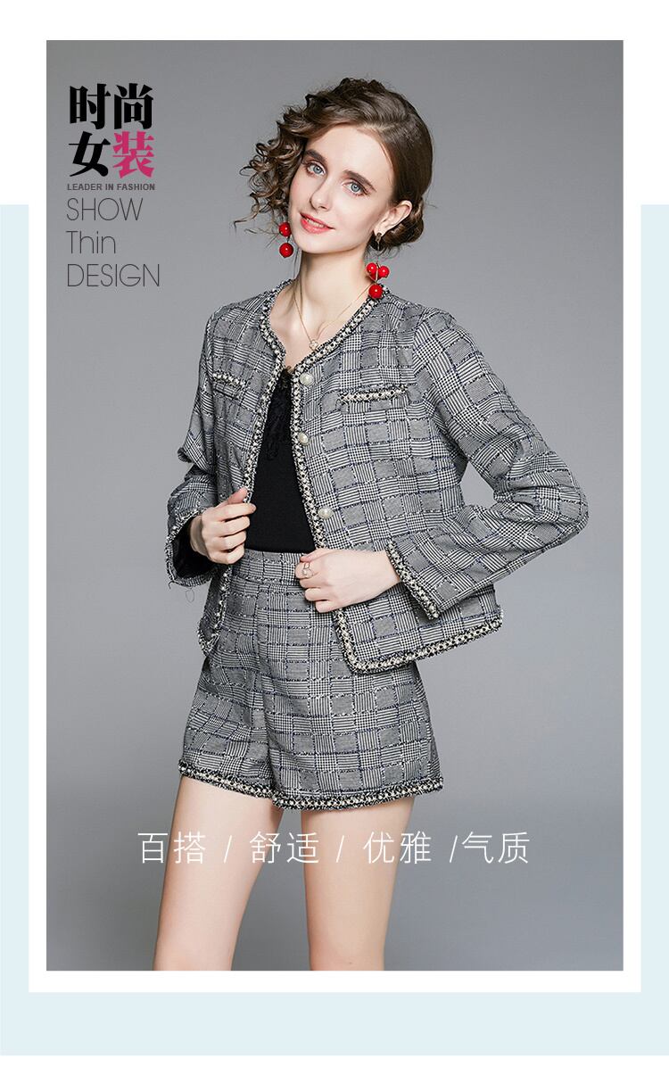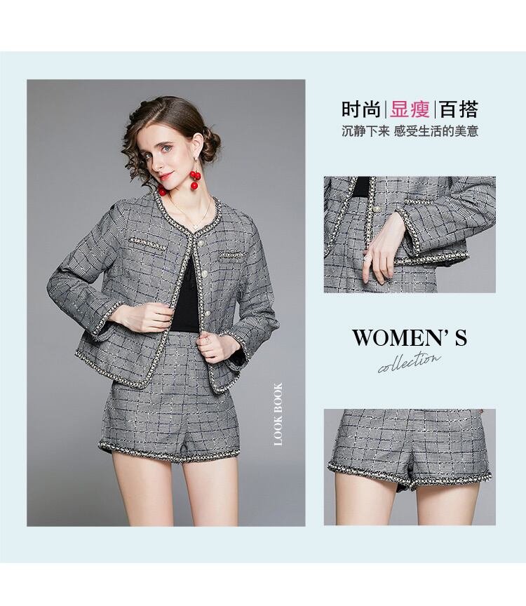 ディスカウントストアのショッピングモールは、女性のeignトレードカットラベル長袖千鳥格子コート+ハイウエストショーツツーピースセットを撤回します missry13457366297 | guttiy