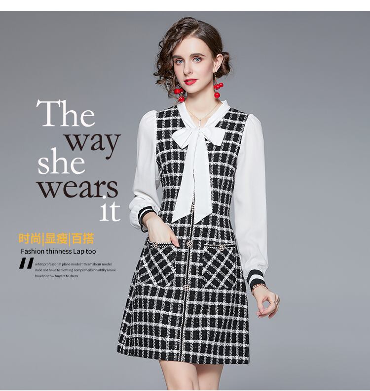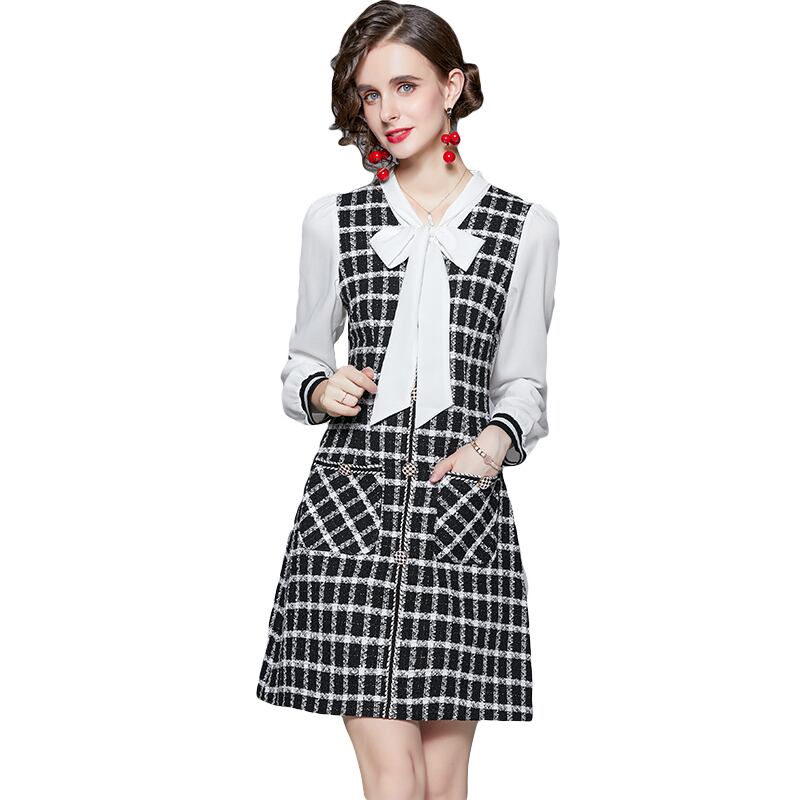 ディスカウントストアモールカウンター撤退婦人服テールグッズクリアランスXiaoxiangfengフェイクツーピーススプライシングチェック柄スカート missry54191592379 | guttiy