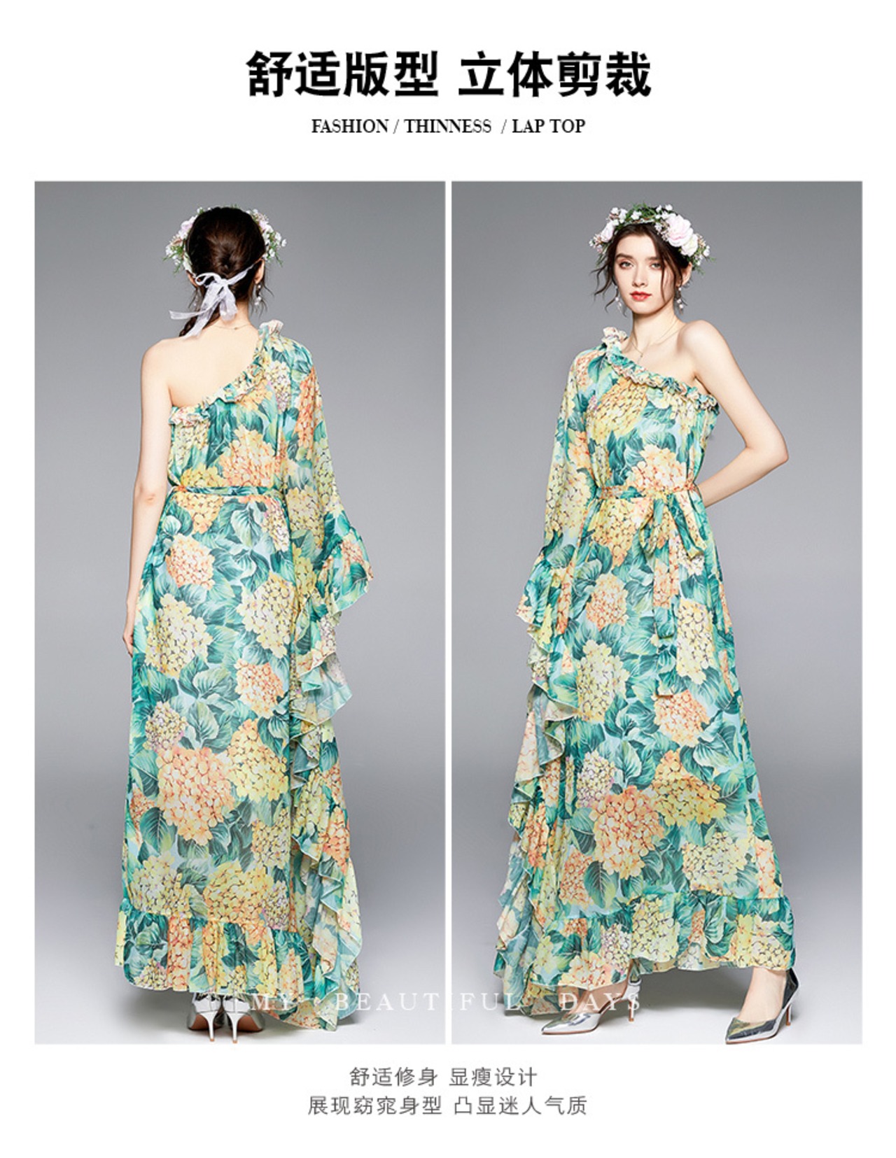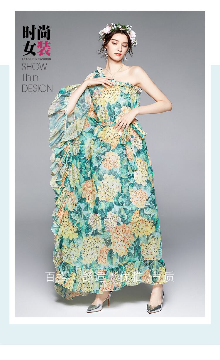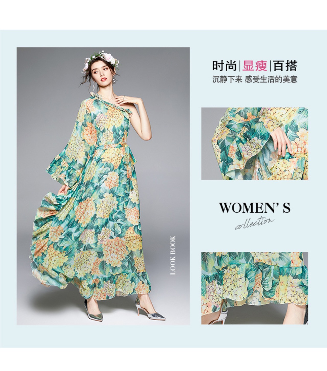 ディスカウントストアモールカウンター撤退婦人服テールグッズクリアランスロータスリーフレースチャーミングなワンショルダーレースアッププリントワンピース missry46078363842 | guttiy
