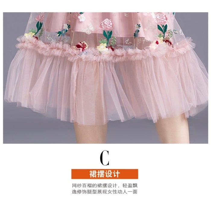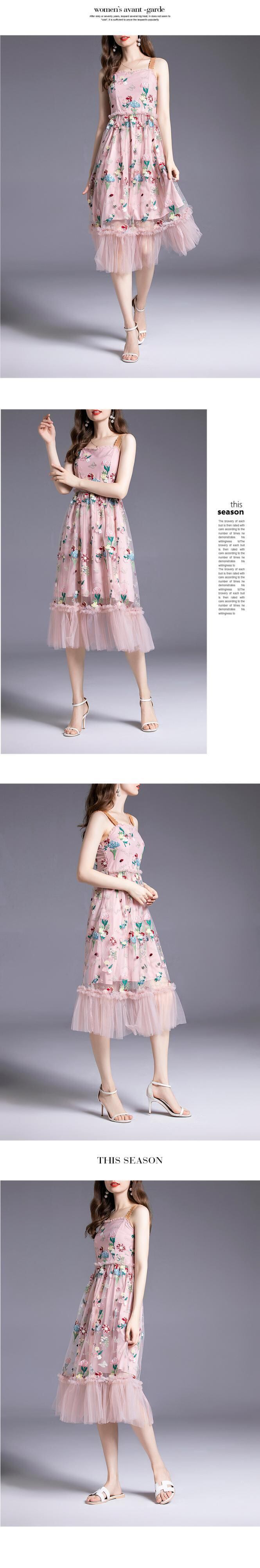 ディスカウントストアモールカウンター撤退女性の端クリアランス刺繍メッシュ膝上スイングノースリーブスリングドレス missry57000964076