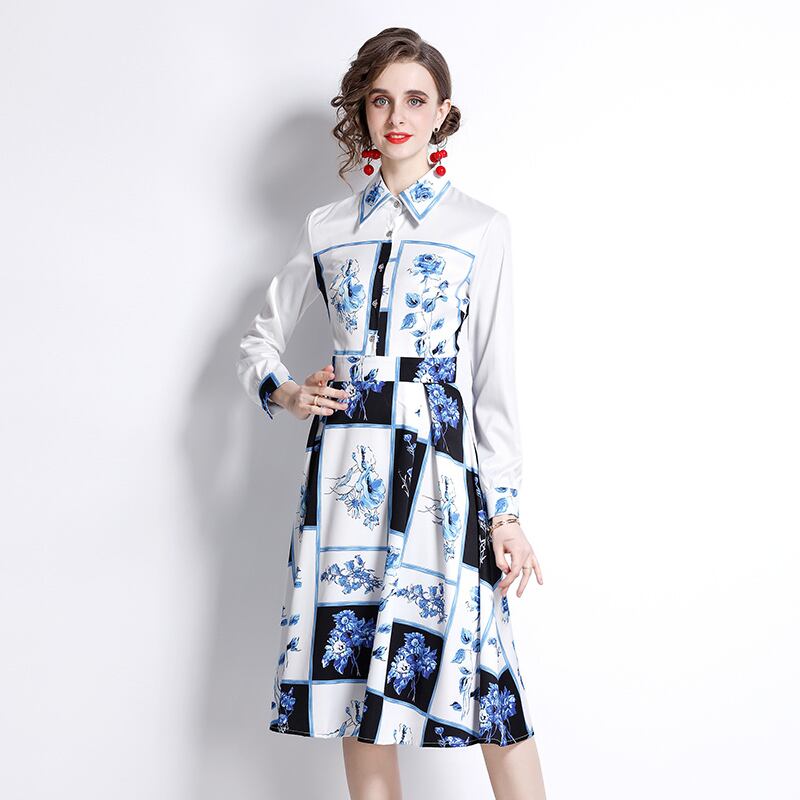 クリアランスとリークの第一線のブランドカウンターショッピングモールはカットラベルを撤回しました女性の新しいプリントドレスはラインスカートをプリントしました missry13999365981 | guttiy