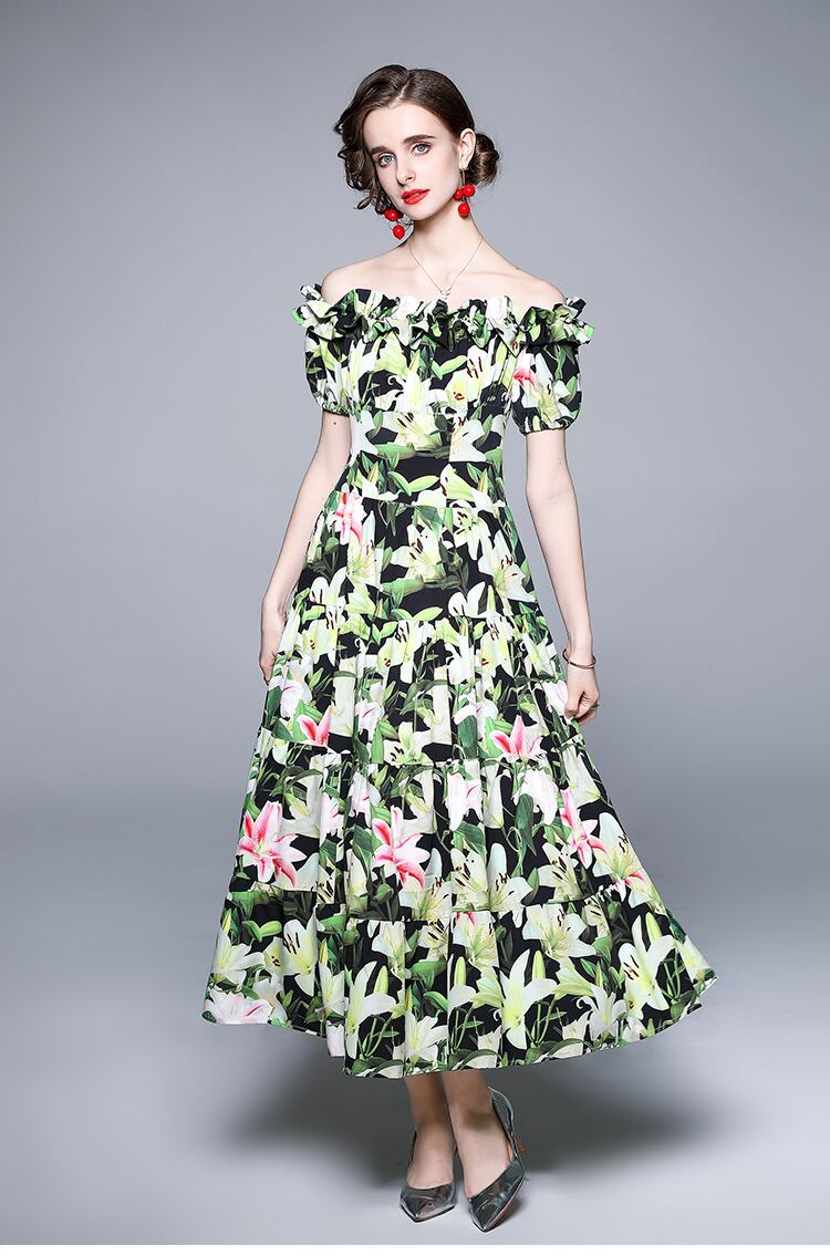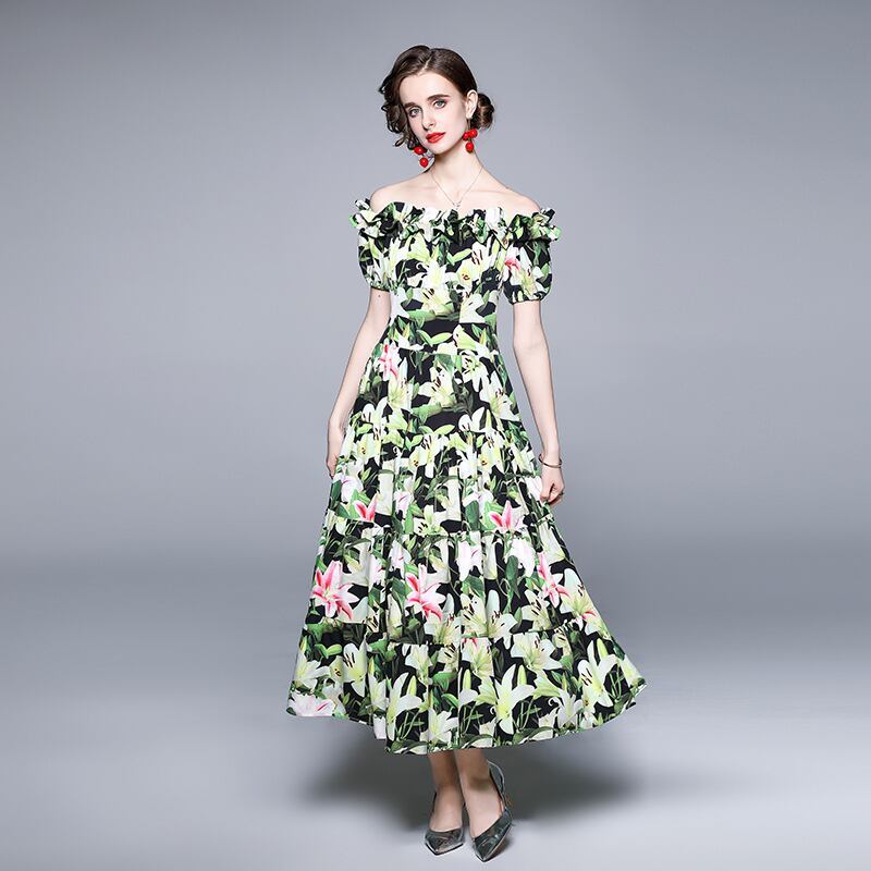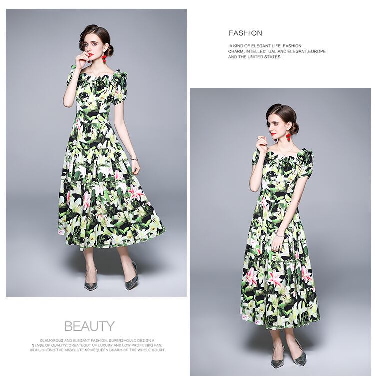 カウンターショッピングモールは、国際的な有名なカットラベル、残りの片尾片尾片尾婦人服、ワードカラーのプリントドレス、大スイングのロングスカートを撤回します missry50332582255 | guttiy