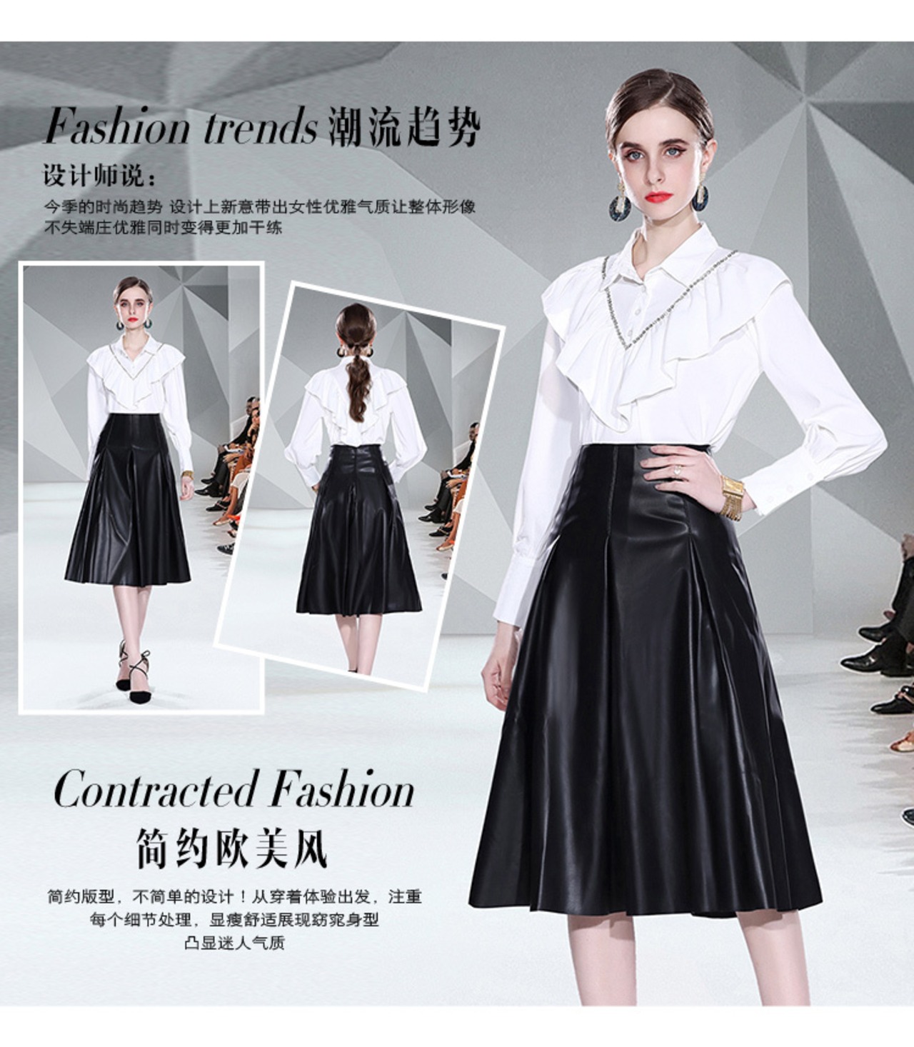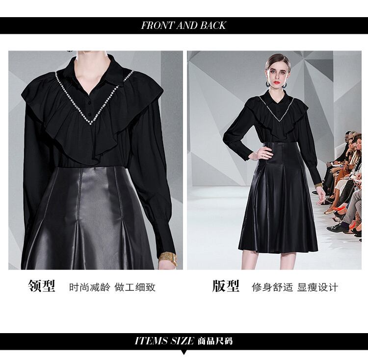 一流ブランドのカウンターやショッピングモールのクリアランスとリークにより、標準カットのシフォンシャツ+レザースカートとスカートのツーピースセットが撤回されました missry5221513214 | guttiy