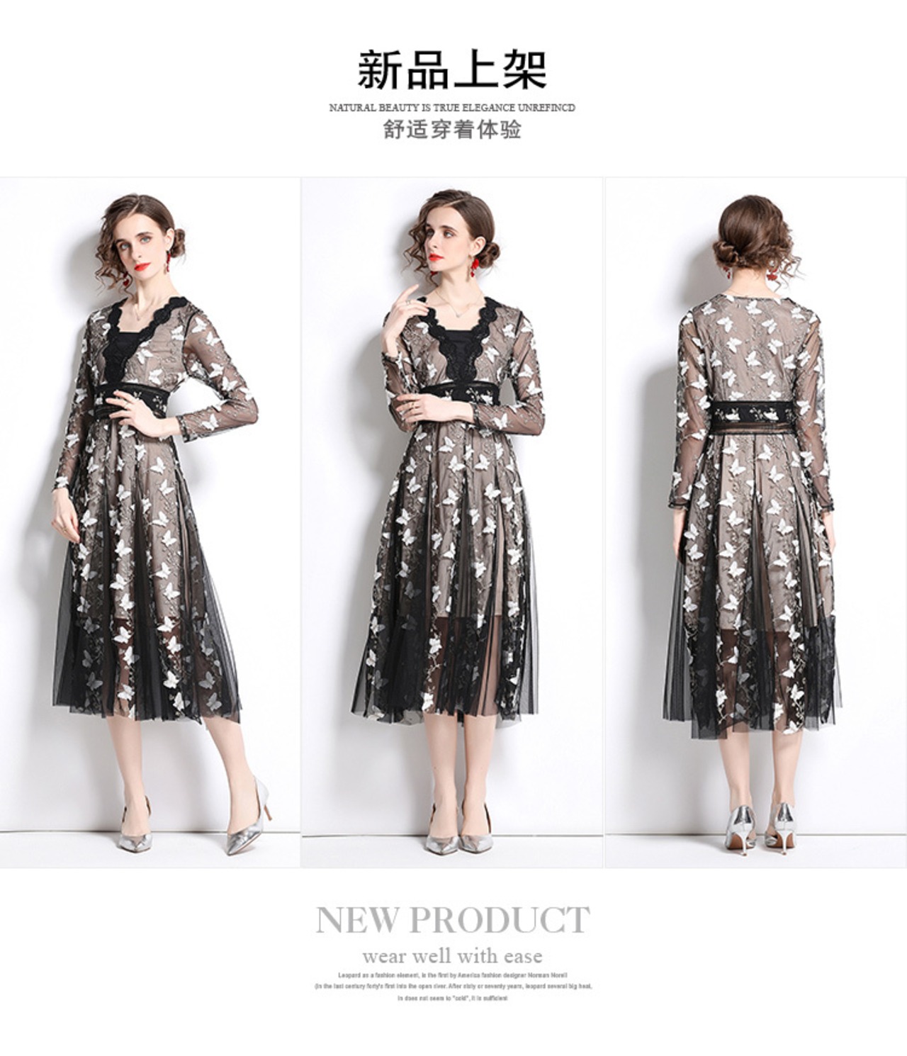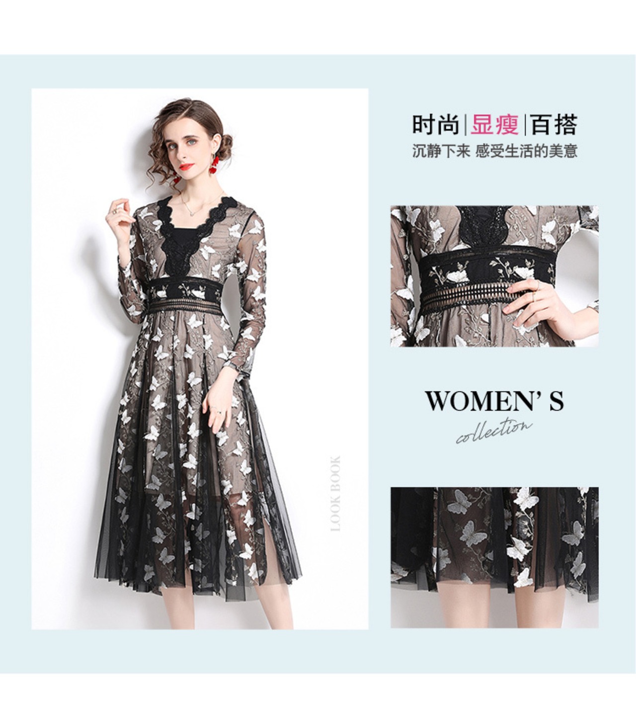 カウンターモールは、国際的なビッグネームのカットラベル、残りのシングルテールシングルエンドシングル女性刺繍Aラインスカート、エレガントな長袖ドレスを撤回します missry53823439181 | guttiy