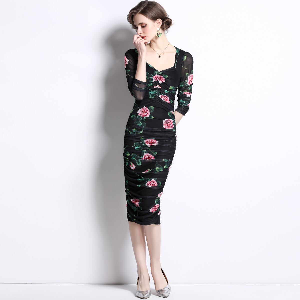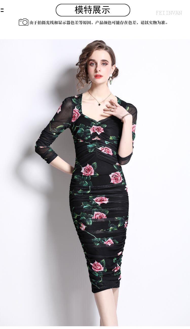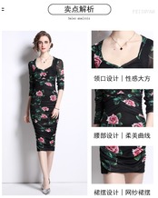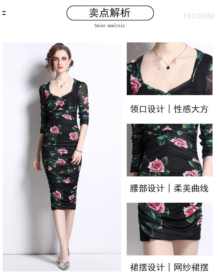 Discount store mall counter withdrawal women's clothing tail goods clearance elastic waist bag hip printing catwalk long dress ロング エラスティック 伸縮 missry7833893238 | guttiy