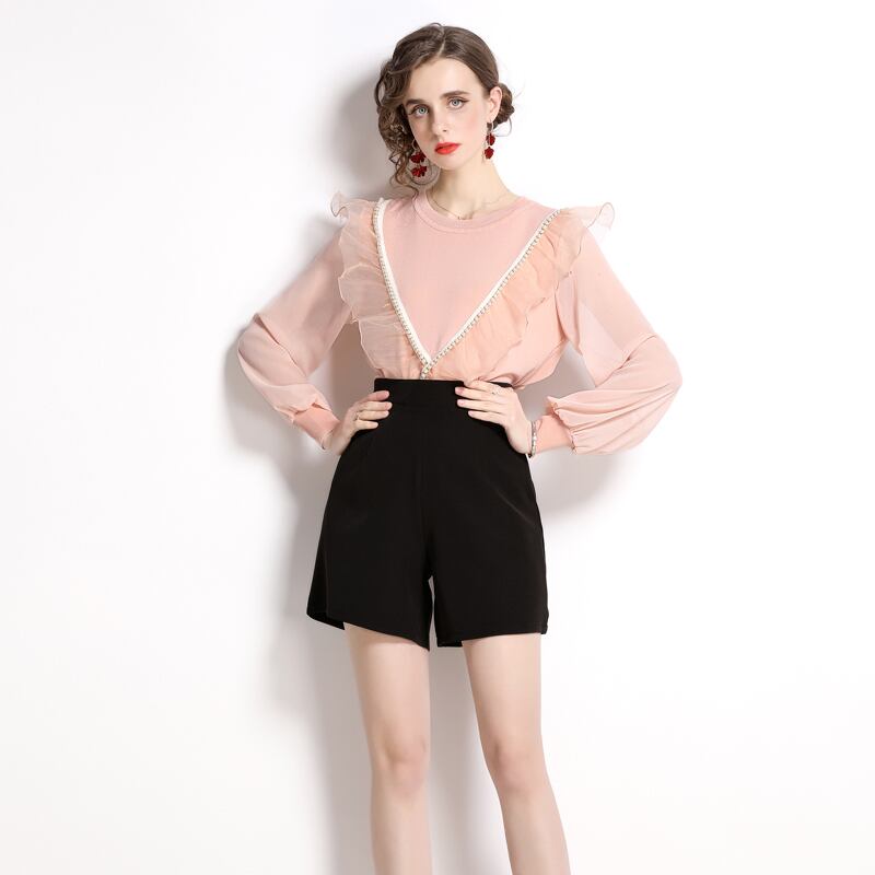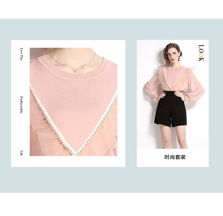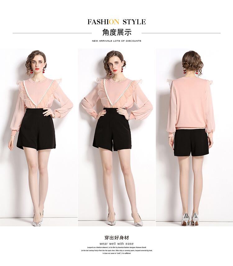 Discount Store Mall Counters Withdrawal Women's Ends Clearance Hollow Round Neck Knitted Slimming Top + Black Shorts ブラック ショーツ ブルマー Oネック missry80283696036 | guttiy