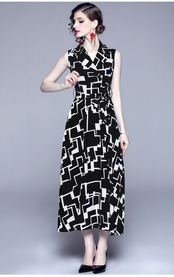 Discount store mall counters withdrawn women's clothing tail goods clearance ladies temperament large swing printed dress プリント missry65954771089 | guttiy