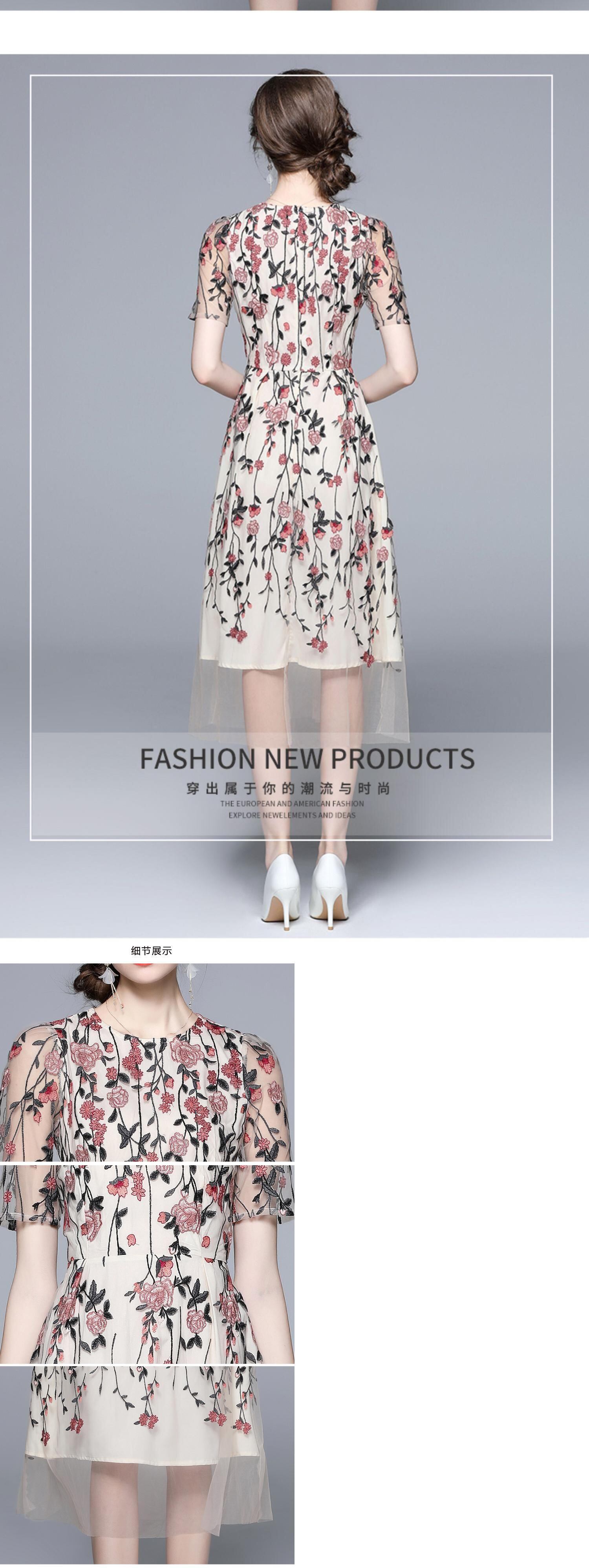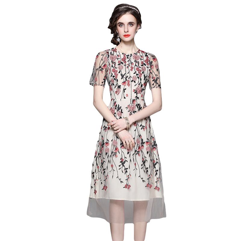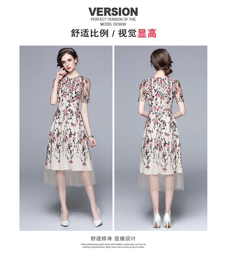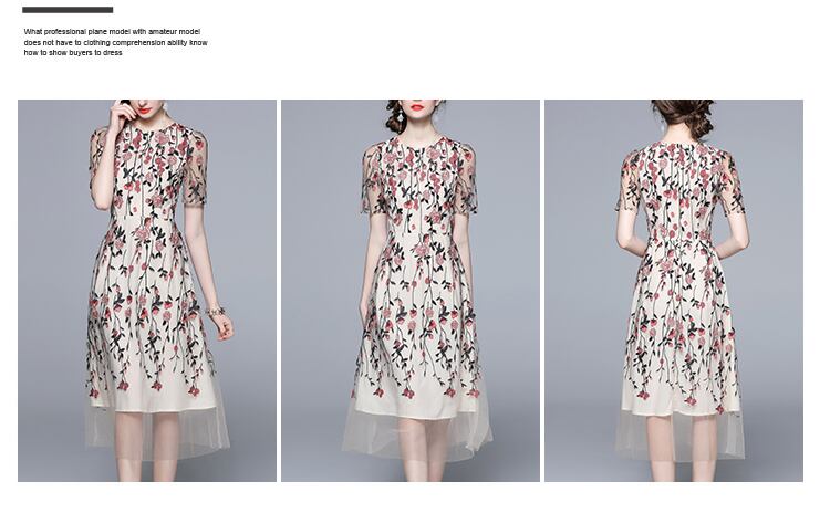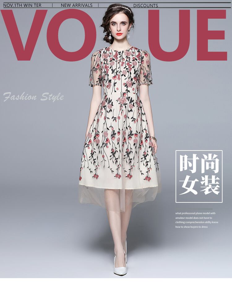 Discount Store Mall Counters Withdrawal Women's Clothes Clearance Round Neck Waist Heavy Industry Mesh Embroidery Dress 刺繍 メッシュ Oネック missry44976265255 | guttiy