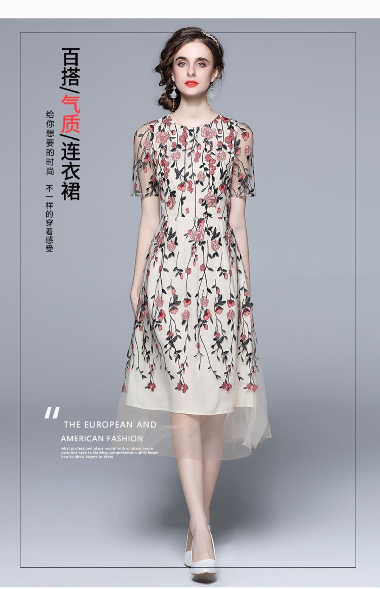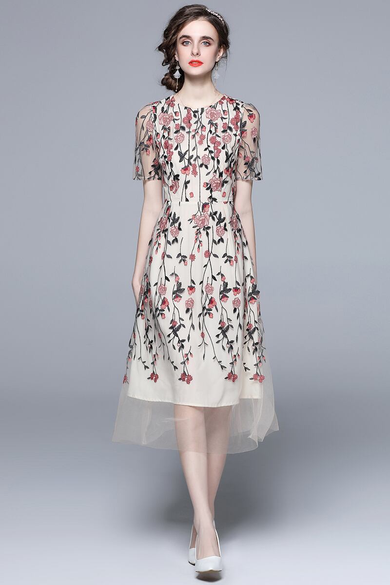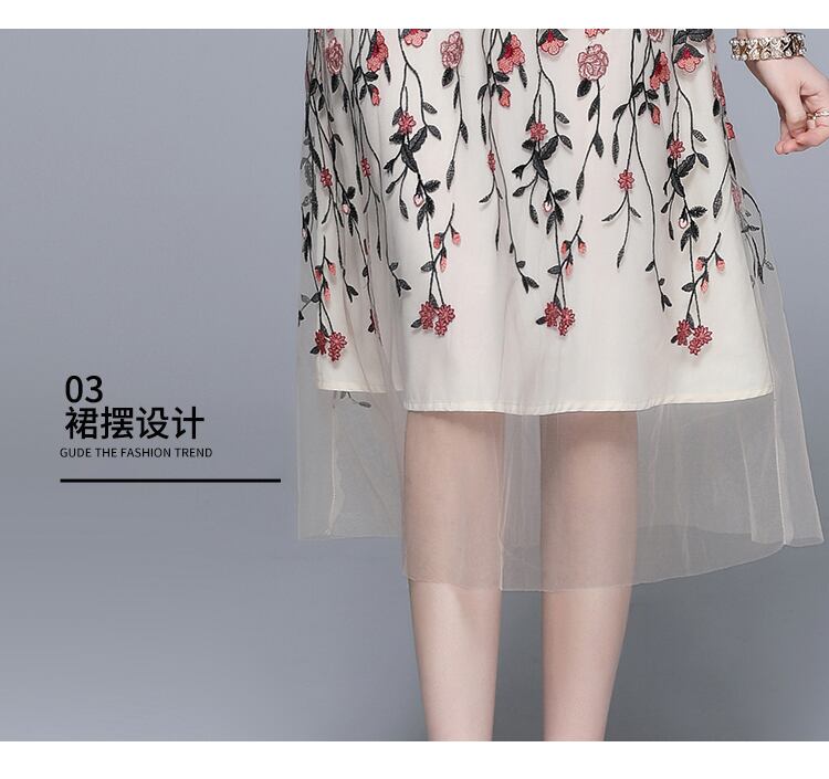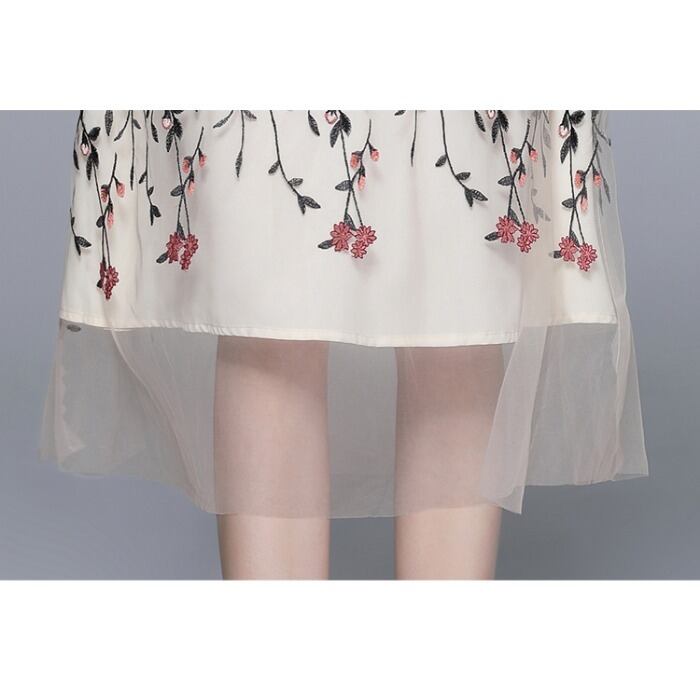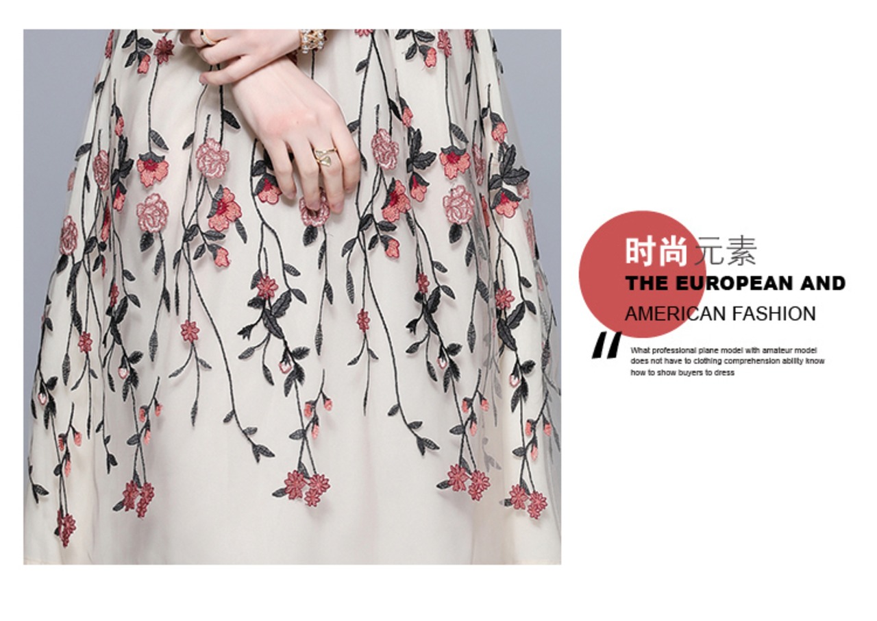 Discount Store Mall Counters Withdrawal Women's Clothes Clearance Round Neck Waist Heavy Industry Mesh Embroidery Dress 刺繍 メッシュ Oネック missry44976265255 | guttiy