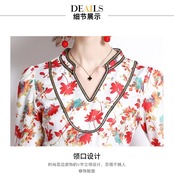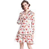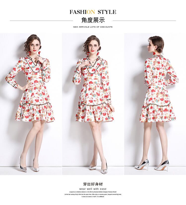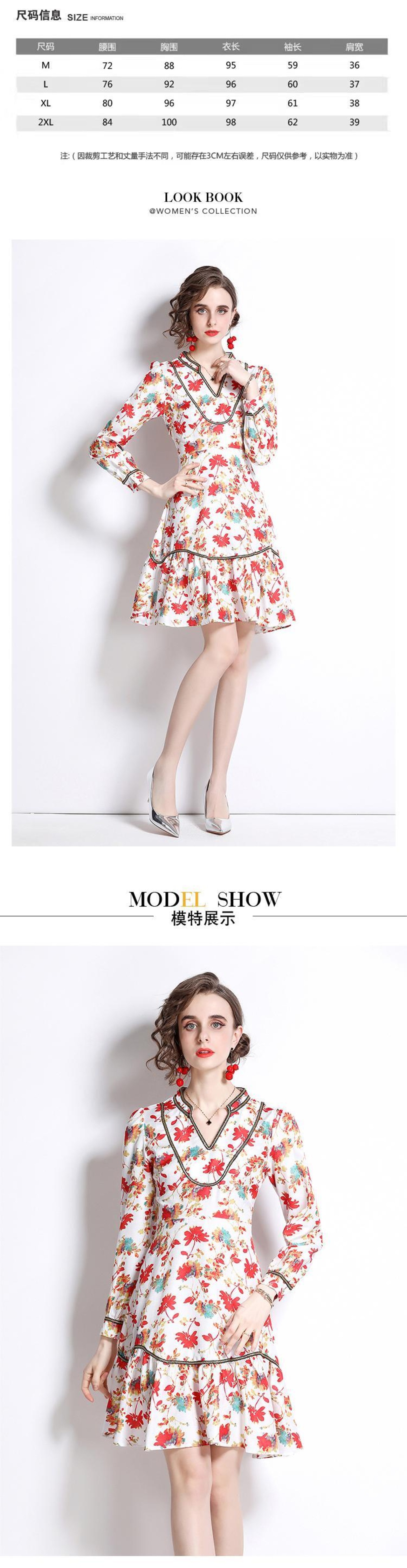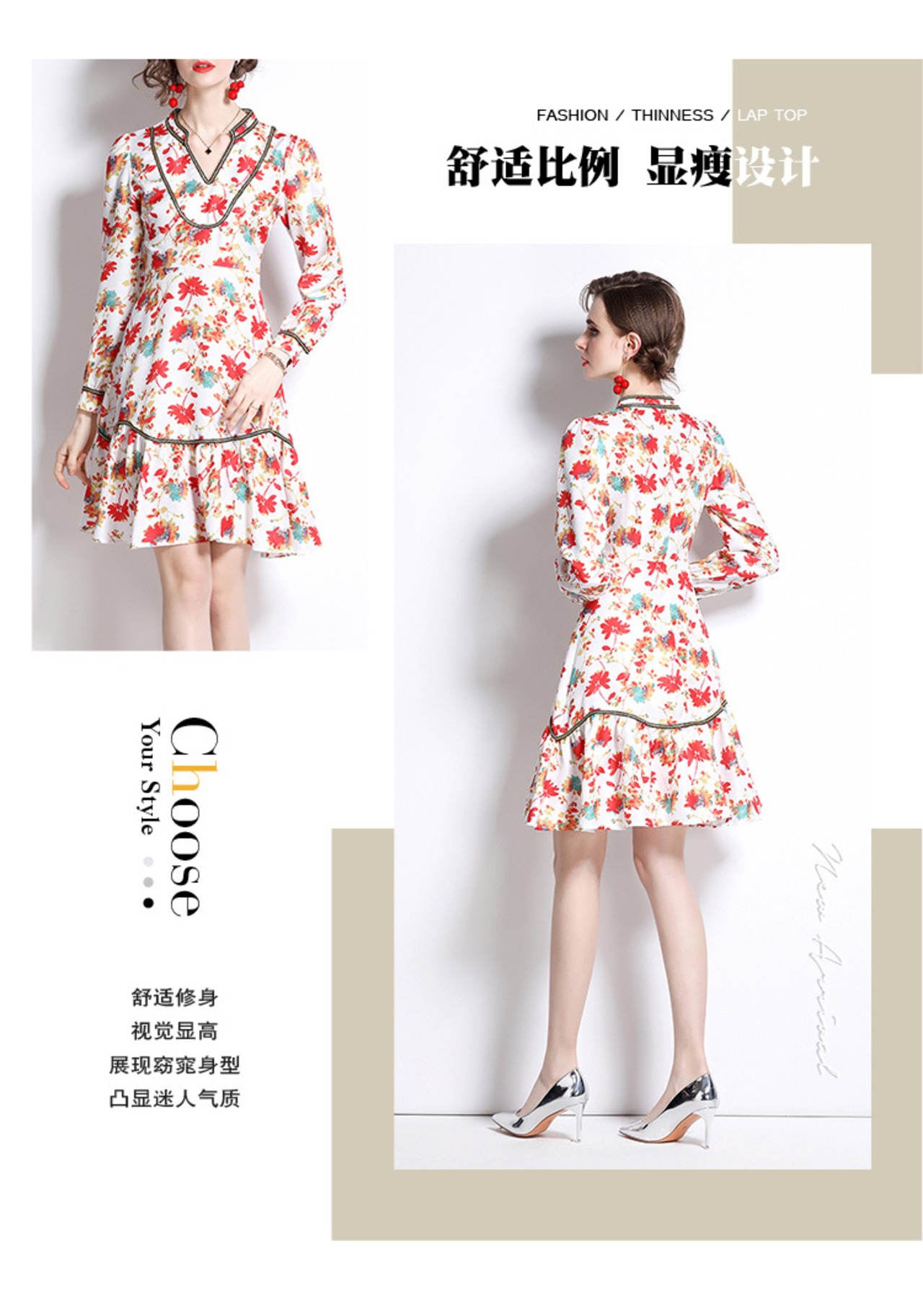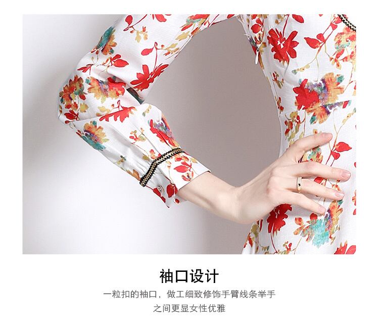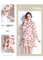 The counter shopping mall withdraws the international big-name cut label, the remaining single-tailed single-sleeve women's print V-neck waist and long-sleeved dress ロング Vネック missry10896830199 | guttiy