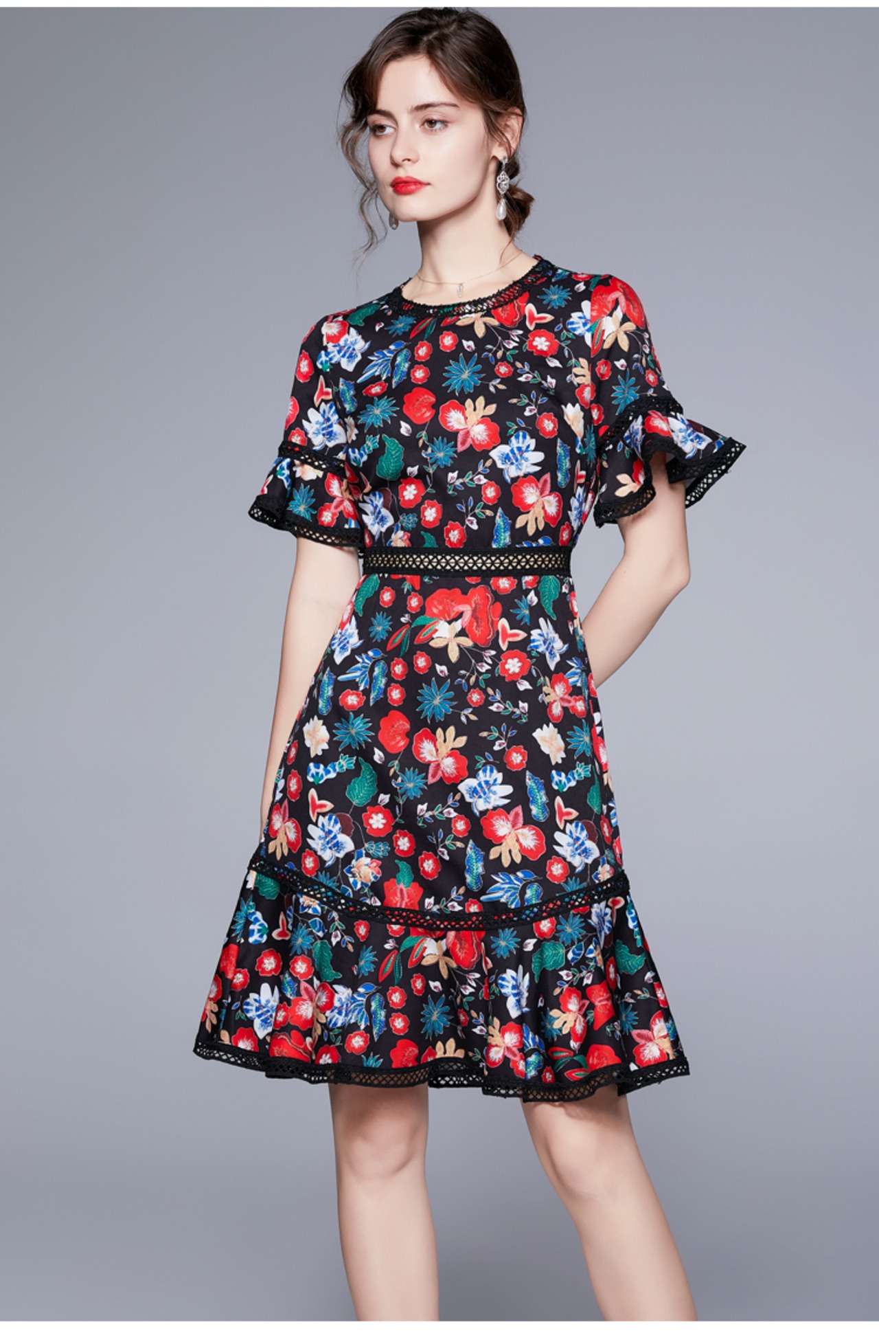 The counter mall withdrew the international big-name cut label, the remaining single-tailed single women's clothing, the women's high waist and thin temperament, and the printed fishtail skirt ハイウェスト プリント スカート missry24009273513 | guttiy