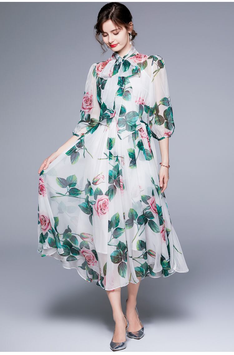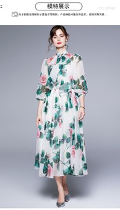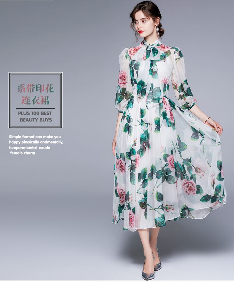 Discount Store Mall Counters Withdrawal Women's Clearance Lace-Up Printed Five-point Sleeve Waist Long Dress ロング レース プリント レースアップ missry95248612783 | guttiy