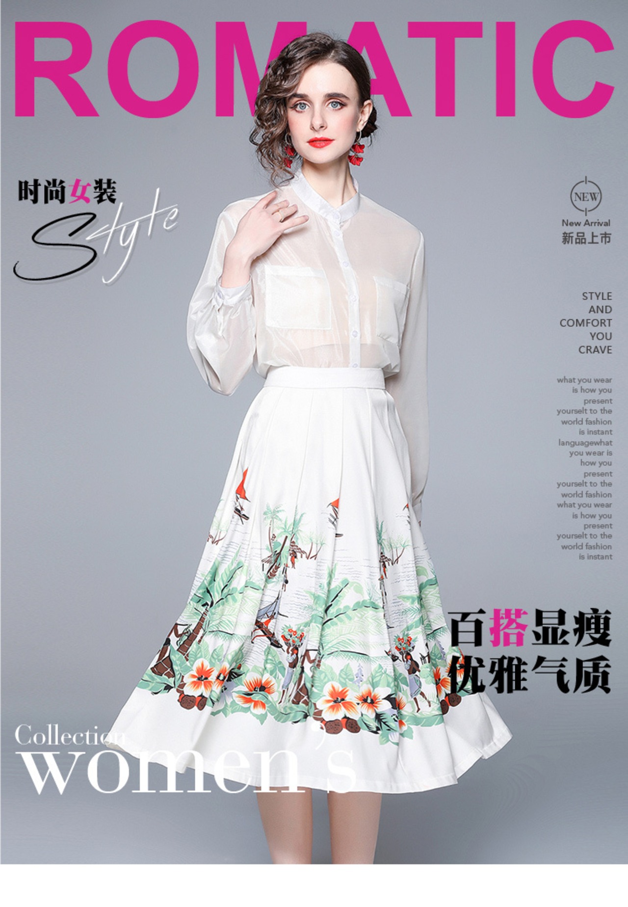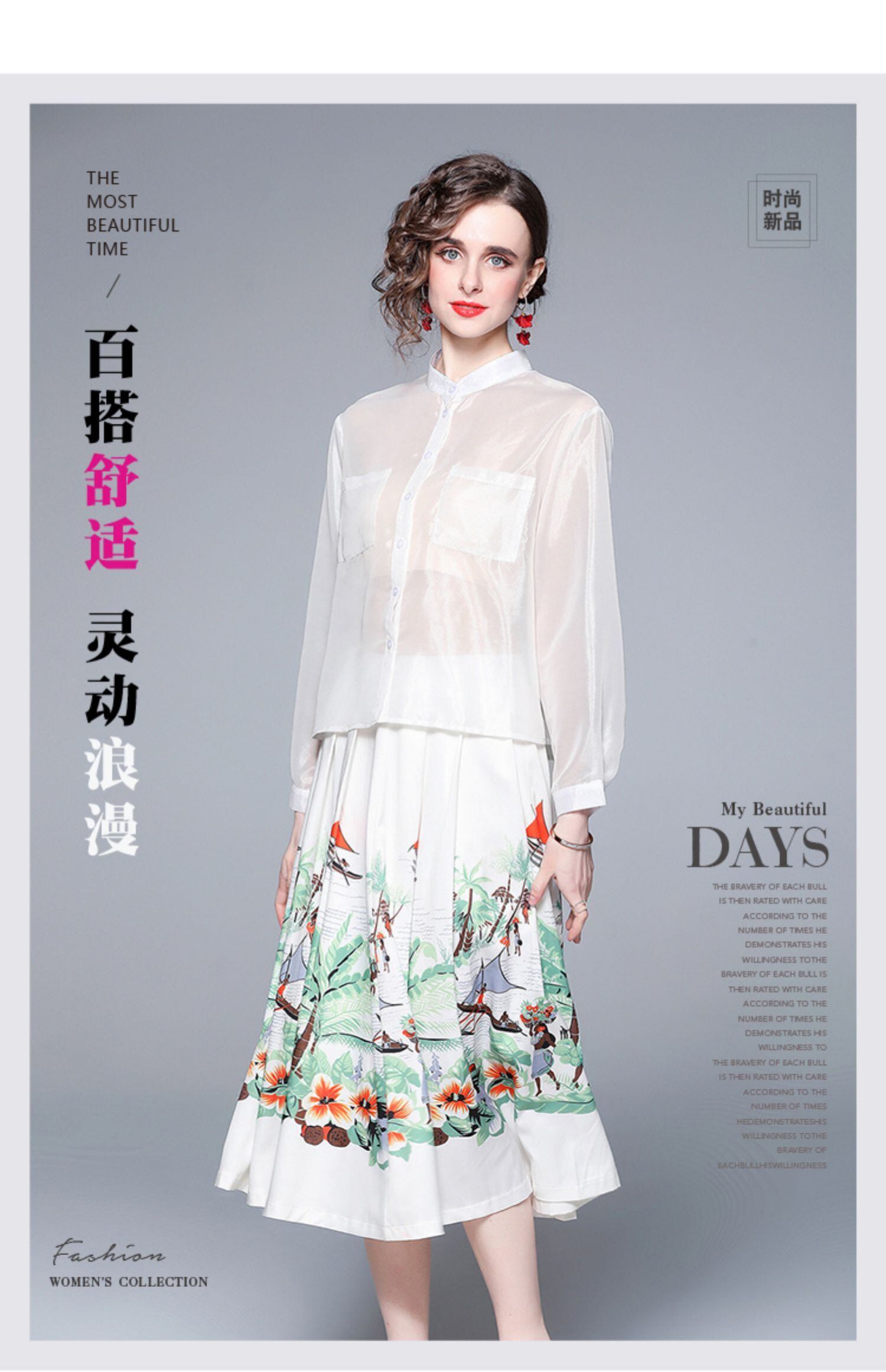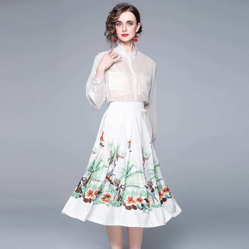 The counter mall has withdrawn the international big-name cut label, the remaining one-tailed one-tailed women's clothing, the printed skirt, the white shirt, and the two-piece set ホワイト プリント スカート missry79596084848 | guttiy