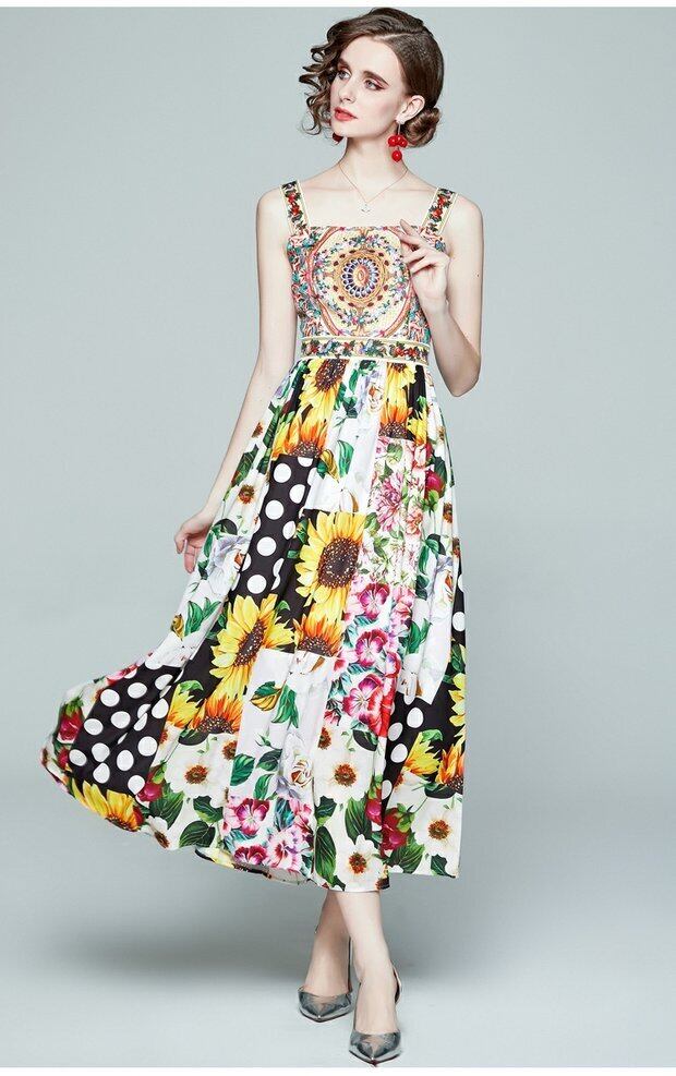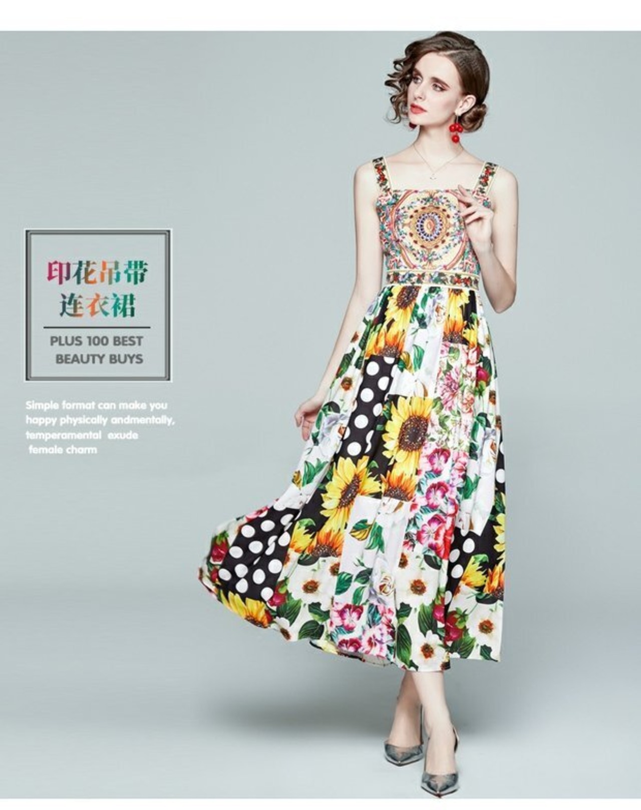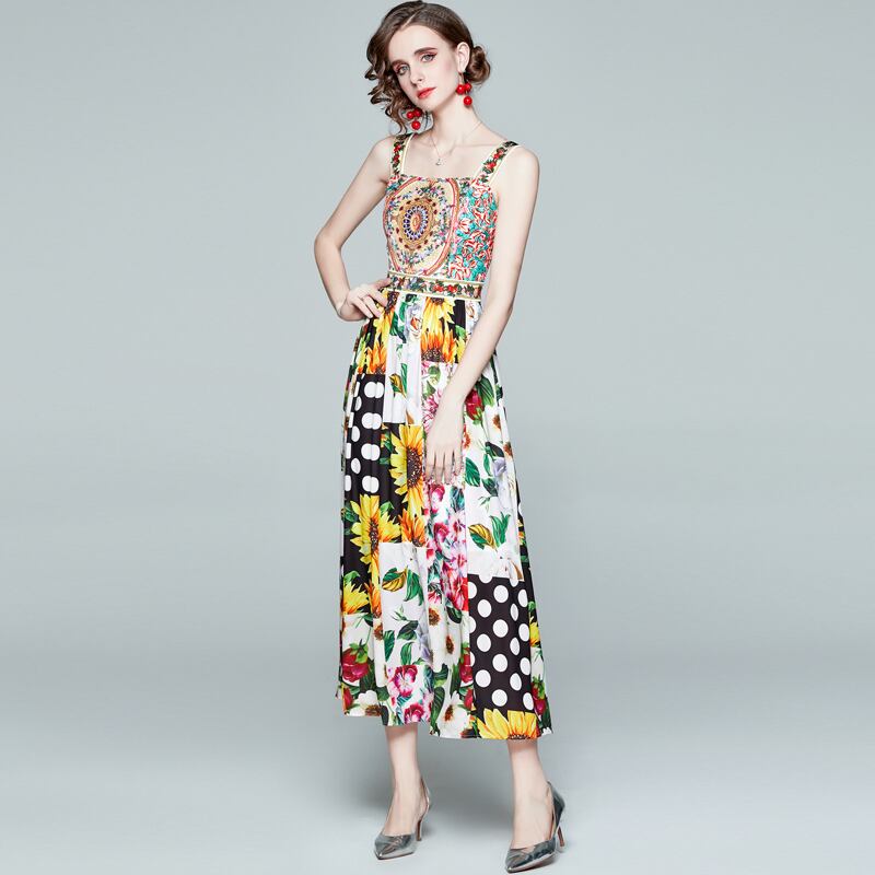 Discount store mall counters withdrawn women's clothing tail stock clearance square collar stitching slimming long skirt printed dress ロング プリント スカート スクウェア ステッチ missry85285181731 | guttiy