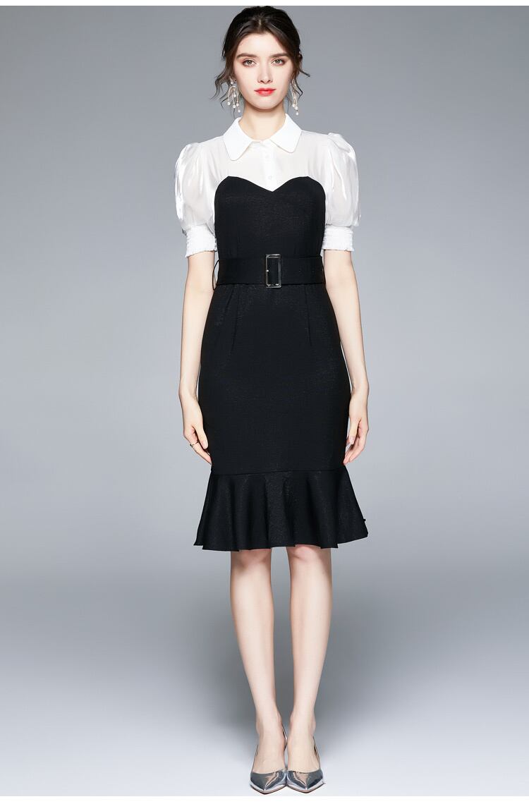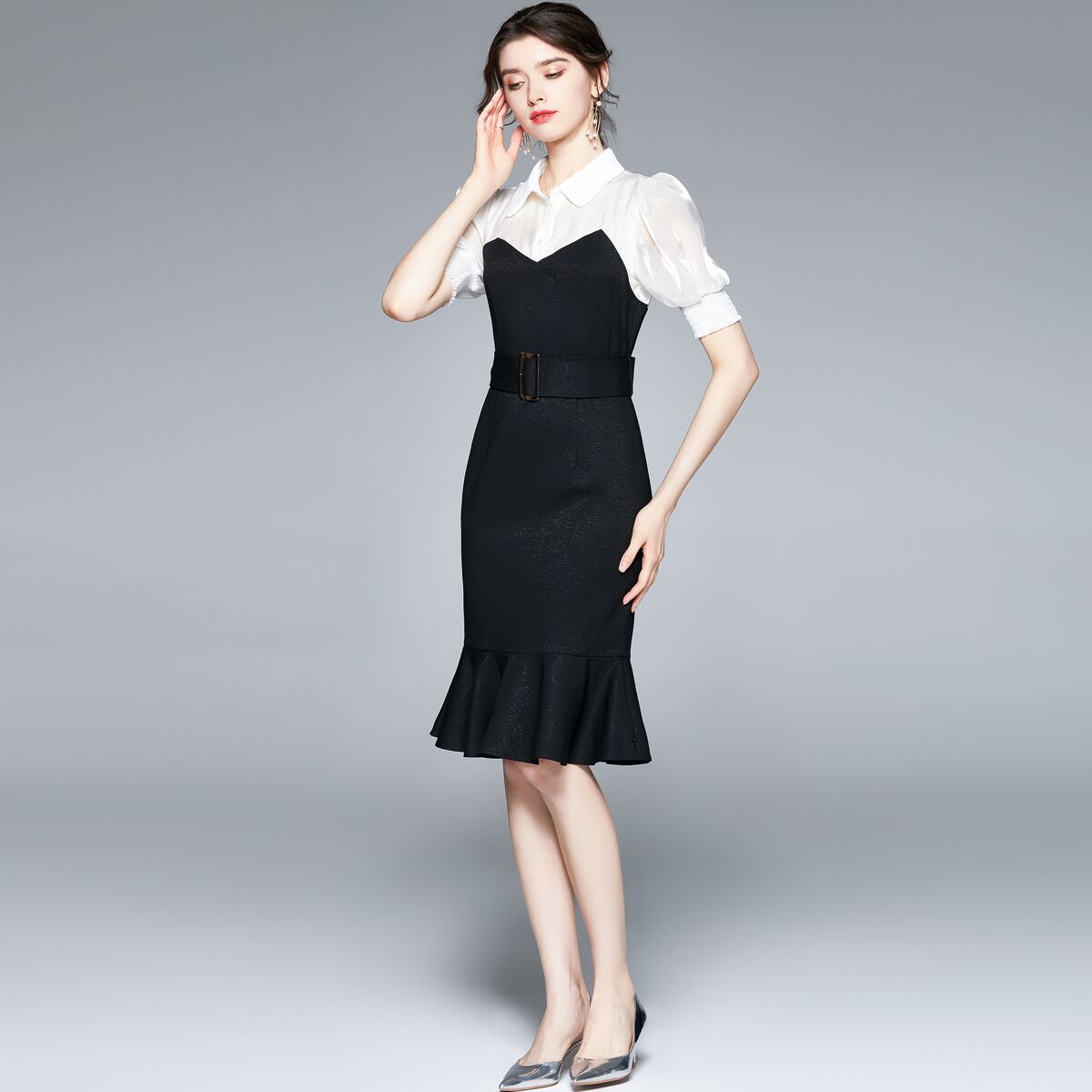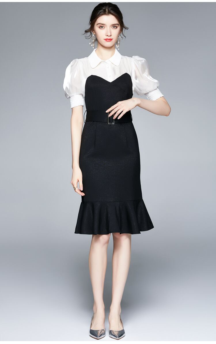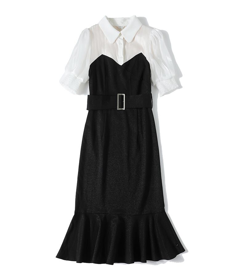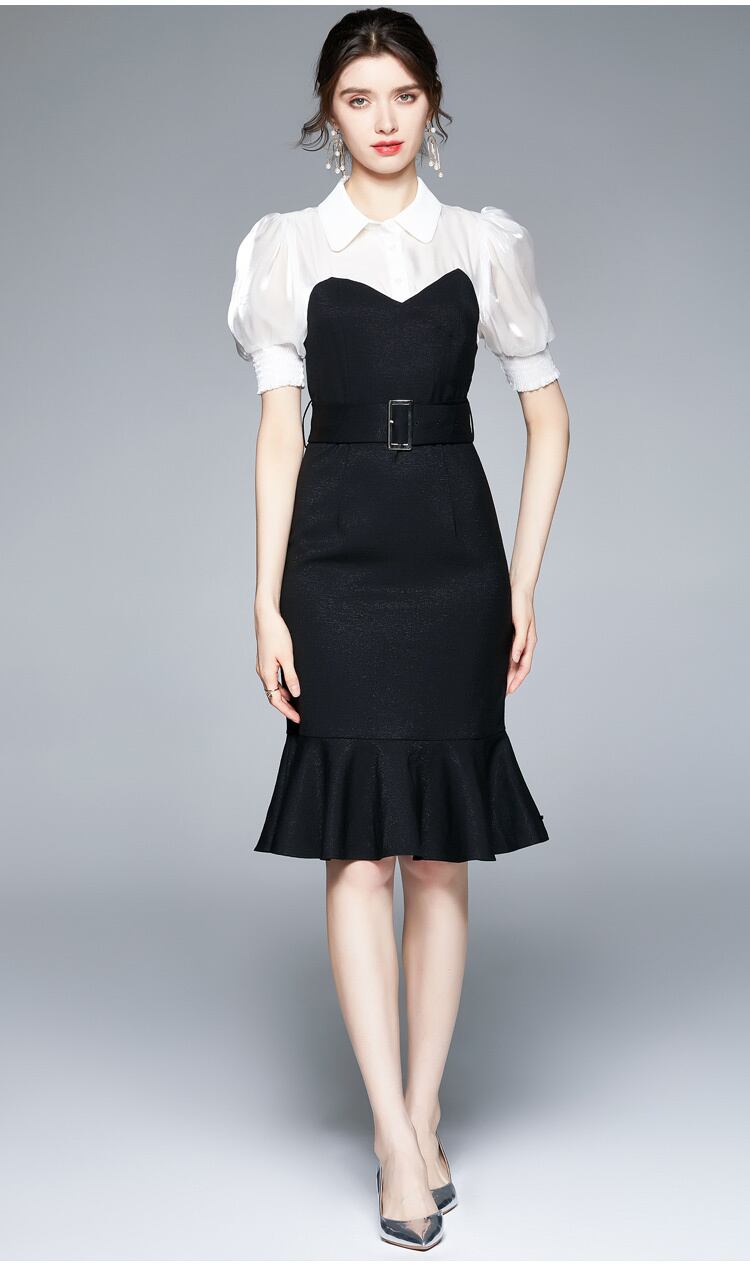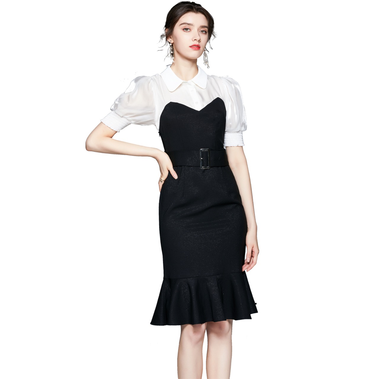 Discount store mall counters withdrawn women's clothing tail goods clearance stitching slim fit lotus leaf niche dress スリム ステッチ missry39872873177 | guttiy