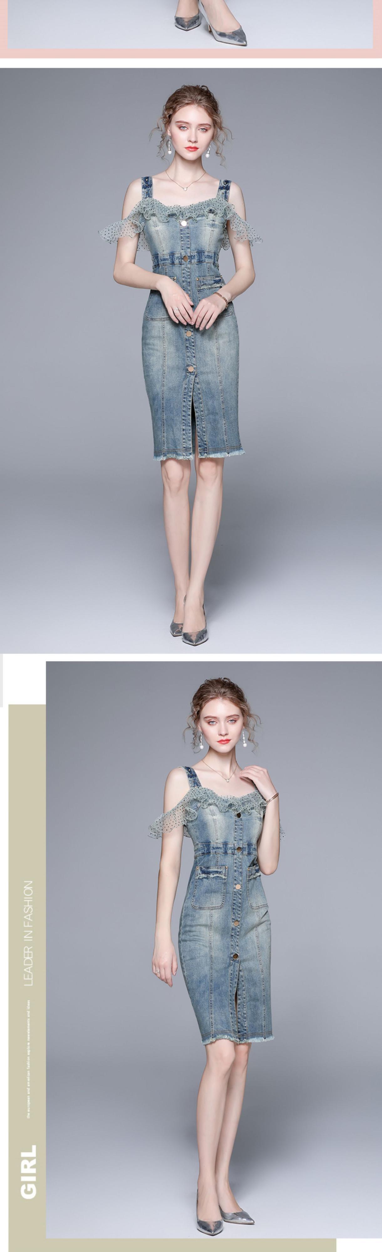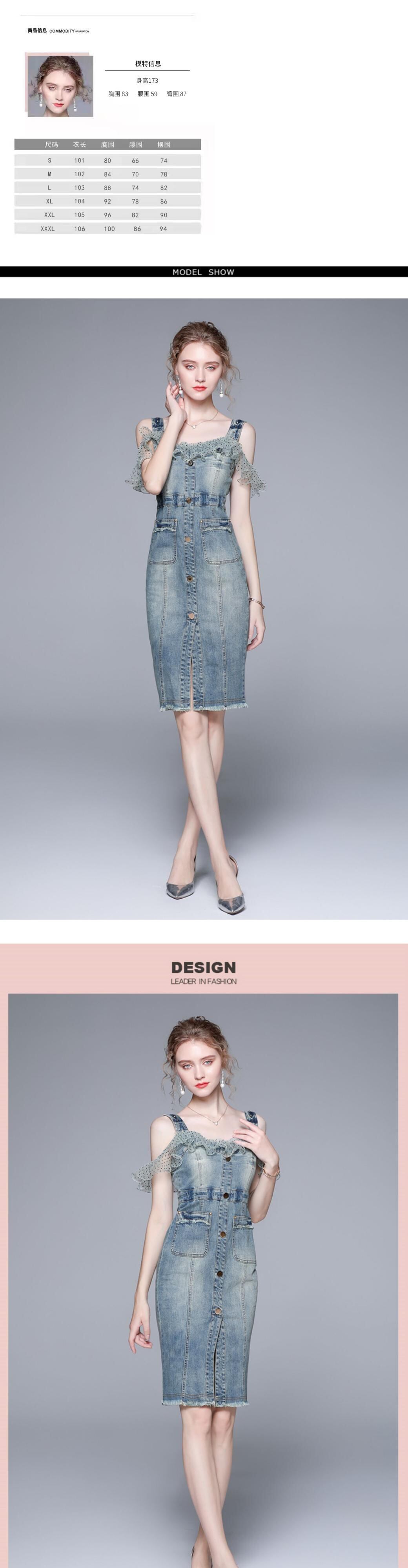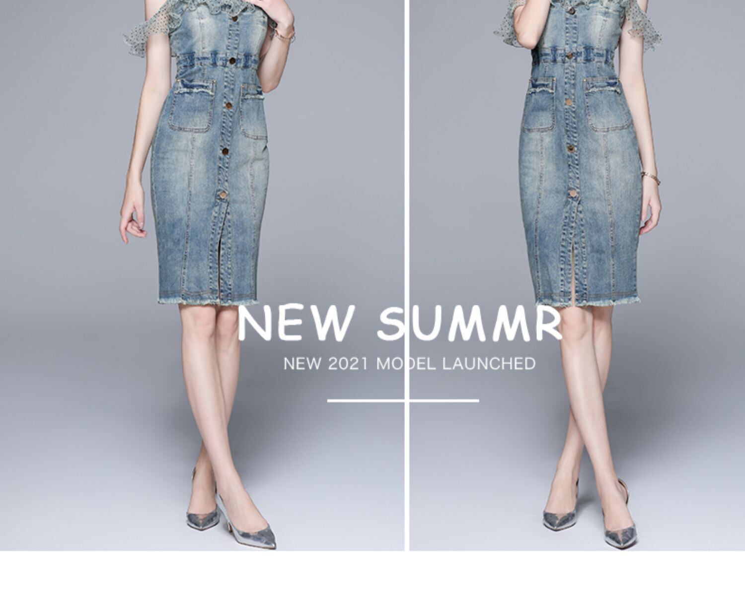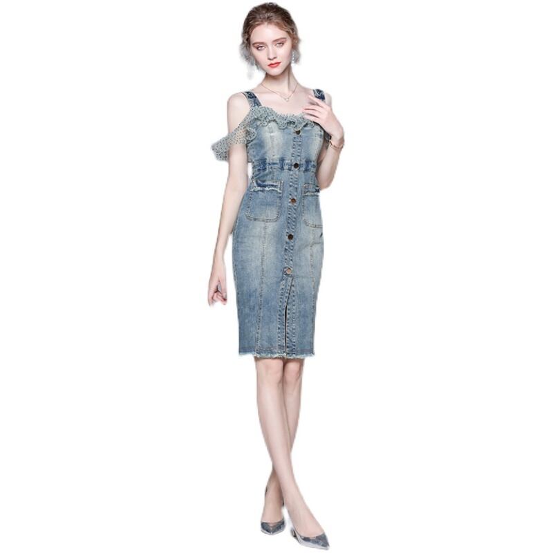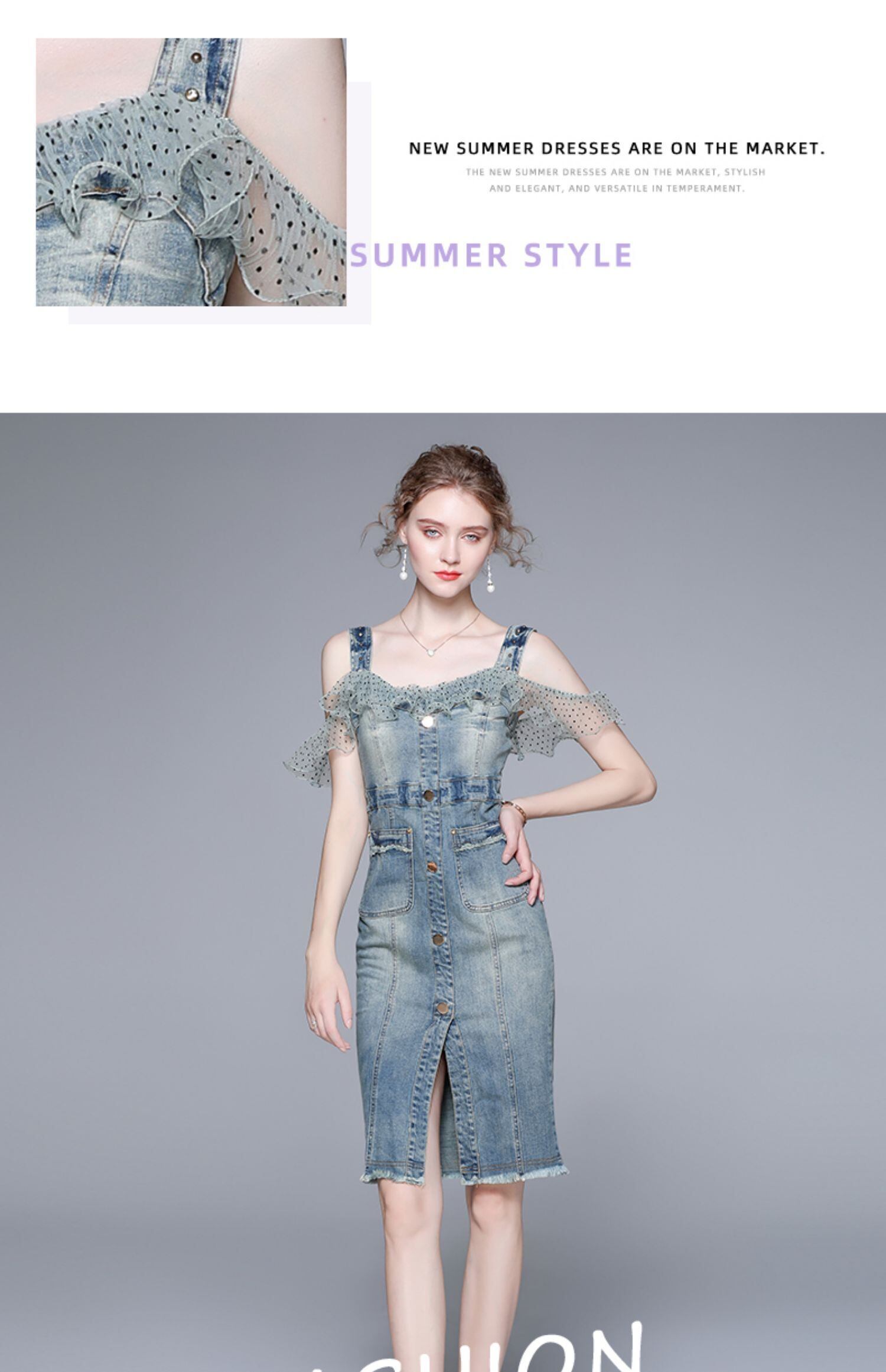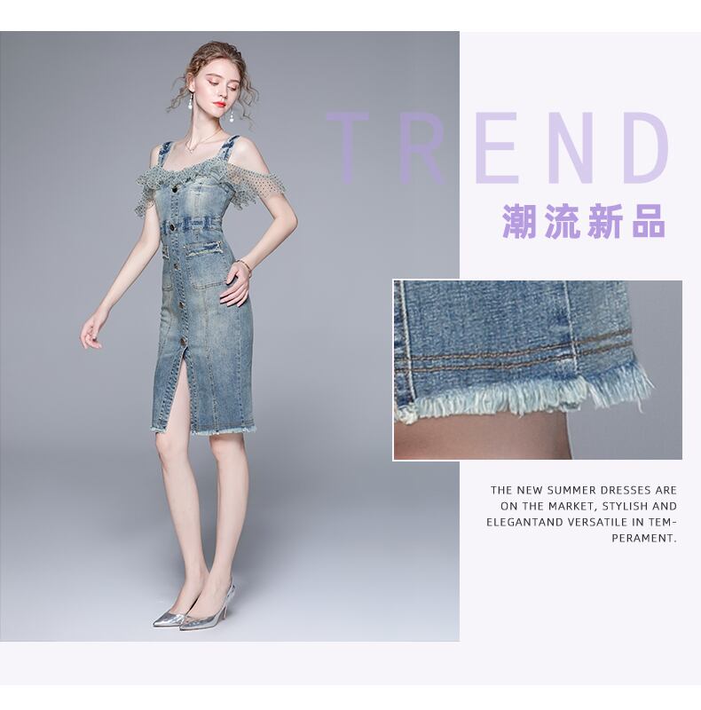 Discount store mall counter withdrawal women's clothing tail goods clearance mesh ruffled stitching sling denim dress women メッシュ ステッチ missry70047311062 | guttiy