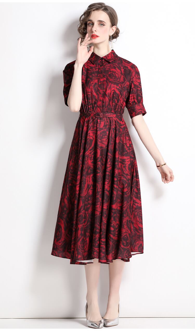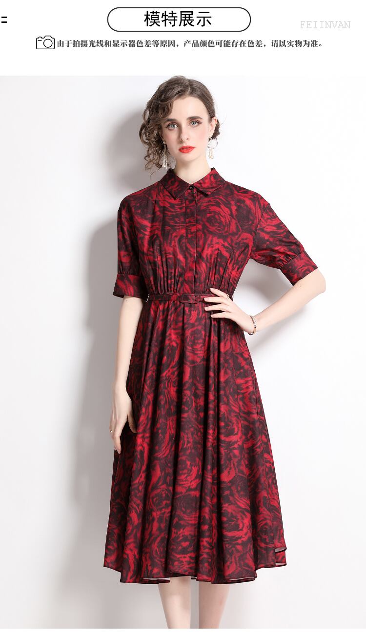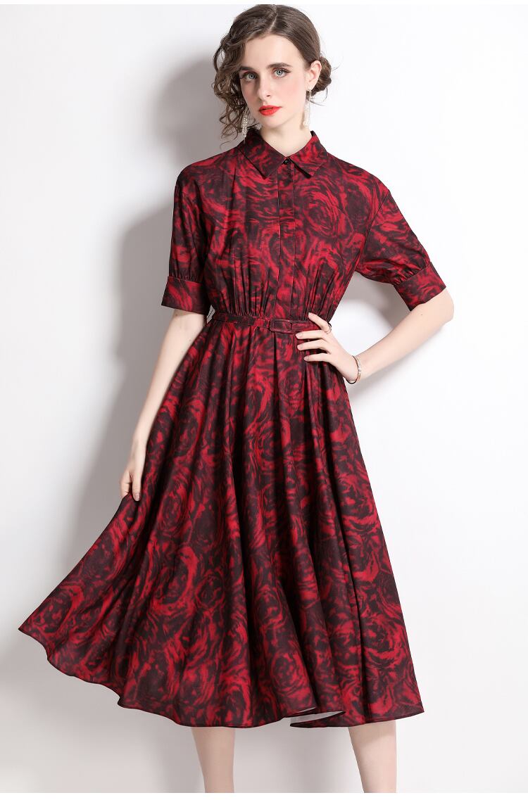 Discount Store Mall Counters Withdrawal Women's Clearance Long Skirt Waist Lace Lapel Button Print Dress ロング レース スカート missry67305406638 | guttiy