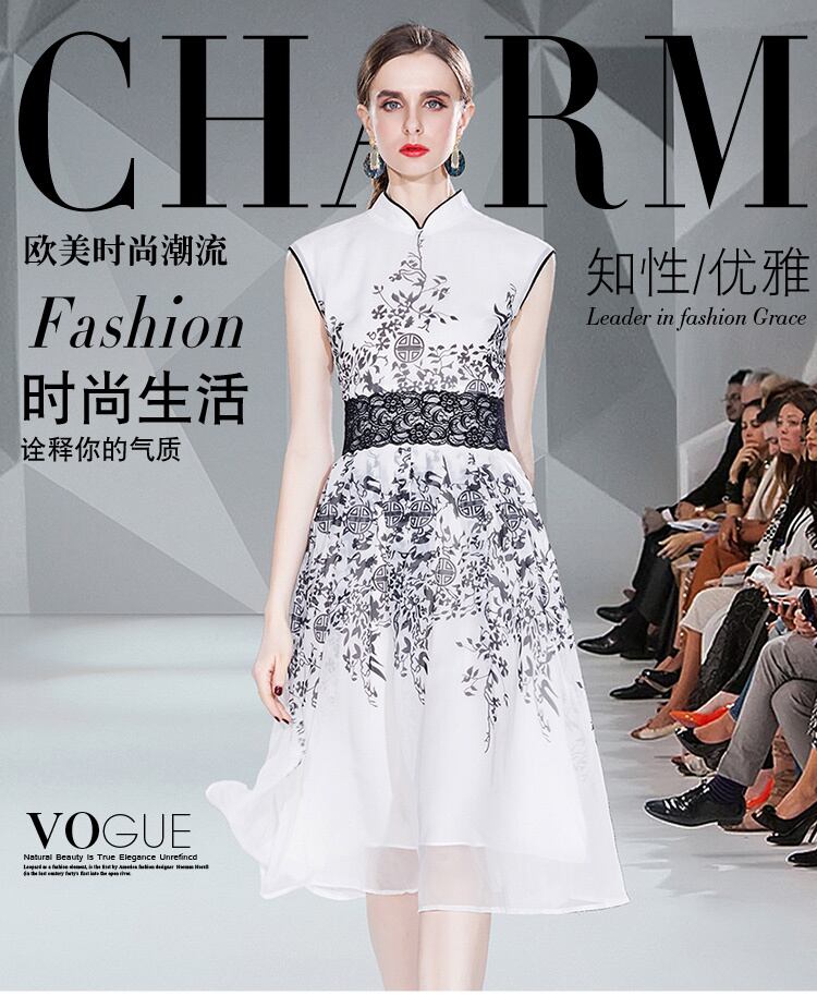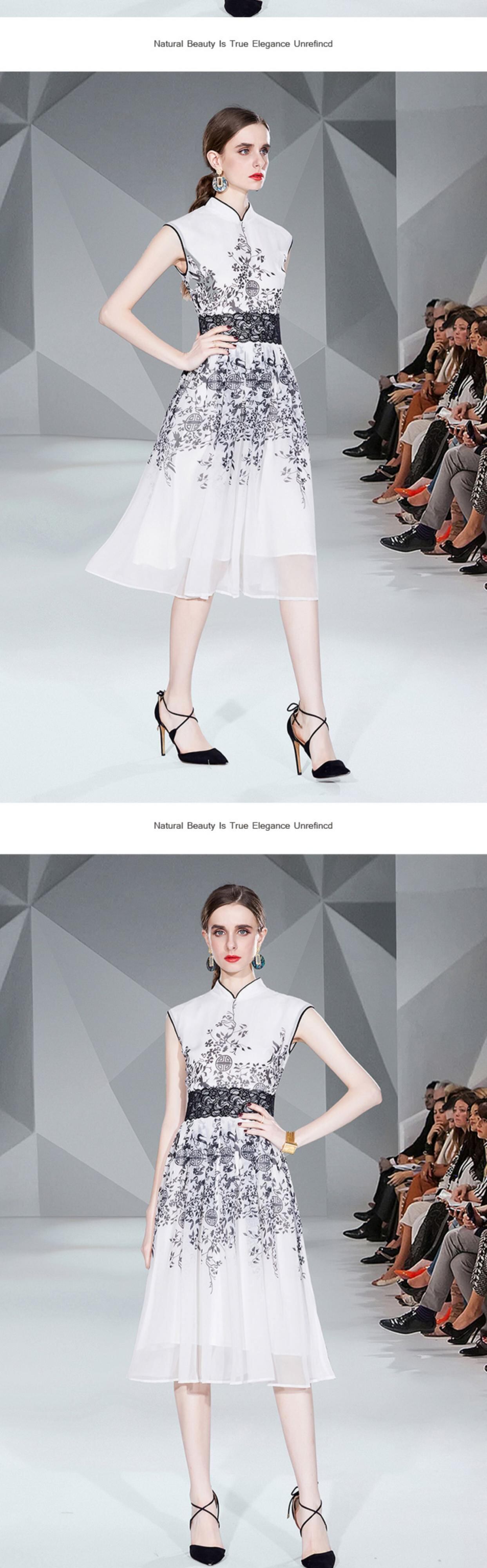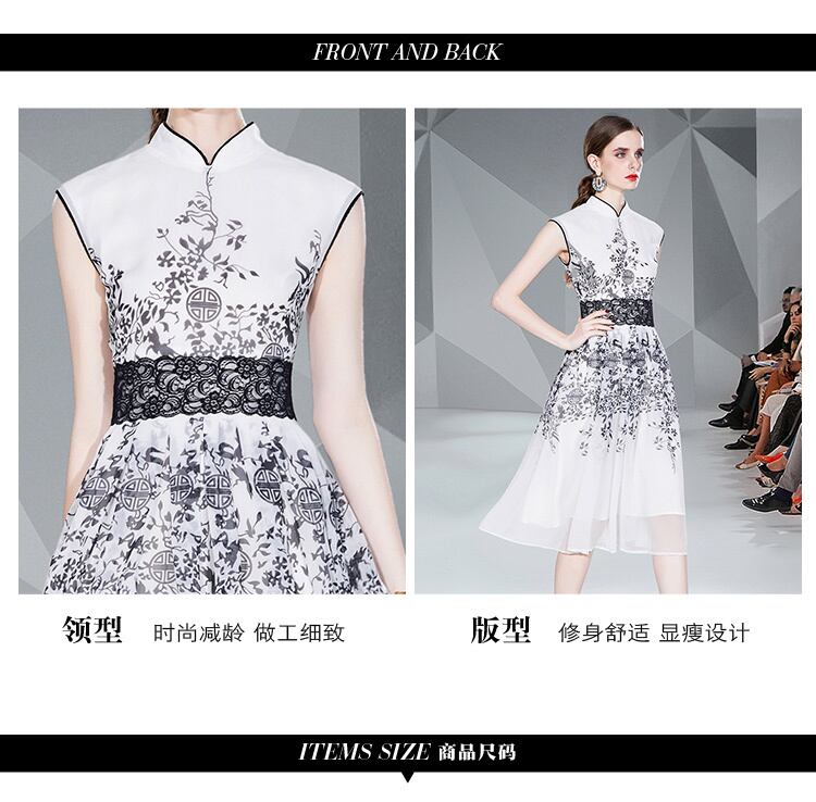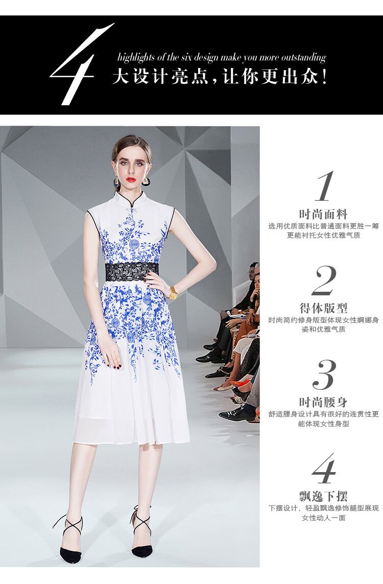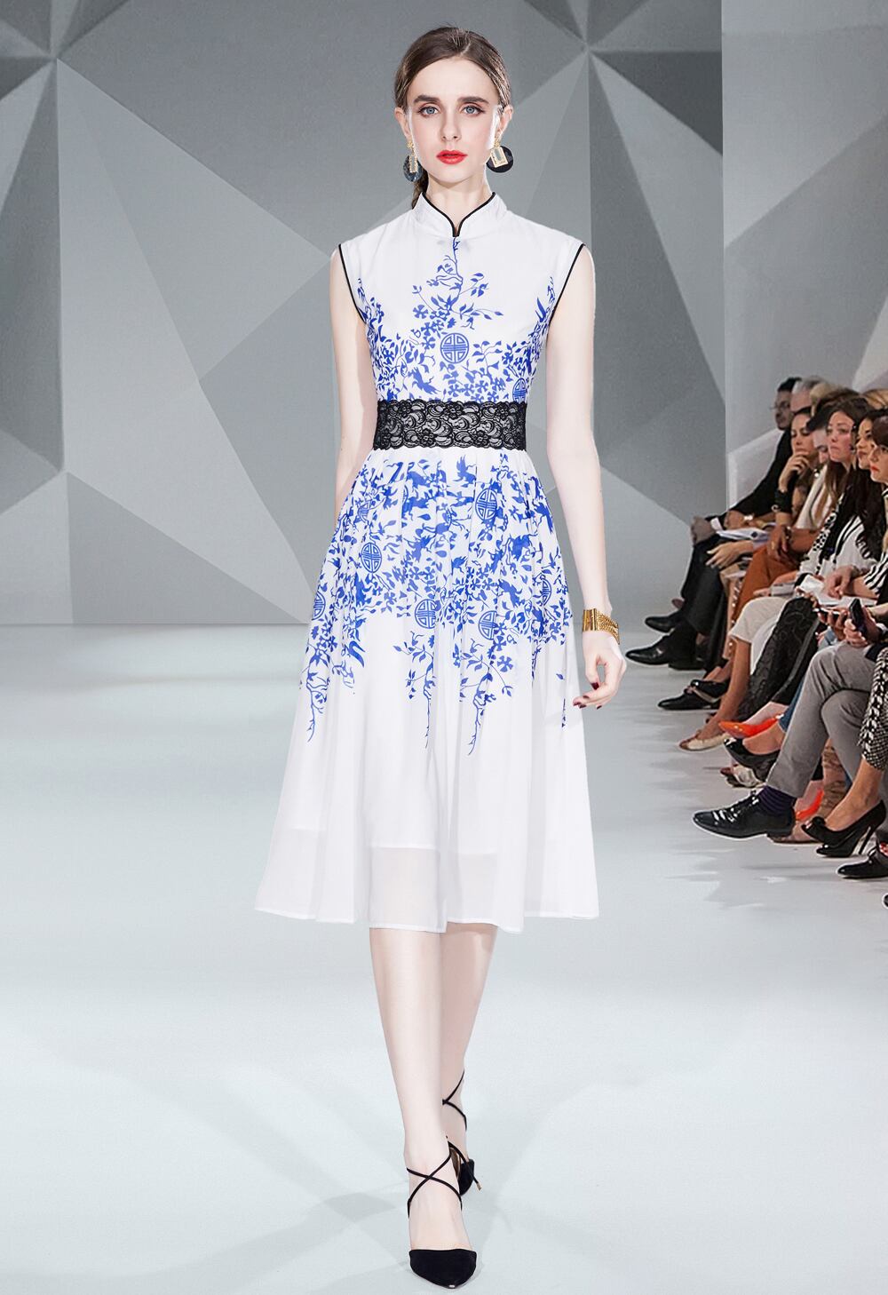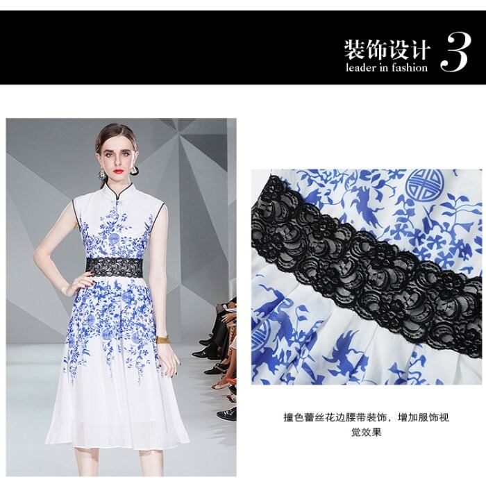 Discount Store Mall Counters Withdrawal Women's Final Clearance Cheongsam Blue and White Porcelain Vest Printed Dress Long Skirt ロング ホワイト ブルー プリント スカート missry1018979937 | guttiy