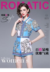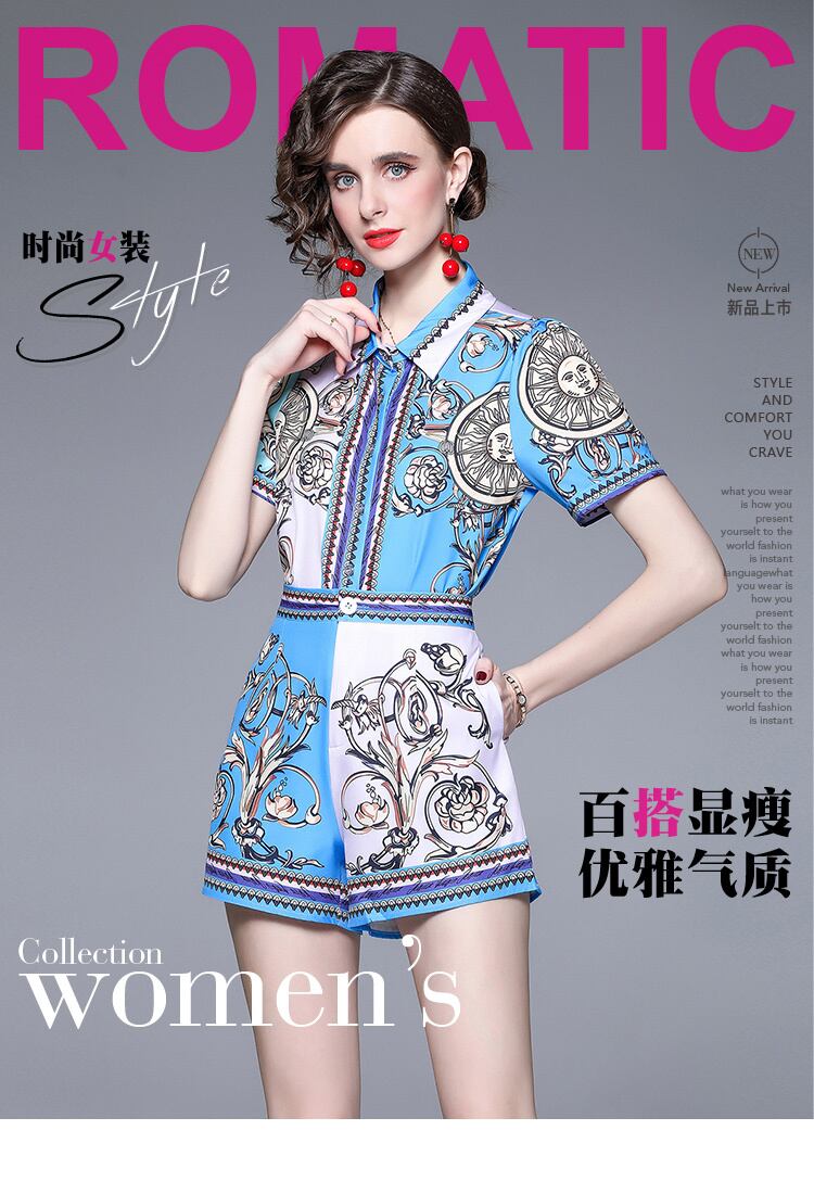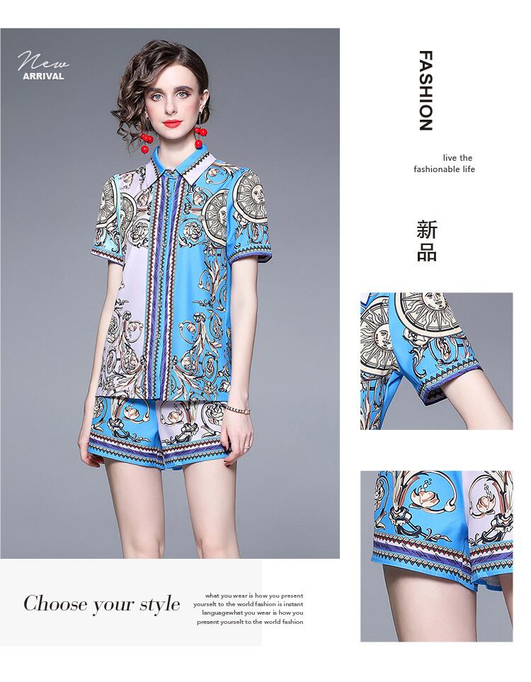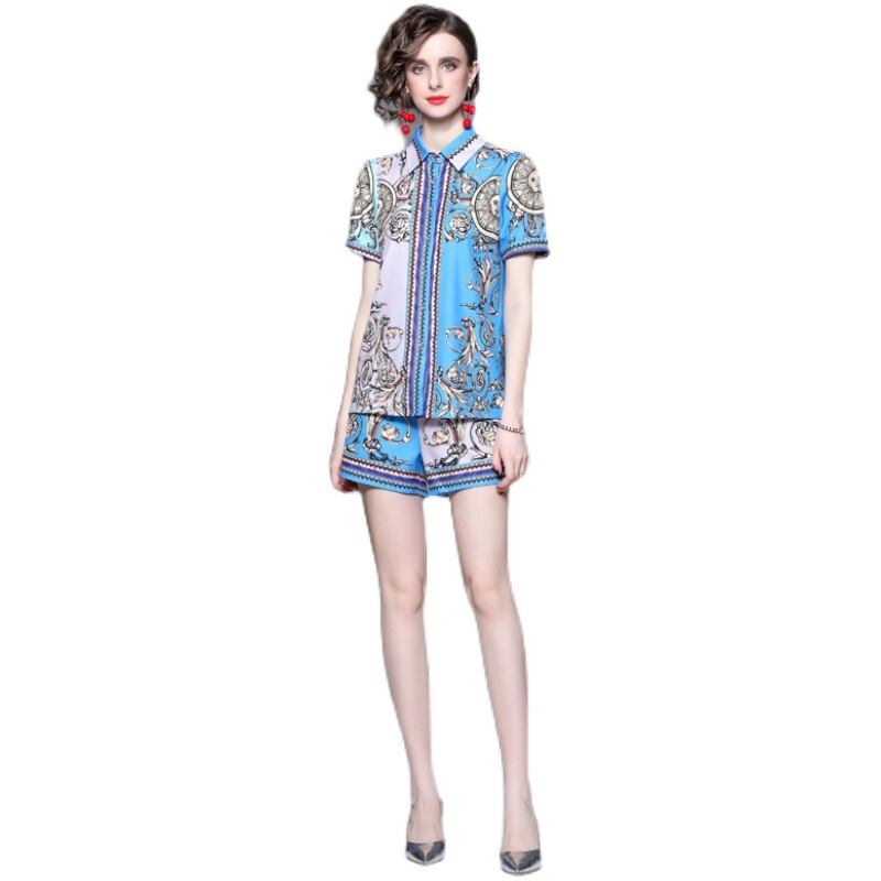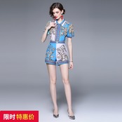 Discount store mall counter withdrawal women's clothing clearance print shirt wide-leg high-waisted shorts Western style two pieces ショーツ ブルマー missry75118470131 | guttiy