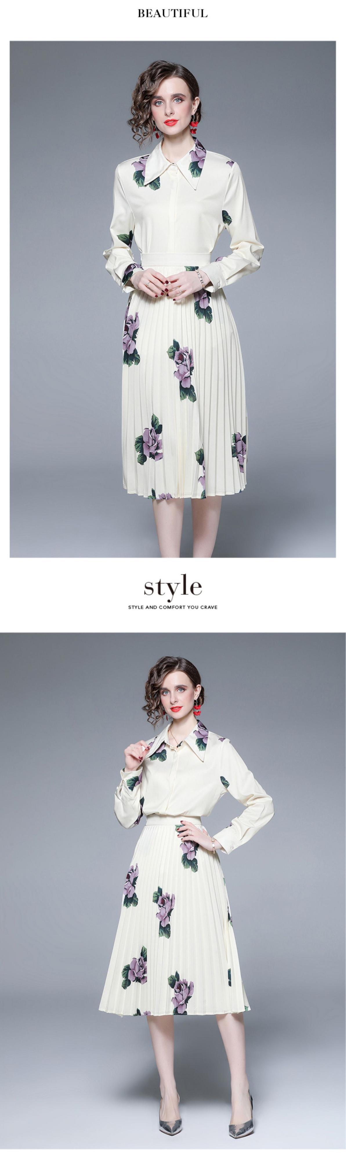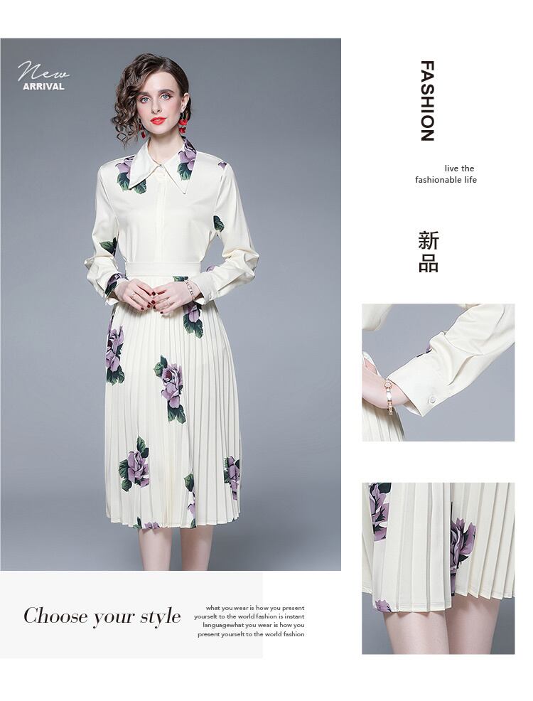 The counter mall withdrew the international big-name cut standard single-tail single-tail shirt + high-waist pleated skirt printing suit プリーツ スカート missry12962169443 | guttiy