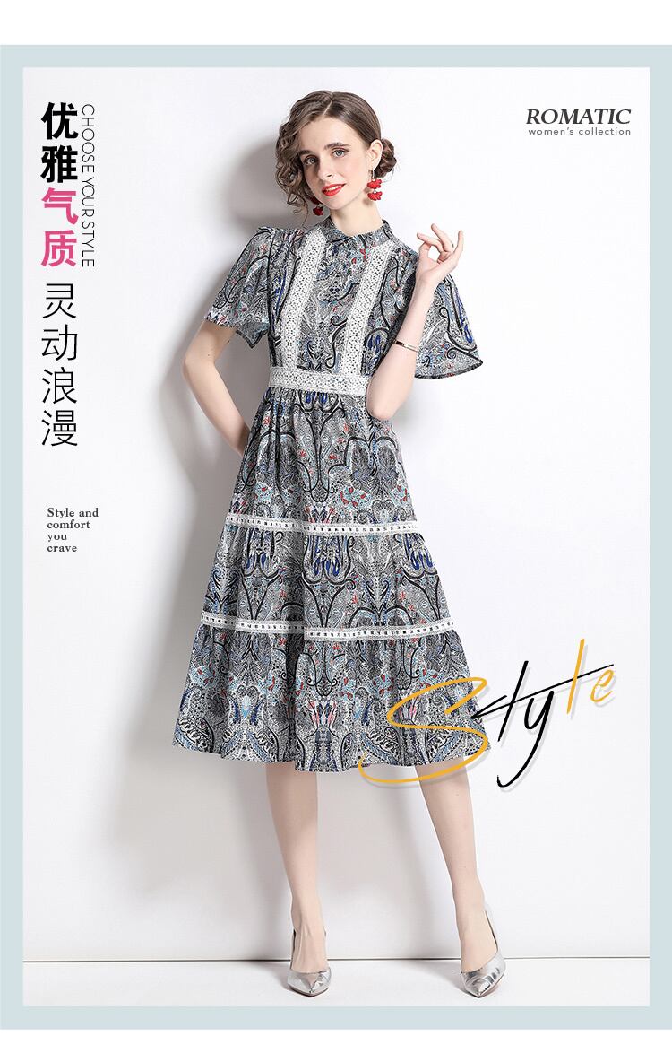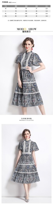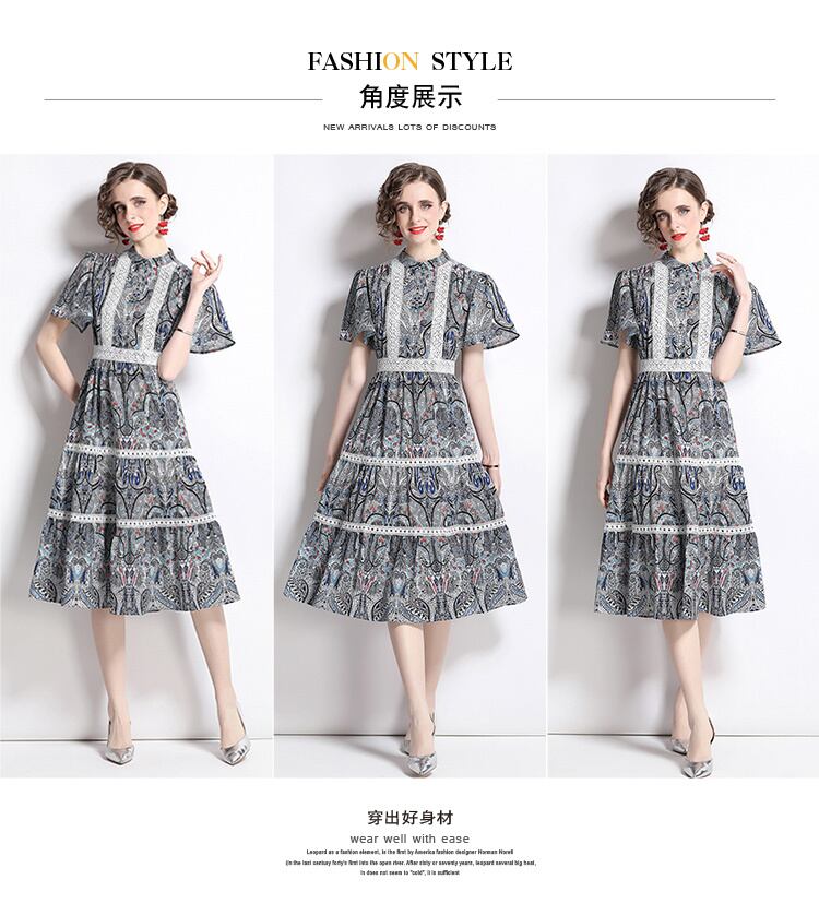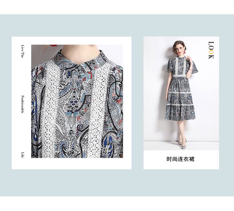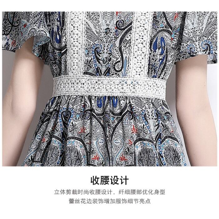 The counter shopping mall withdraws the international big-name cut label, the remaining one-tail, one-tailed, thin, printed and stitched lace short-sleeved dress レース プリント ステッチ missry20504677228 | guttiy