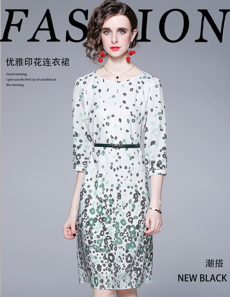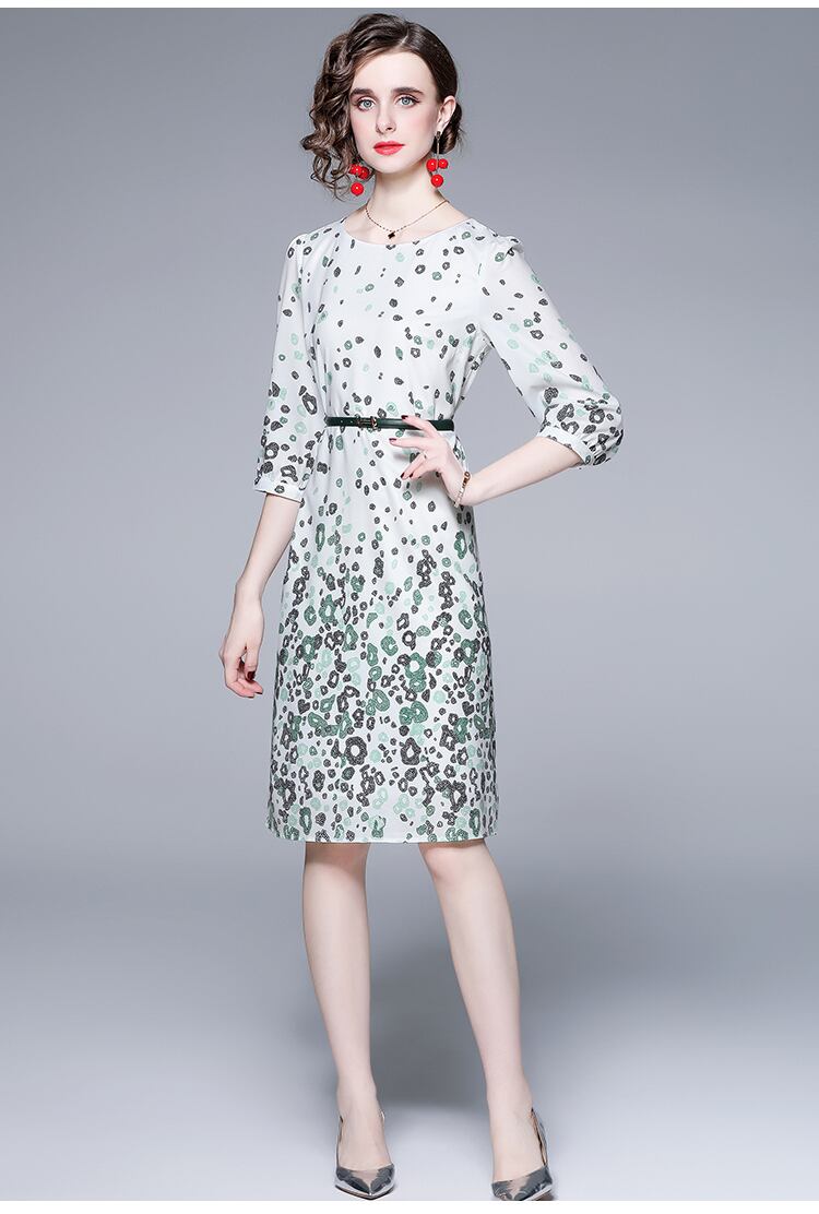 The counter mall withdrew the international big-name cut label, the remaining single-tailed single-medium-length round-neck printed green floral skirt プリント 花柄 スカート グリーン missry80695977868 | guttiy