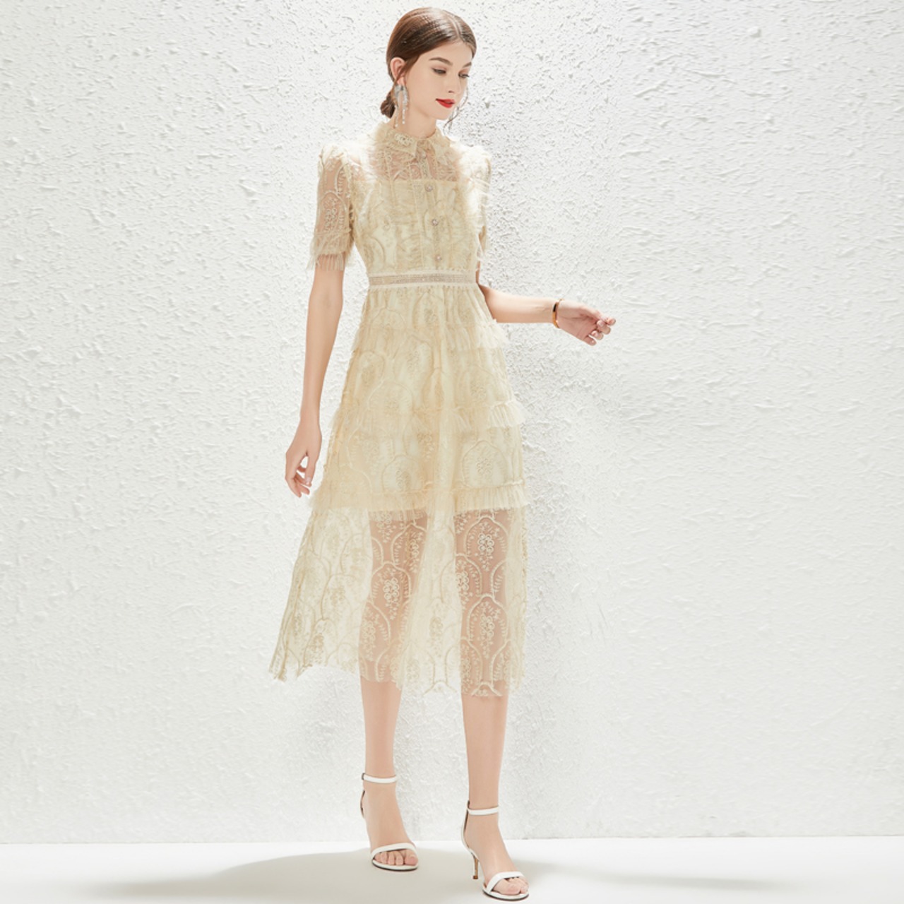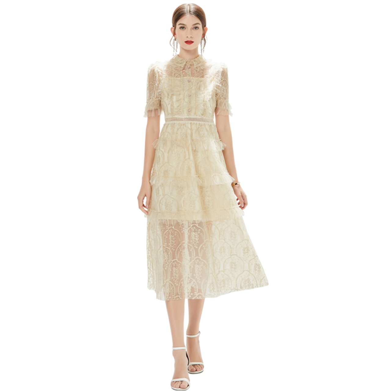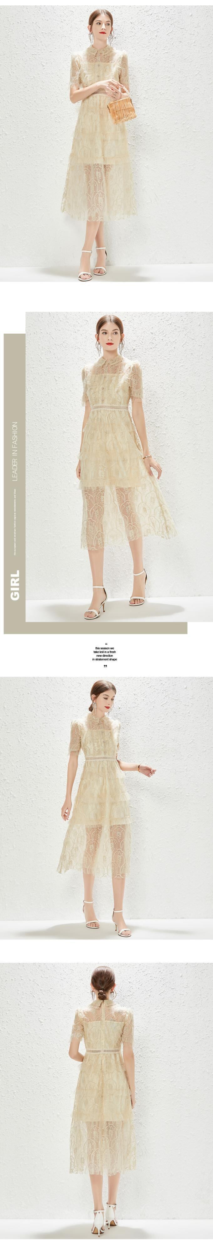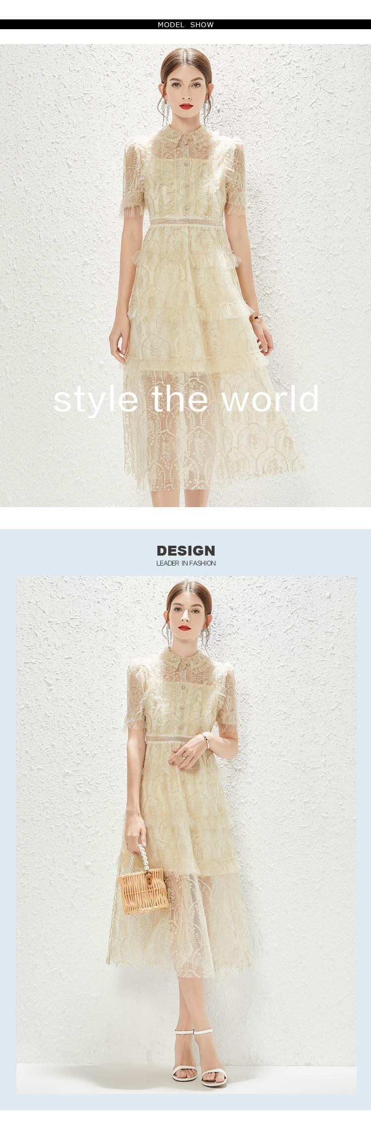 Discount store mall counters withdrawn women's clothing tail goods clearance heavy industry embroidery lace lapel waist mesh dress レース 刺繍 メッシュ missry87858813866 | guttiy