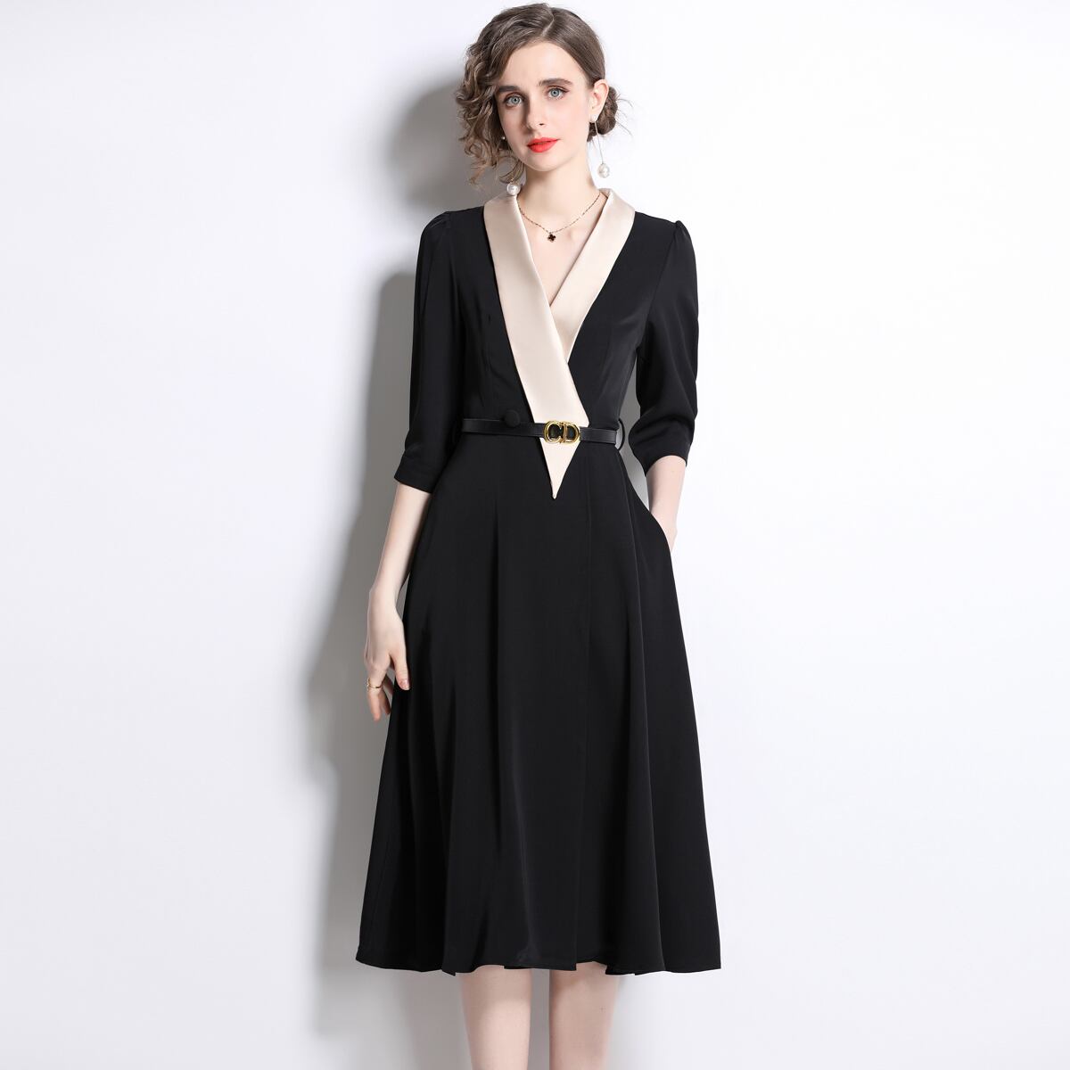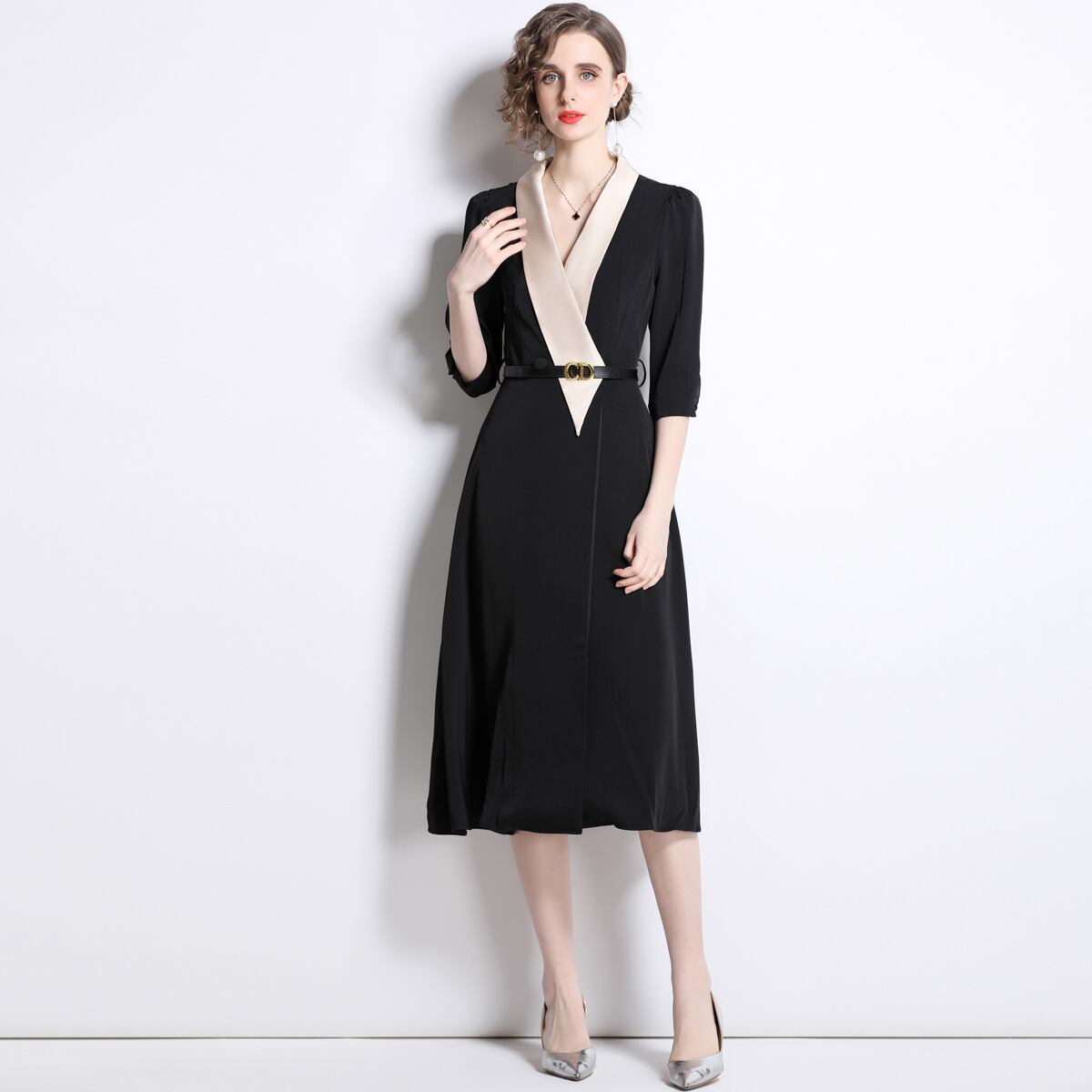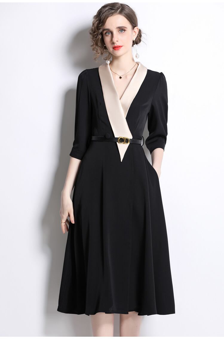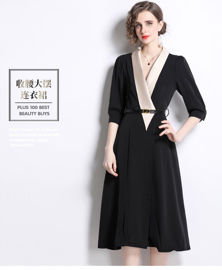 Discount store mall counters withdrawn women's clothing tail goods clearance Hepburn style temperament green fruit collar waist and swing dress グリーン missry38992061261 | guttiy