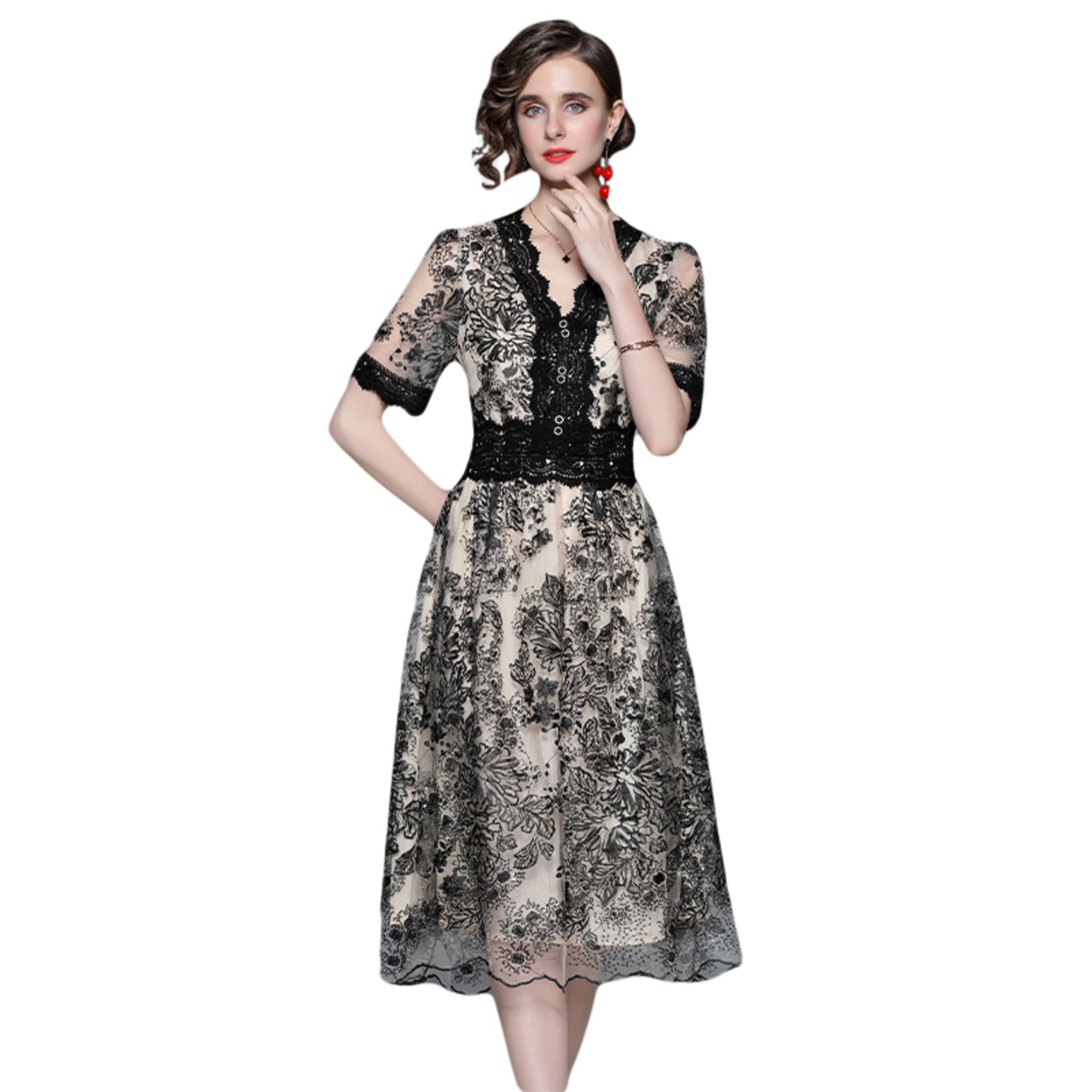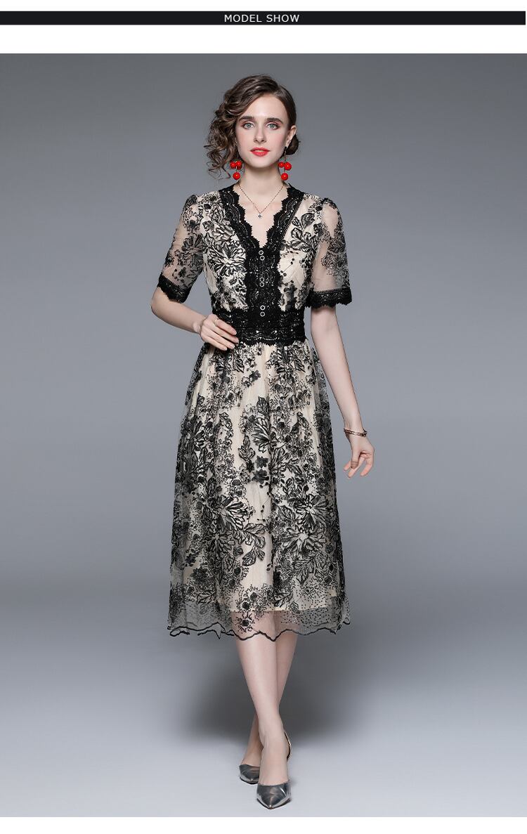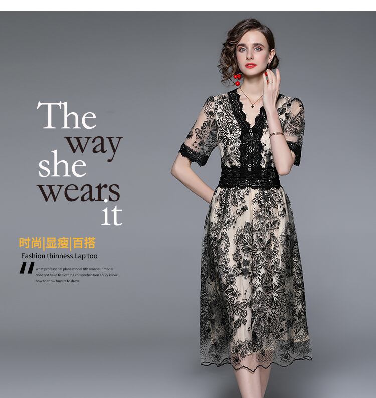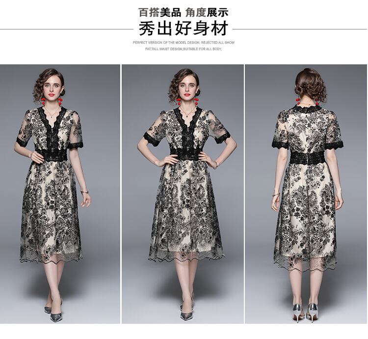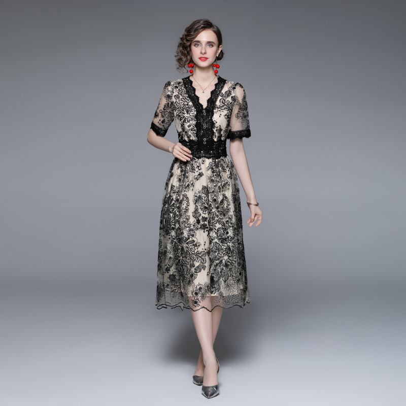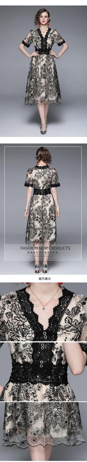 Discount store mall counters withdrawn women's clothing clearance embroidery dress waist slim temperament dress 刺繍 スリム missry70836772715 | guttiy
