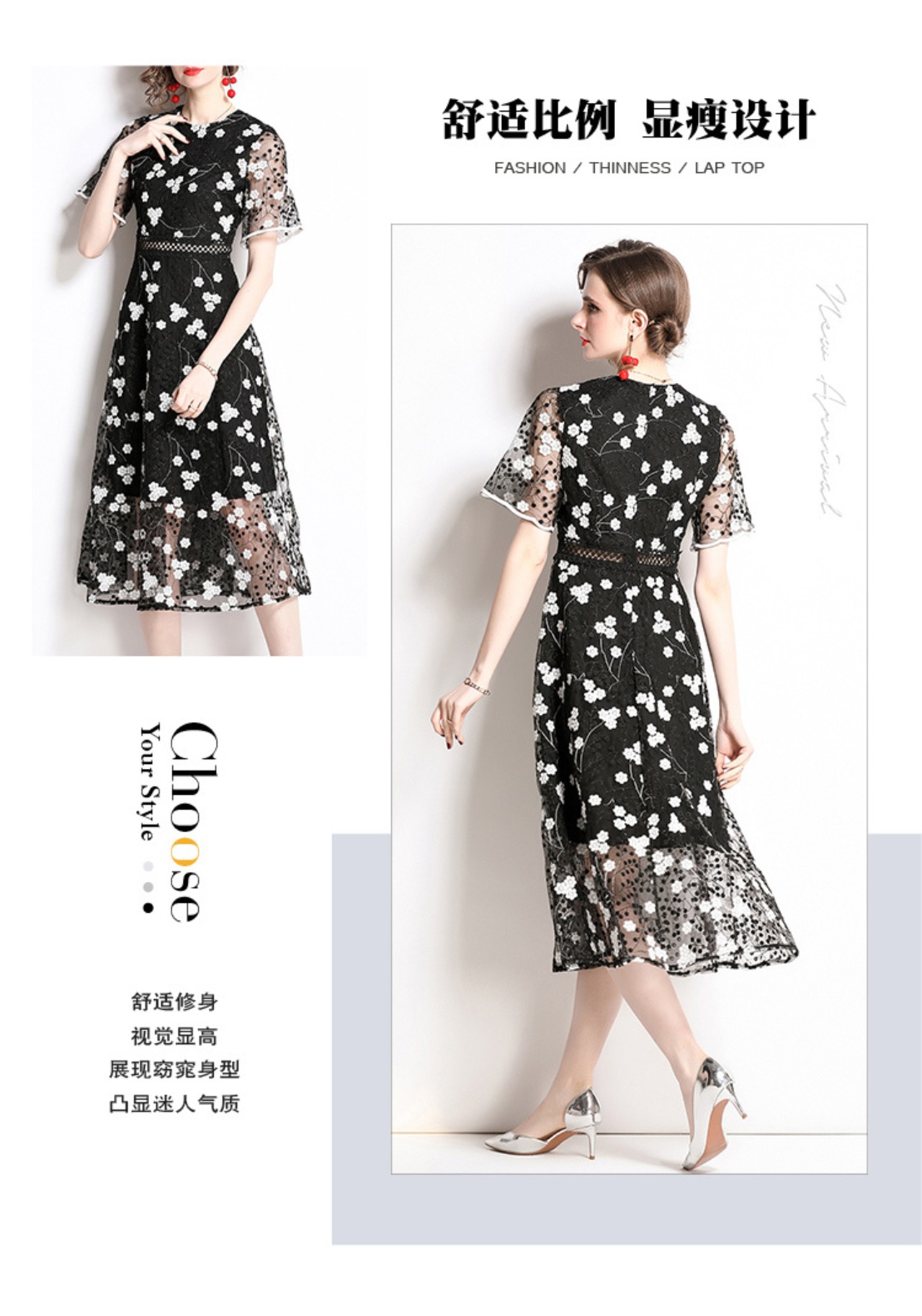 Discount store mall counters withdrawn women's clothing tail goods clearance embroidery mesh dress slim a-line lady's skirt 刺繍 メッシュ スカート Aライン スリム missry25419786841 | guttiy