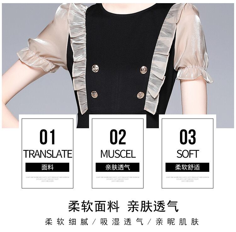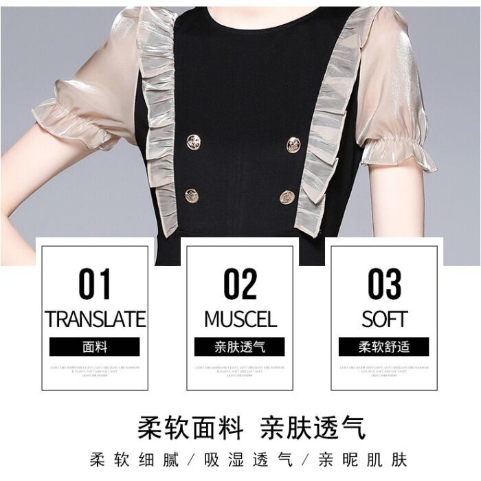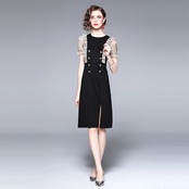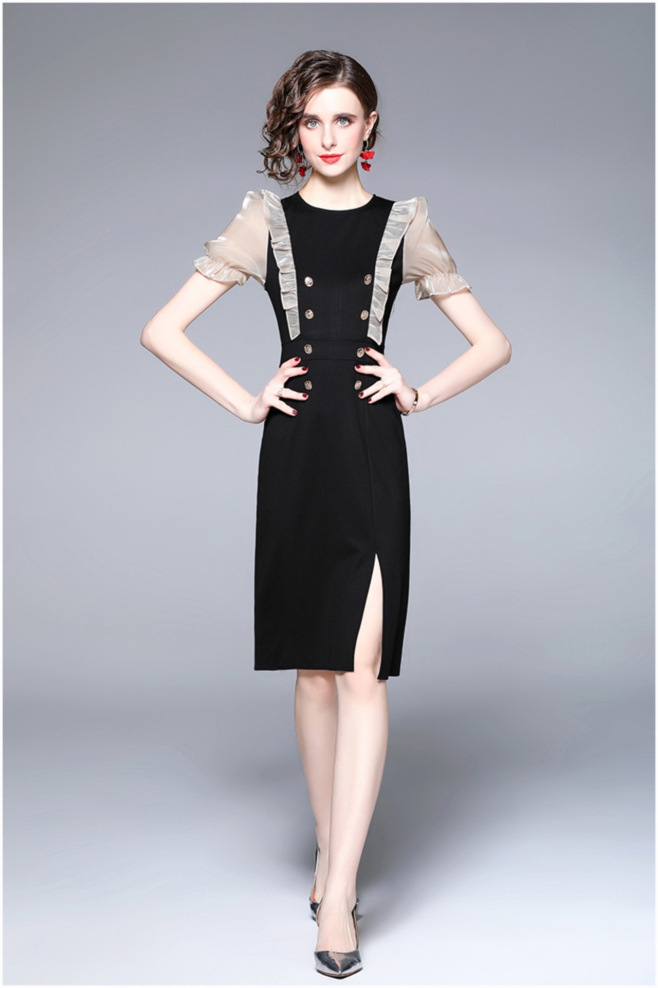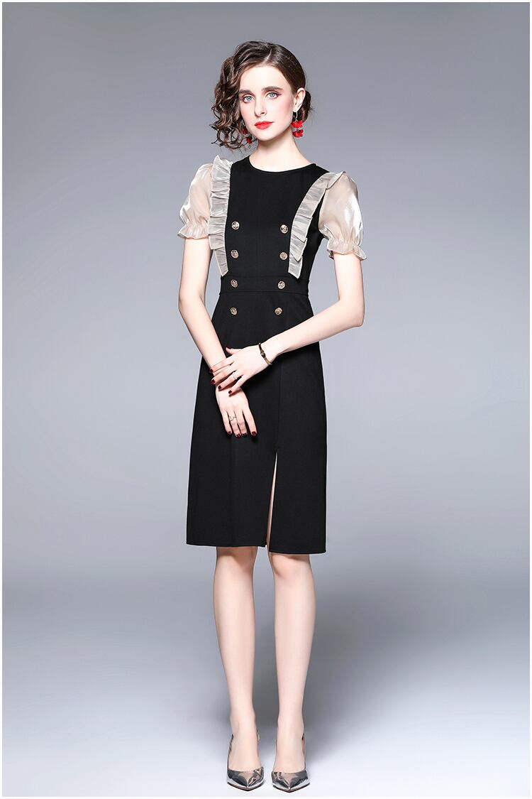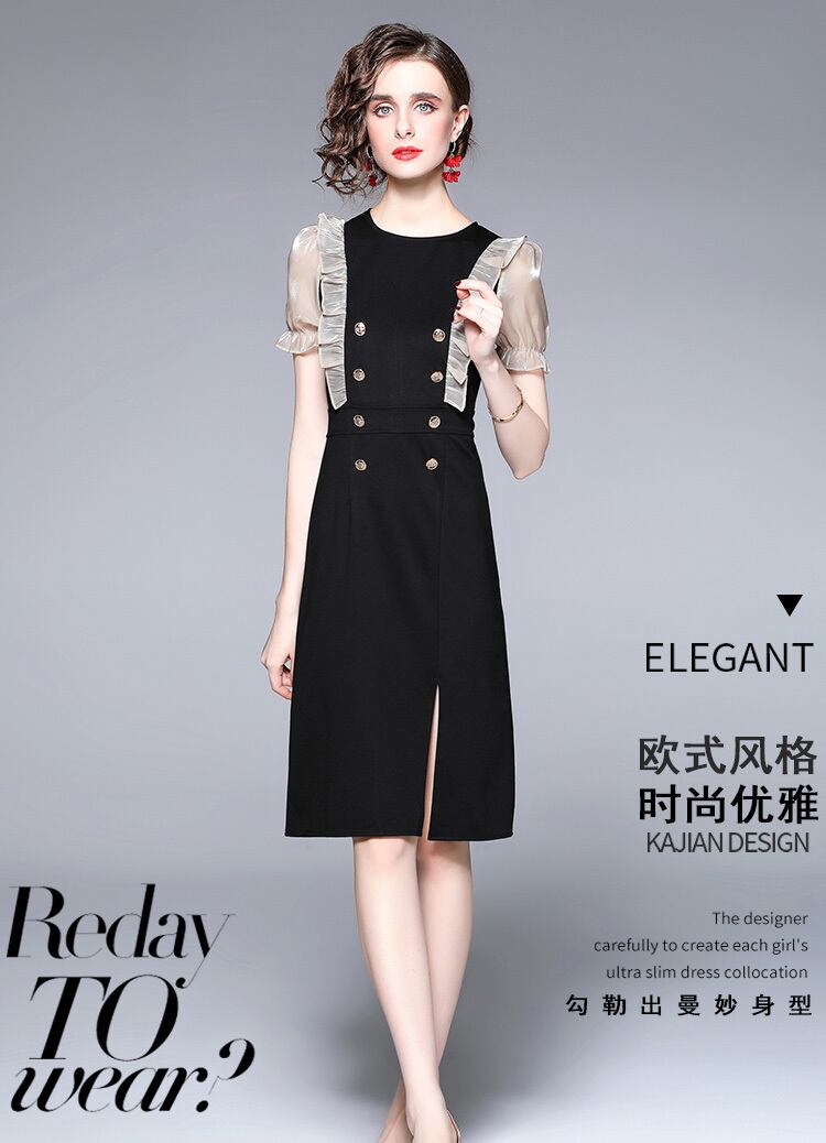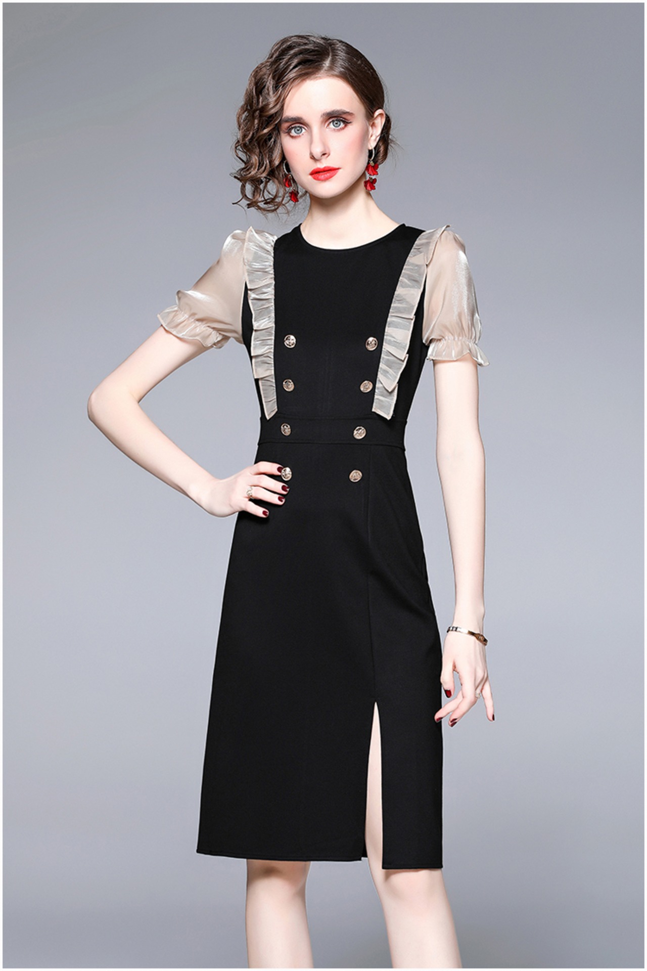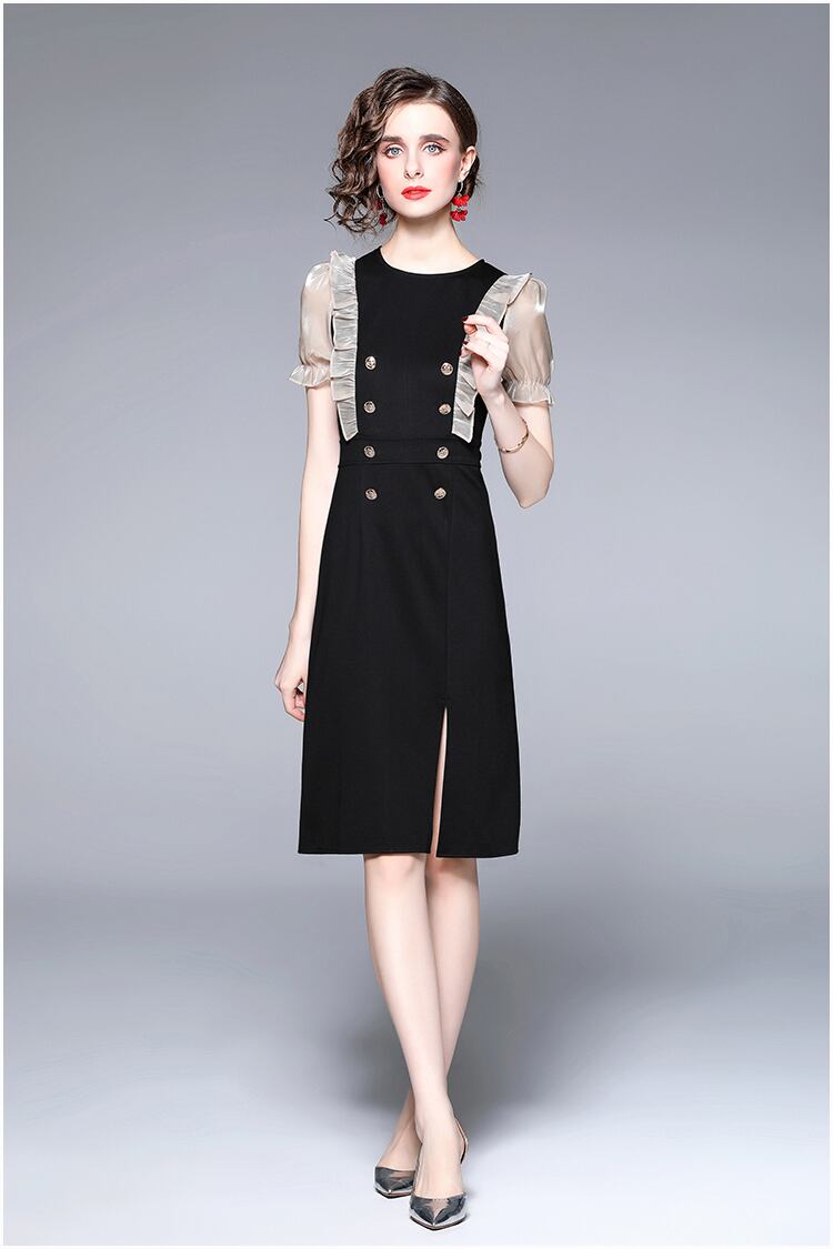 Discount store mall counter withdrawal women's clothing tail goods clearance lotus leaf edge stitching Hepburn style black dress women ブラック ステッチ missry48047990616 | guttiy