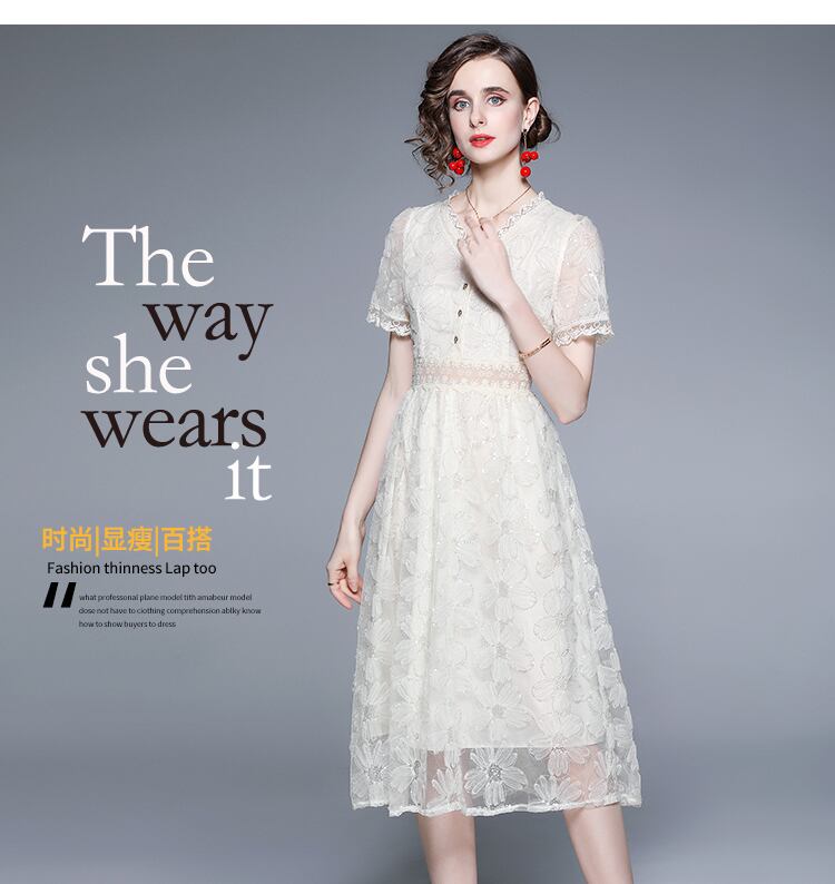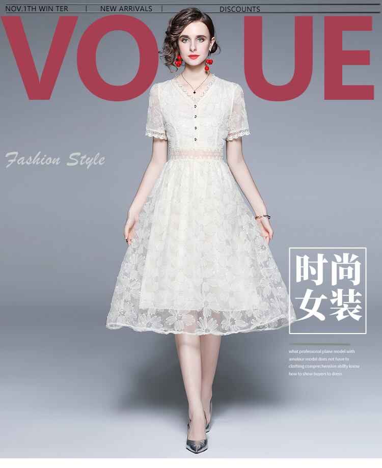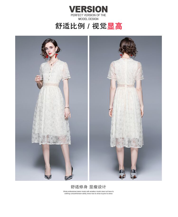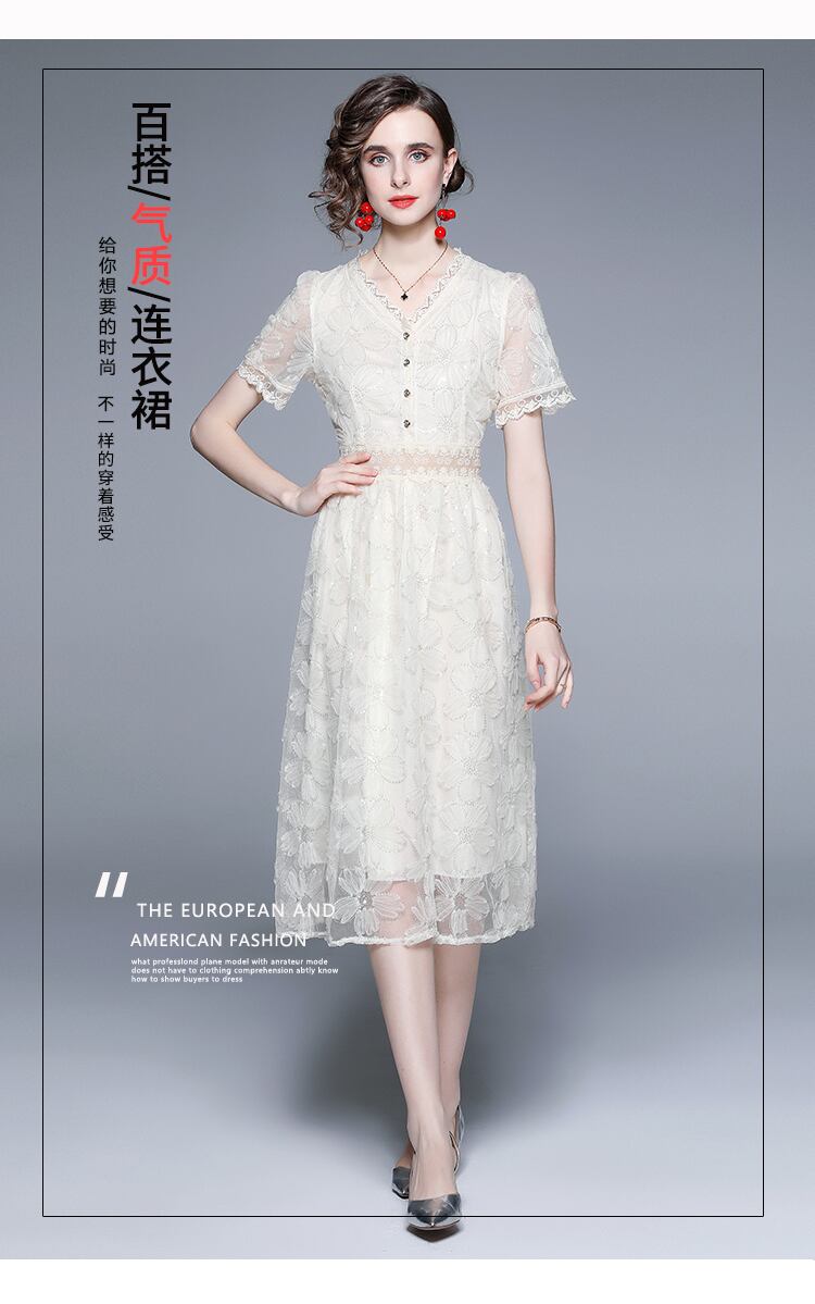 Discount store mall counters withdrawn women's clothing tail goods clearance high-end embroidery light luxury super fairy lace V-neck dress レース 刺繍 Vネック missry35776176179 | guttiy