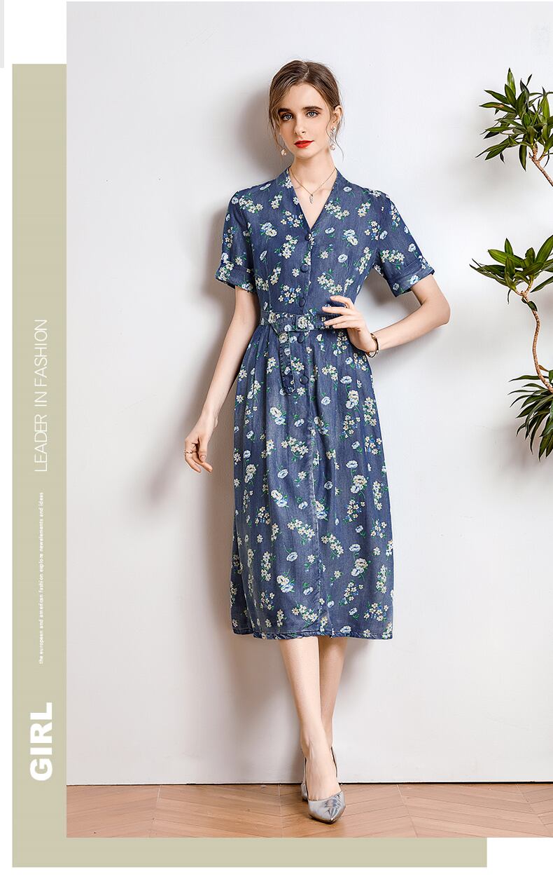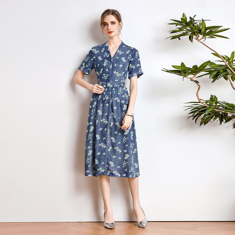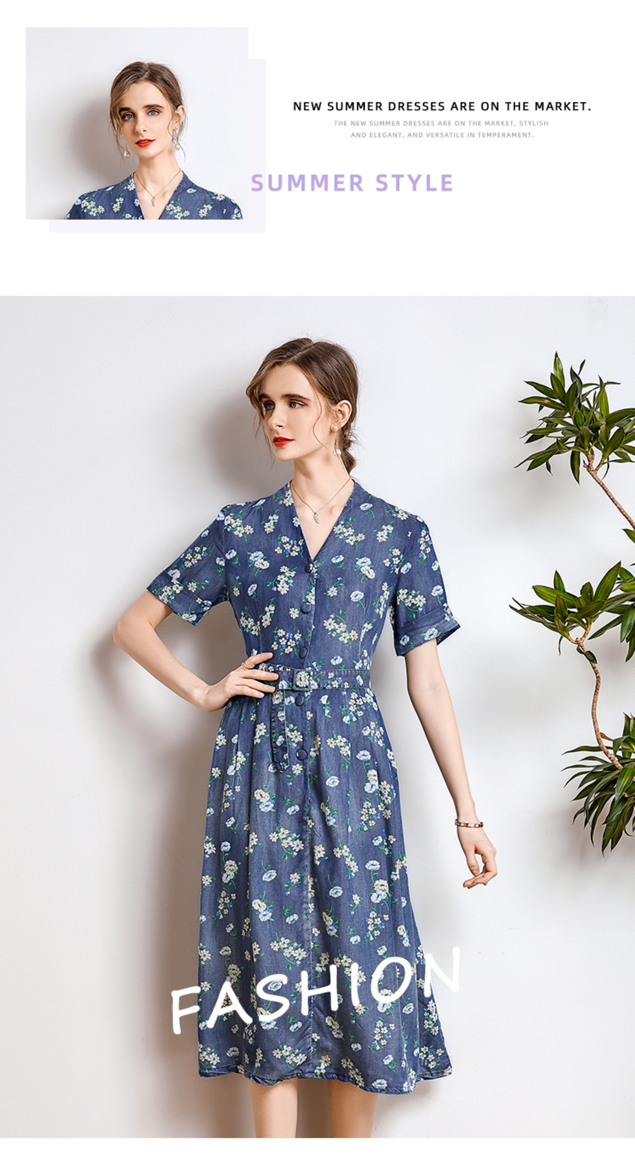 Discount store mall counters withdrawn women's clothing tail goods clearance V-neck belt waist slim temperament printed denim skirt プリント ハーネス ベルト スカート Vネック スリム missry64302089600 | guttiy