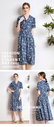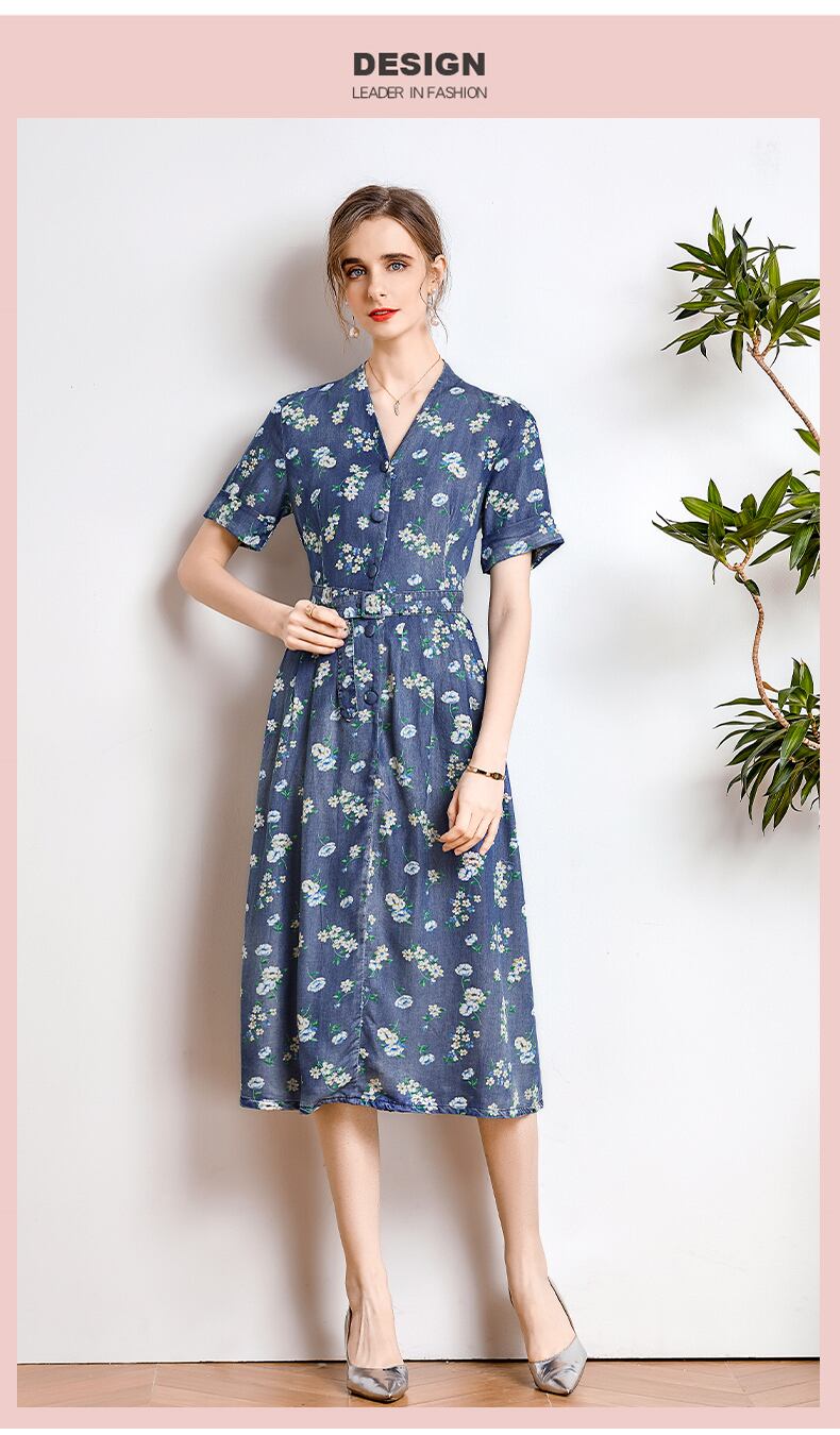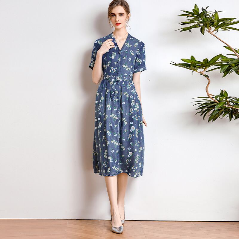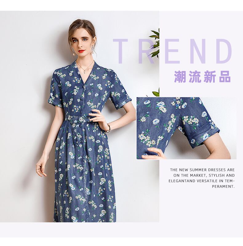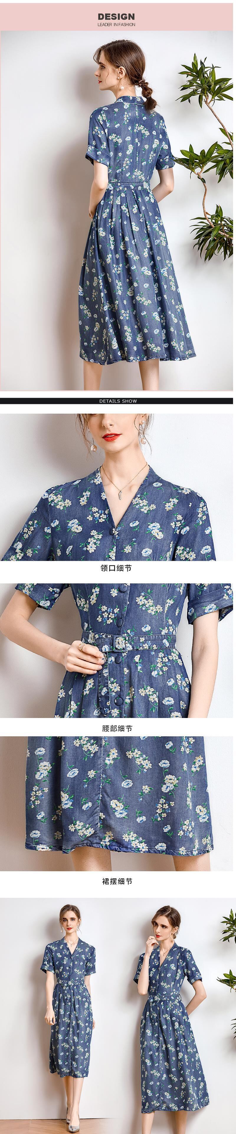 Discount store mall counters withdrawn women's clothing tail goods clearance V-neck belt waist slim temperament printed denim skirt プリント ハーネス ベルト スカート Vネック スリム missry64302089600 | guttiy